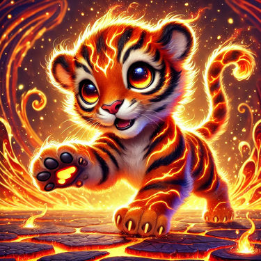 In einem Land, in dem Lava wie Lebensblut durch die Erde fließt, wurde Ashari geboren – der kleine Tiger des Feuers. Als ein Vulkan zum ersten Mal nach Jahrhunderten erwachte, schoss ein Flammenfunken in den Himmel, der nicht verglühte, sondern lebendig wurde: Ashari. Trotz seiner feurigen Herkunft ist er neugierig, verspielt und zutiefst loyal. Er kann mit seinen Pfoten kleine Feuerkreise erschaffen, die Schutz und Geborgenheit schenken. Wer Ashari begegnet, spürt Mut, Kraft – und ein unaufhaltsames inneres Leuchten.