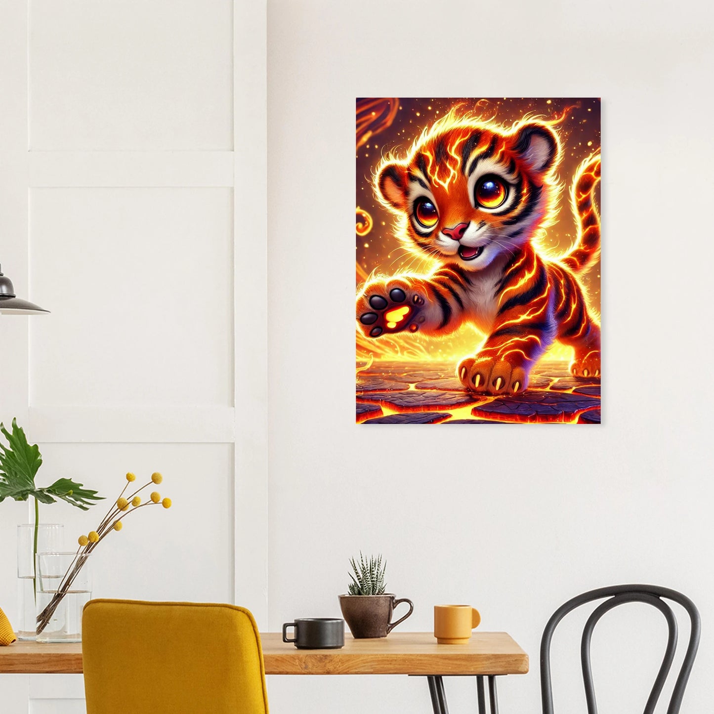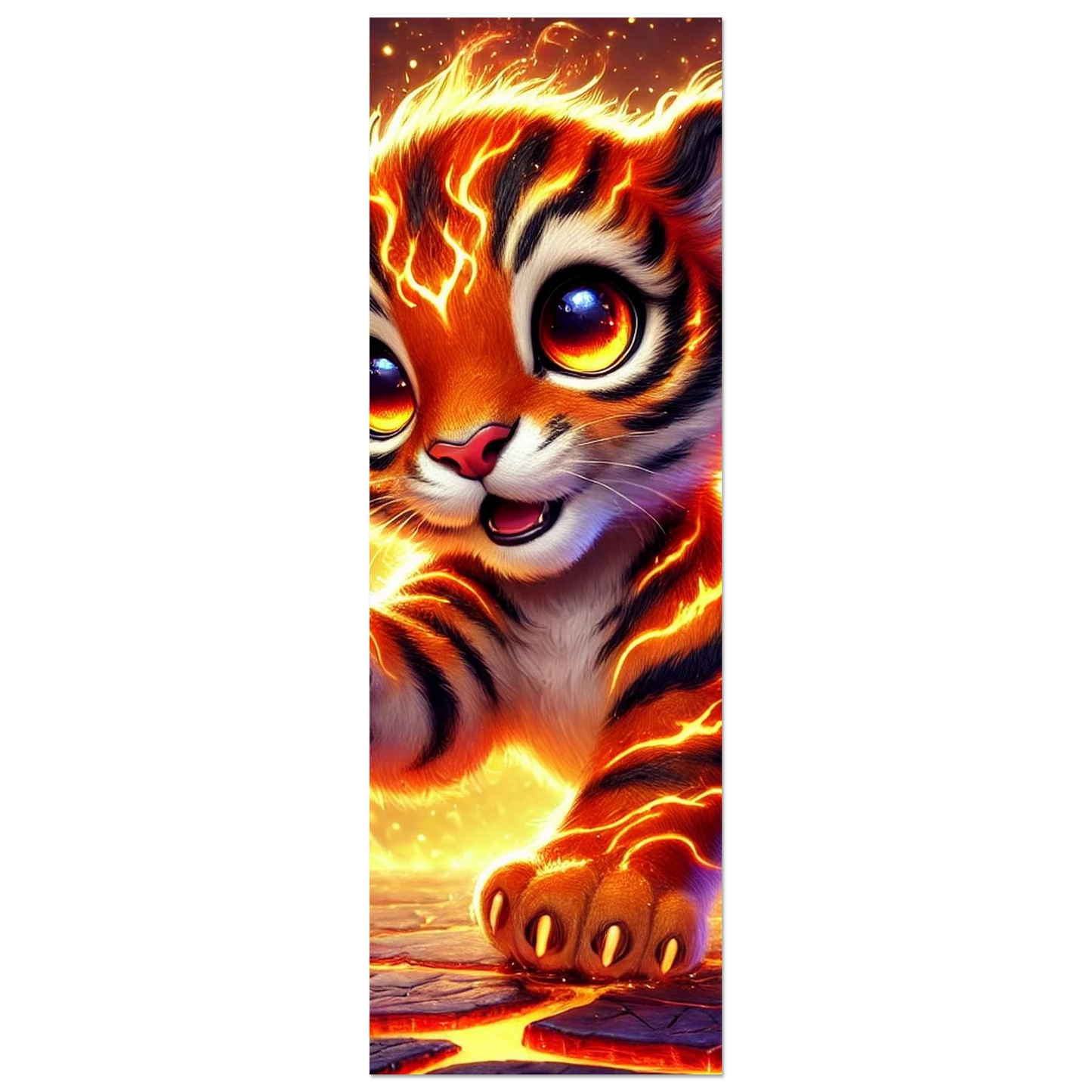 Lass deinen Raum mit Ashari, dem kleinen Tiger aus purer Glut, in neuem Licht erstrahlen. Geboren aus dem Herz eines Vulkans, bringt dieses feurige Wesen Mut, Lebensfreude und schützende Wärme in deine Umgebung. Der Aluminiumdruck verleiht diesem lebendigen Kunstwerk eine moderne, edle Präsenz – langlebig, robust und mit leuchtenden Farben, die den Glanz von Ashari perfekt einfangen.