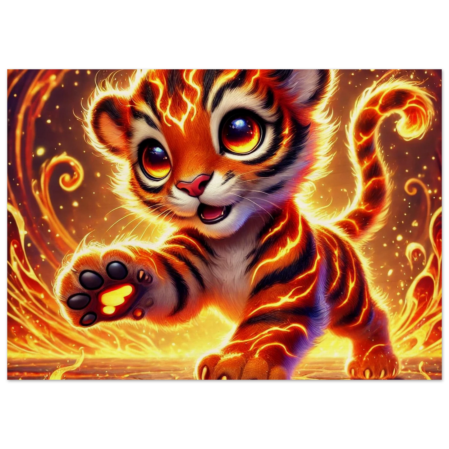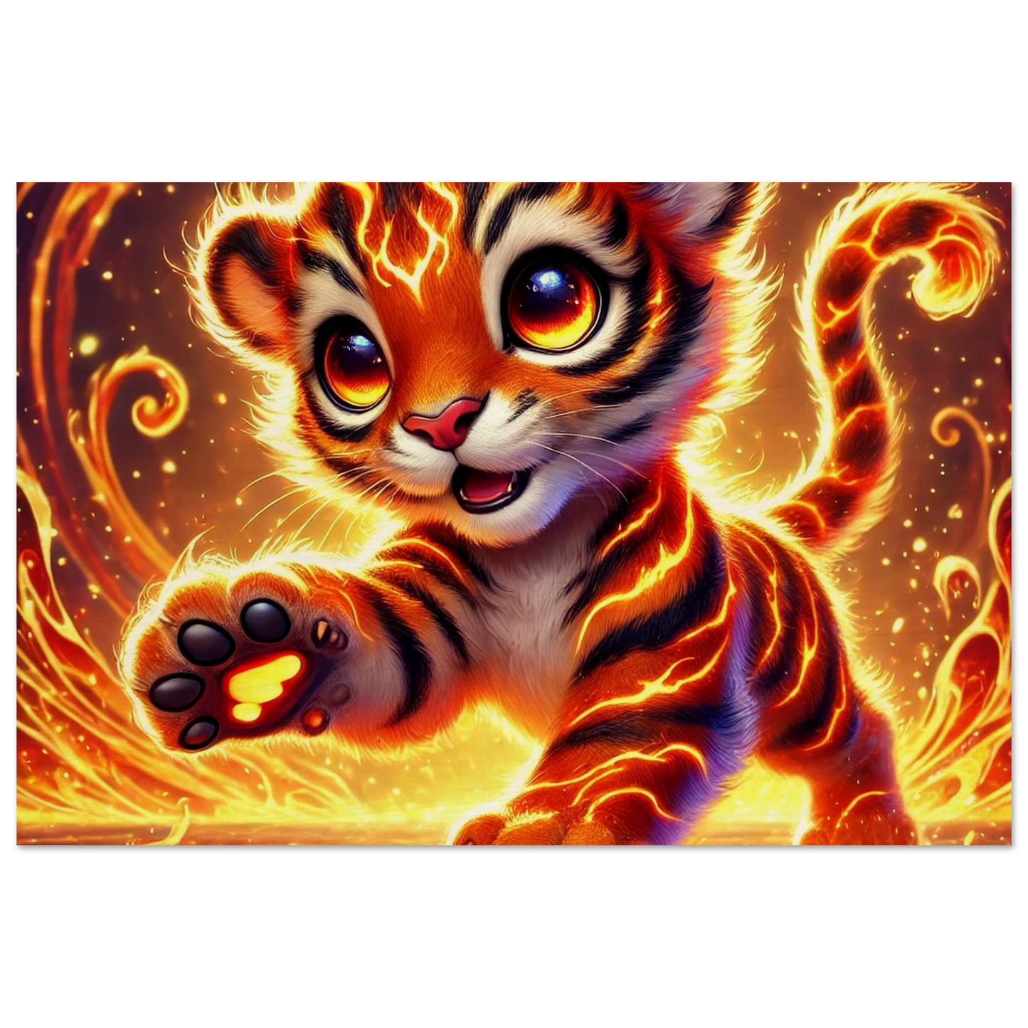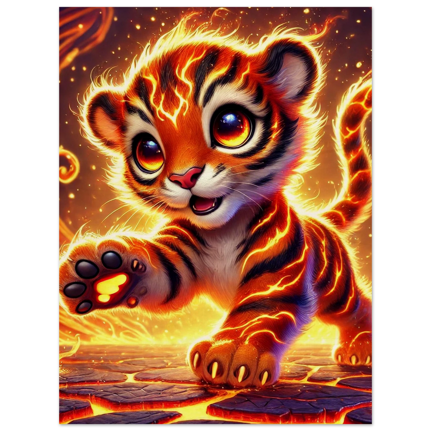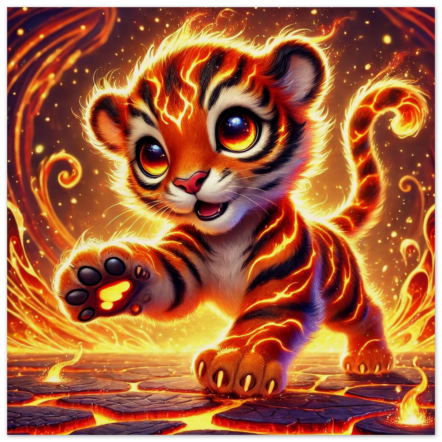 Bringe Wärme, Mut und Lebendigkeit in deine Räume mit Ashari, dem kleinen magischen Feuerwesen mit Tigerherz. Geboren aus der Glut eines erwachenden Vulkans, verleiht Ashari deinem Zuhause eine kraftvolle Ausstrahlung – eindrucksvoll verewigt auf hochwertigem FSC-zertifiziertem Holz.