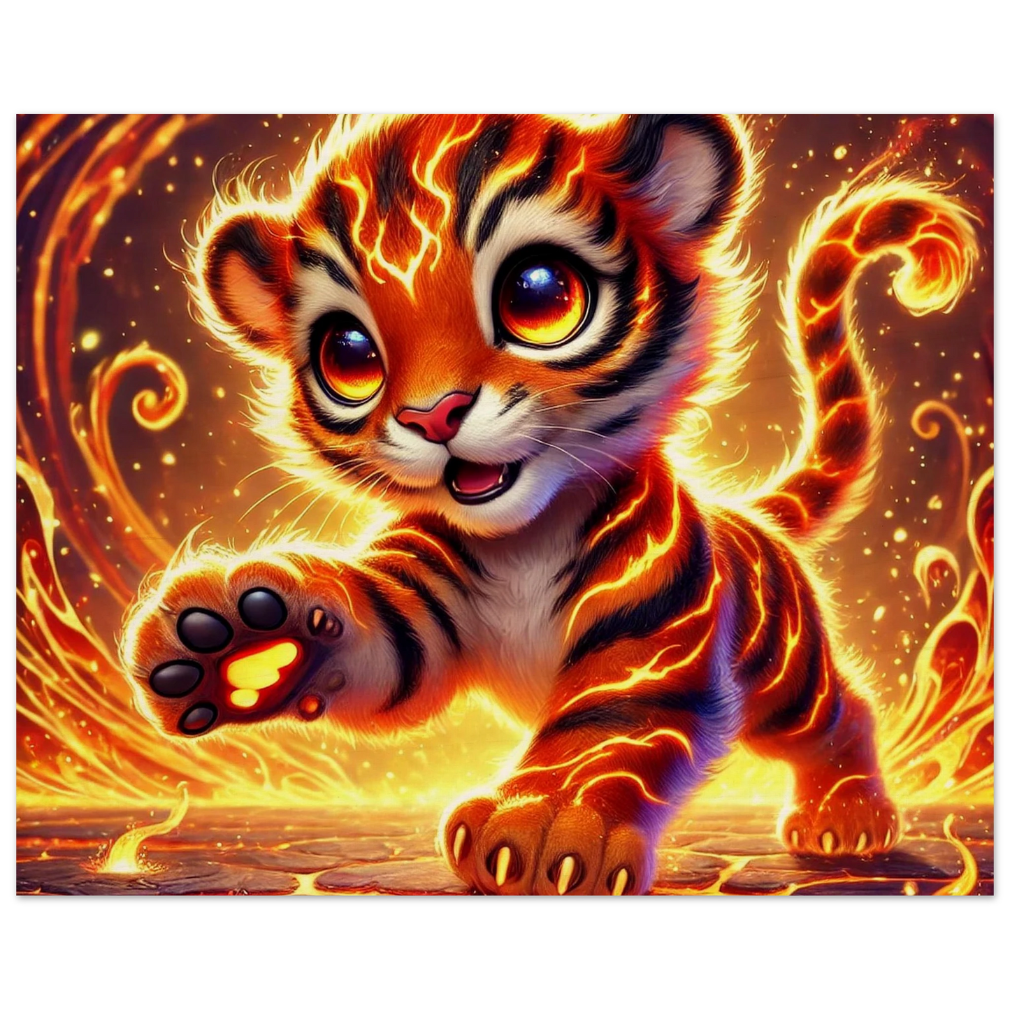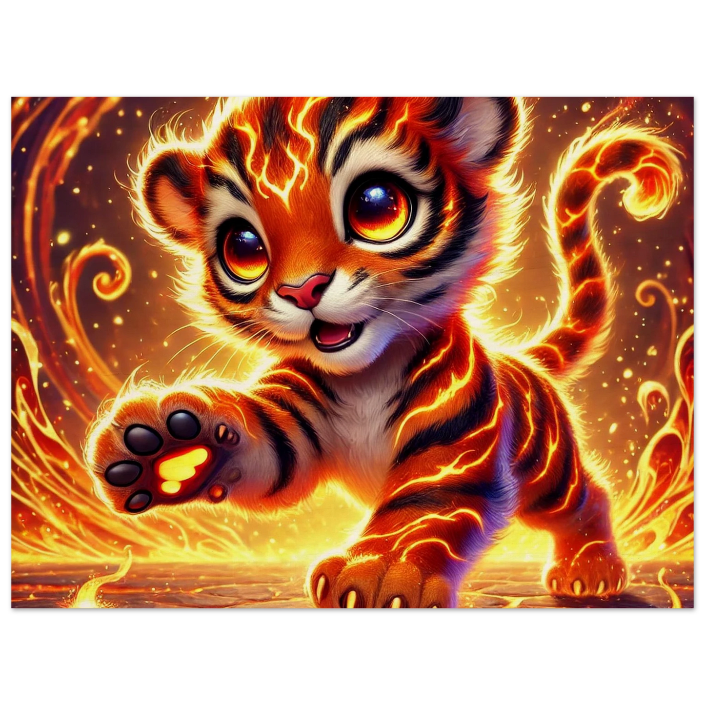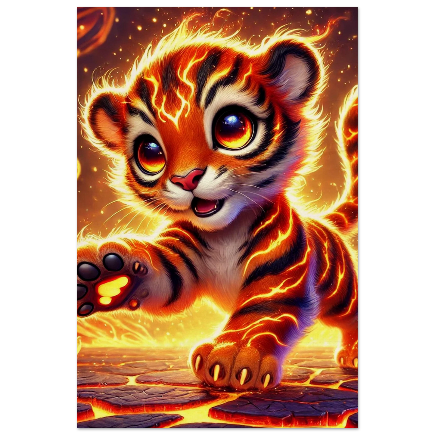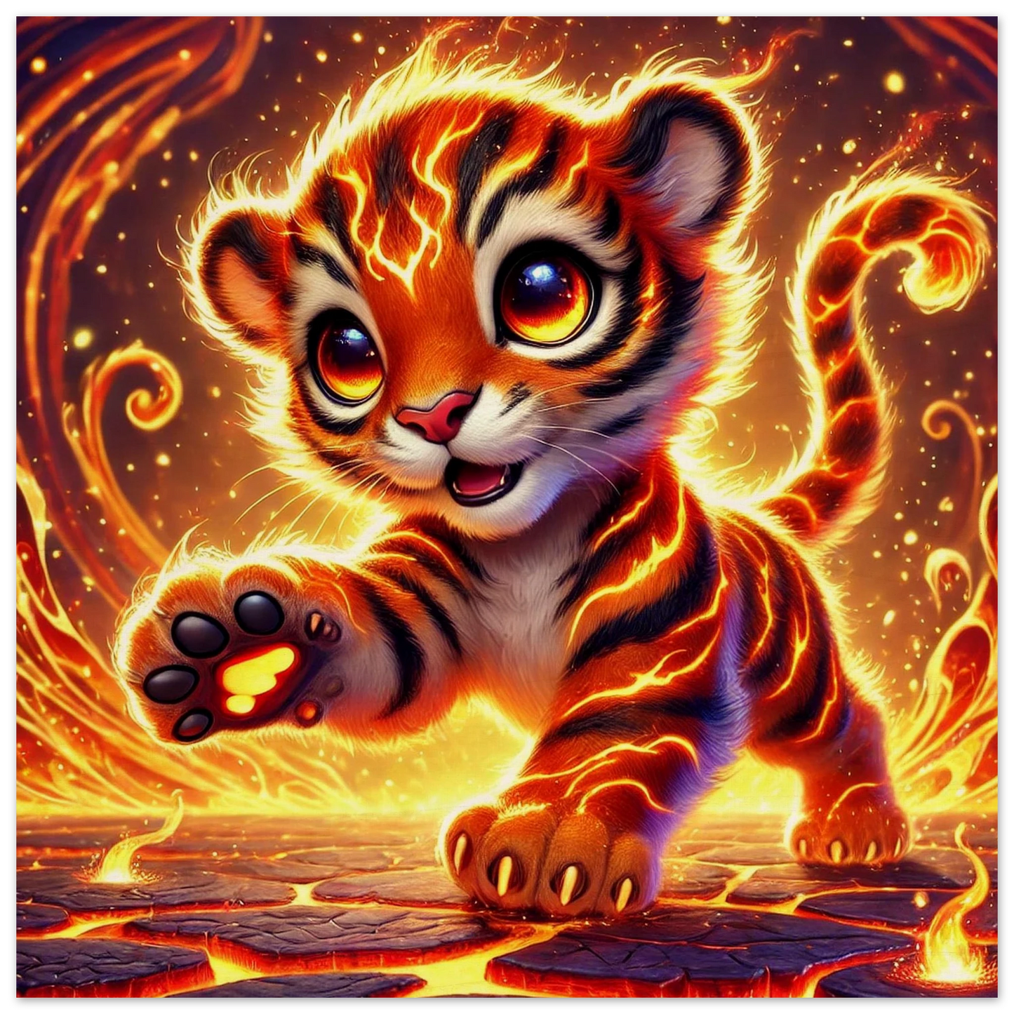 Bringe Wärme, Mut und Lebendigkeit in deine Räume mit Ashari, dem kleinen magischen Feuerwesen mit Tigerherz. Geboren aus der Glut eines erwachenden Vulkans, verleiht Ashari deinem Zuhause eine kraftvolle Ausstrahlung – eindrucksvoll verewigt auf hochwertigem FSC-zertifiziertem Holz.