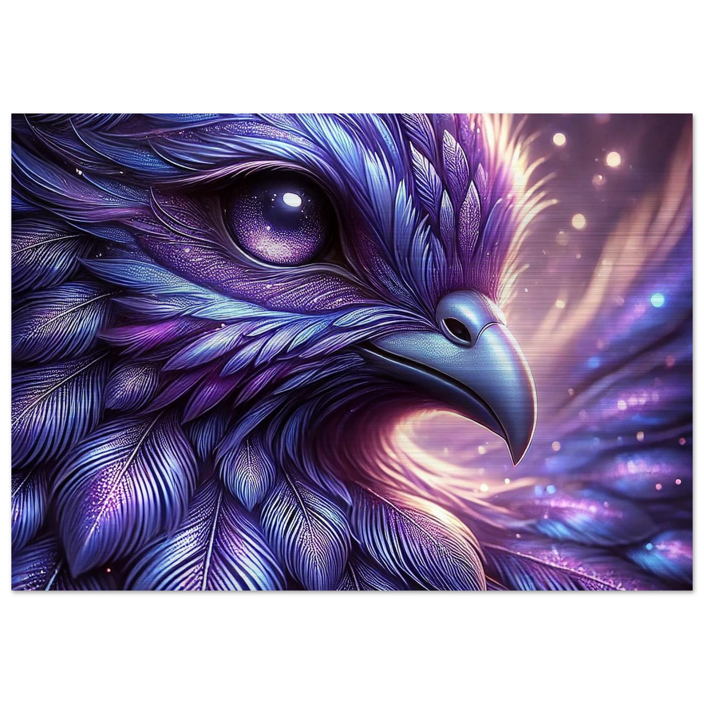 Dieser edle Druck auf gebürstetem Aluminium verleiht Astraels Erscheinung zusätzliche Tiefe und metallischen Glanz. Ideal für moderne, elegante Wohnräume mit einem Hauch Magie.