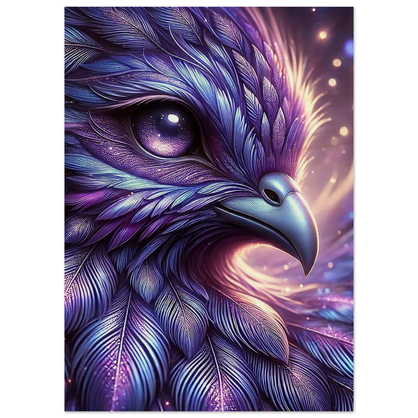 Unser Holzdruck verleiht dem Motiv eine besonders warme, natürliche Ausstrahlung. Die Maserung des FSC-zertifizierten Birkenholzes scheint sanft durch das Kunstwerk hindurch und verstärkt die mystische Atmosphäre von Astrael.