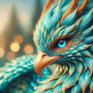 „Aurekan“ ist ein majestätischer, türkis-goldener Vogel mit durchdringendem Blick und funkelndem Gefieder, das im Licht zu brennen scheint. Diese digitale Illustration vereint Stärke und Eleganz in einem einzigartigen Fantasiewesen, das Schutz und Inspiration symbolisiert. Perfekt als Wandschmuck oder digitales Kunstwerk für Liebhaber mystischer Kreaturen.