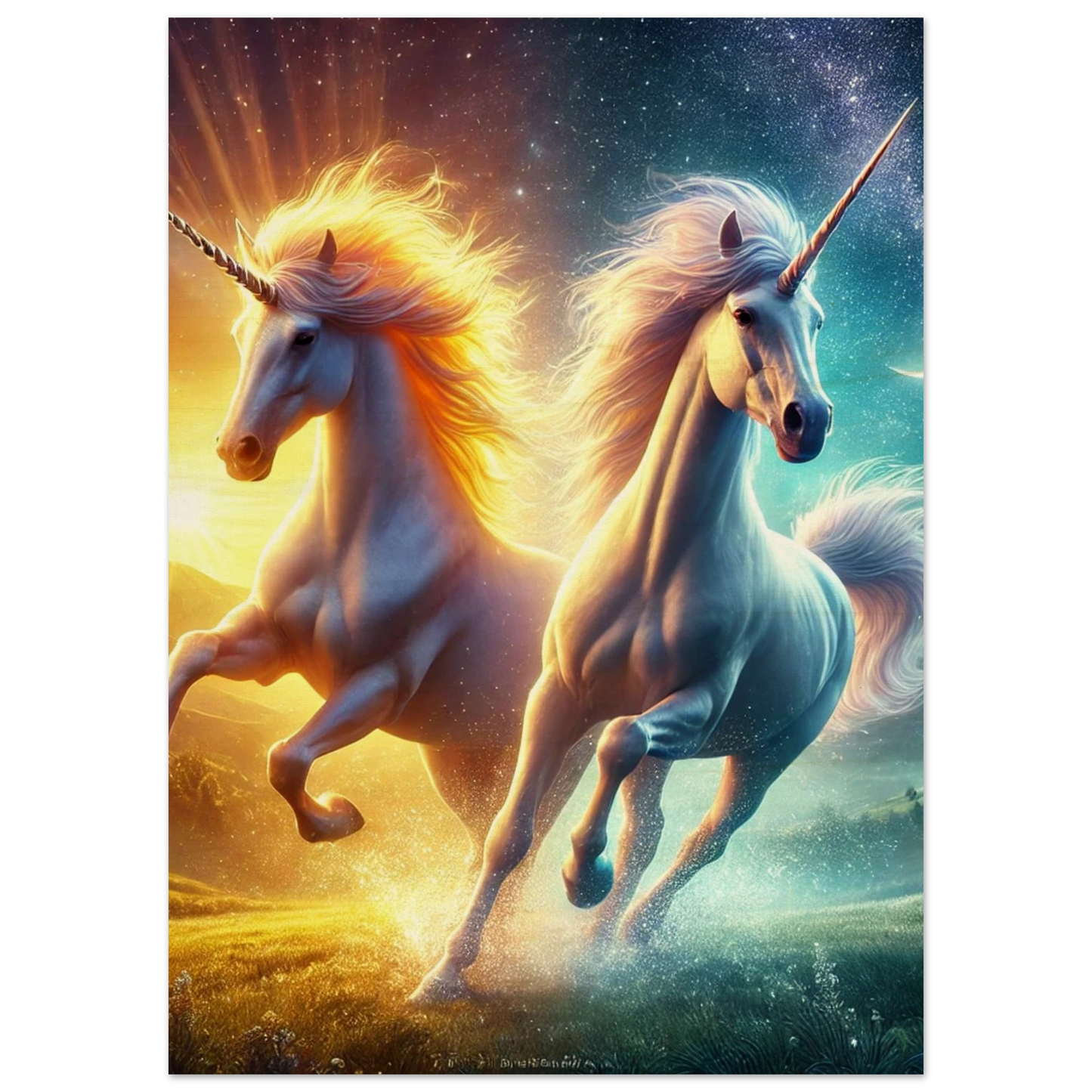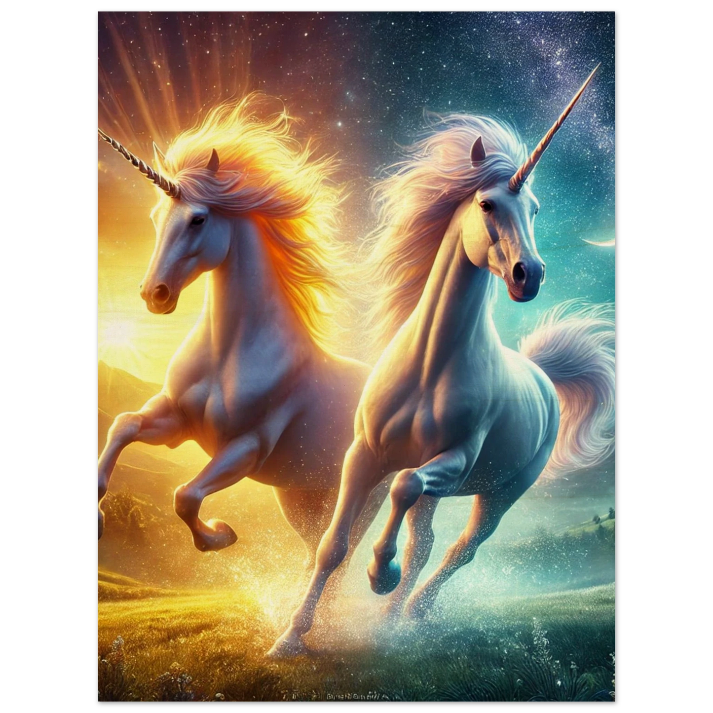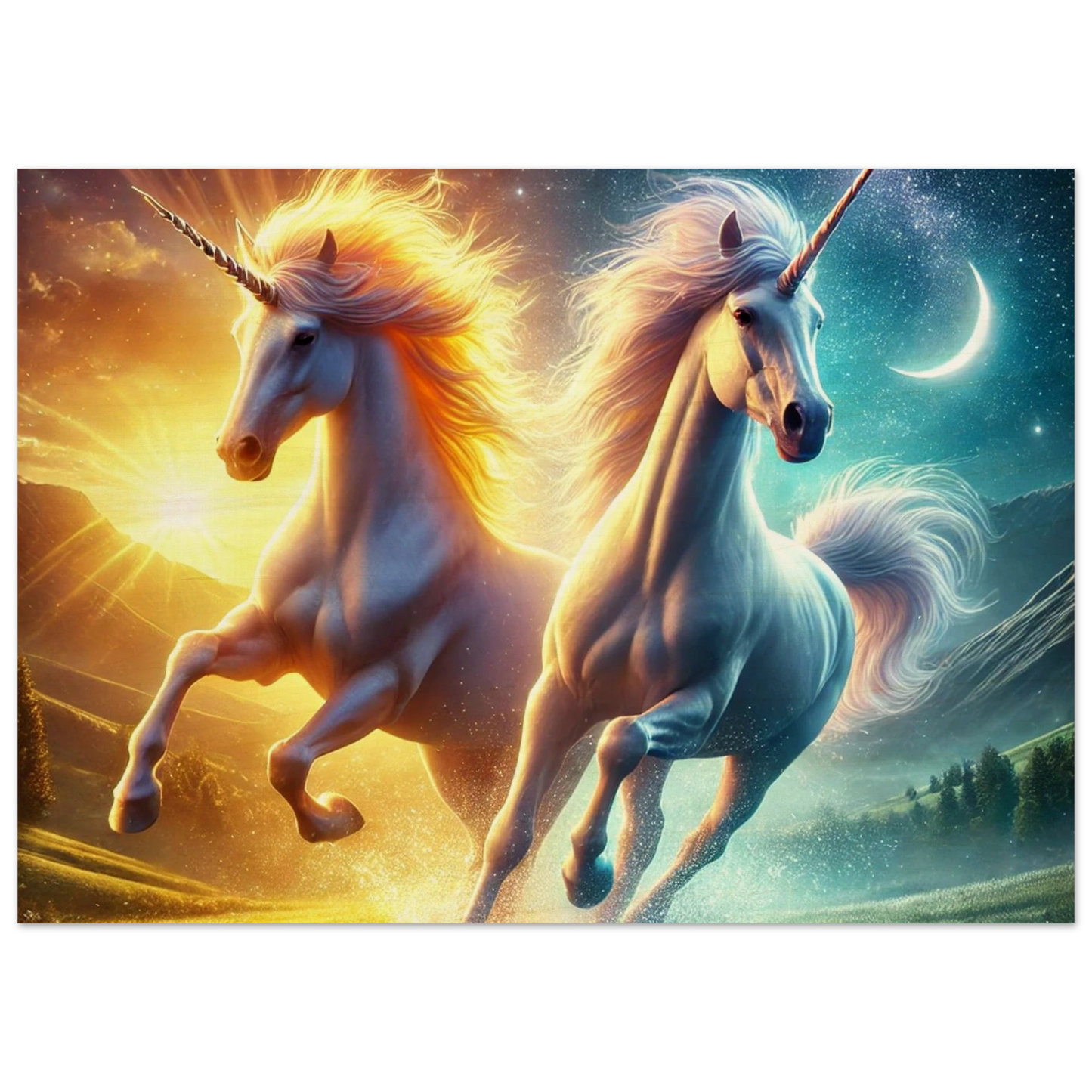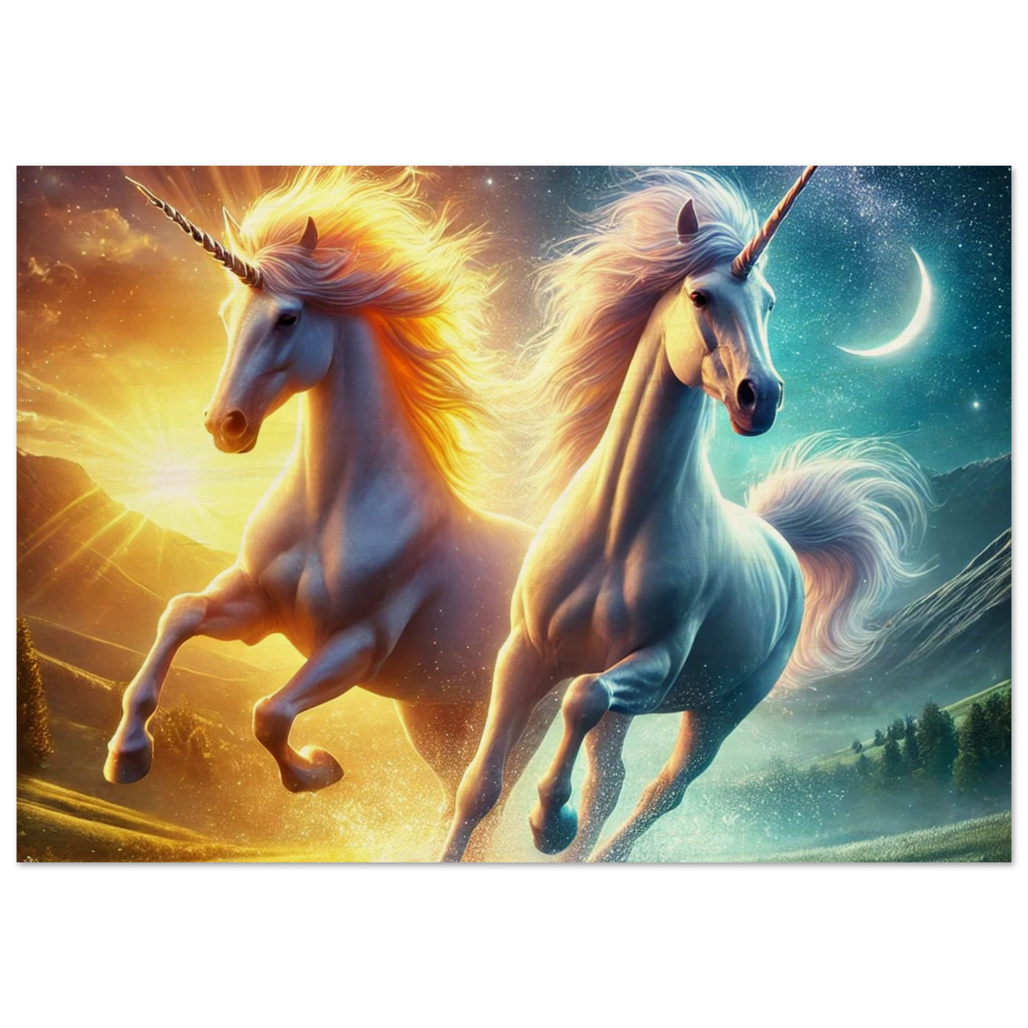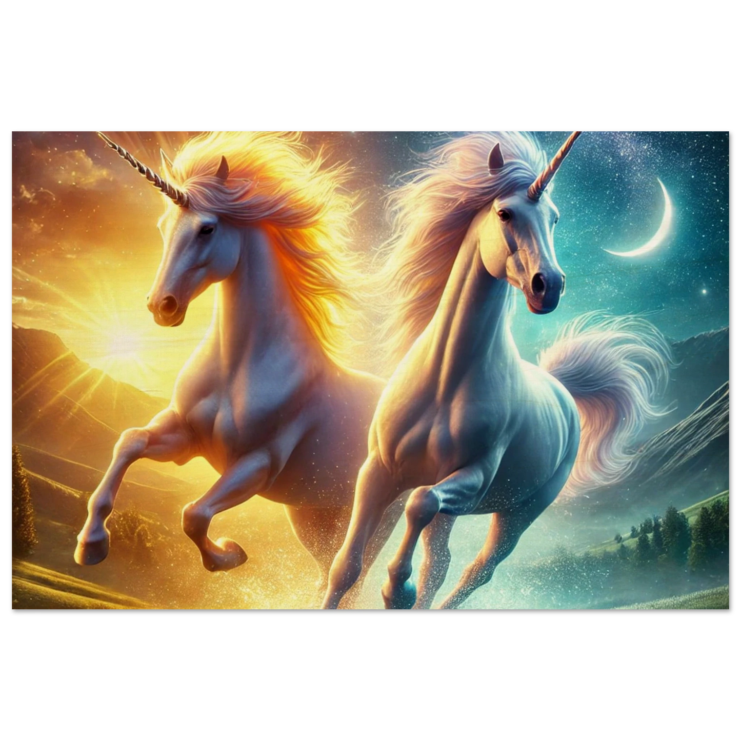 Entdecke die Magie der Dämmerung – mit „Aurelion & Selene“ auf hochwertigem Holzdruck. Zwei majestätische Einhörner, vereint zwischen Sonnenaufgang und Sternennacht, verschmelzen mit der natürlichen Textur von Birkenholz zu einem einzigartigen Kunstwerk. Ideal für alle, die Natur, Balance und Fantasie in ihrem Zuhause spüren möchten.