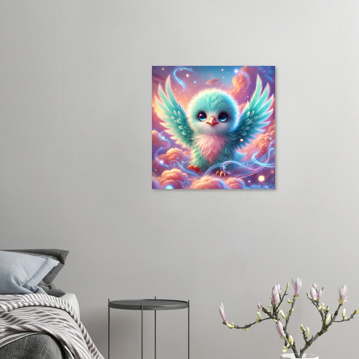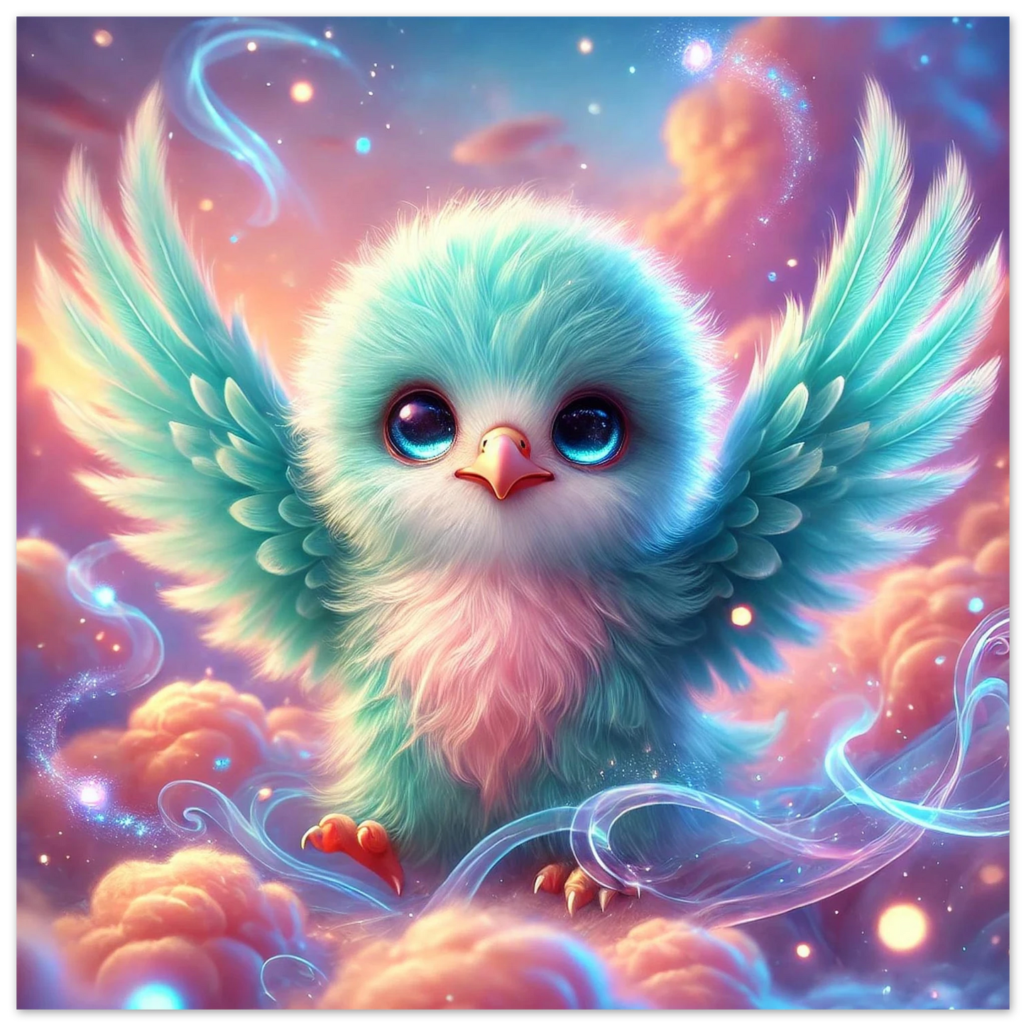 Wenn der neue Tag erwacht und Licht den Horizont berührt, erhebt sich Celira – ein himmlisches Wesen mit türkisblauem Gefieder und leuchtenden Augen. Umgeben von rosa Wolken und Lichtwirbeln bringt sie Leichtigkeit, Freude und Hoffnung in jedes Zuhause.