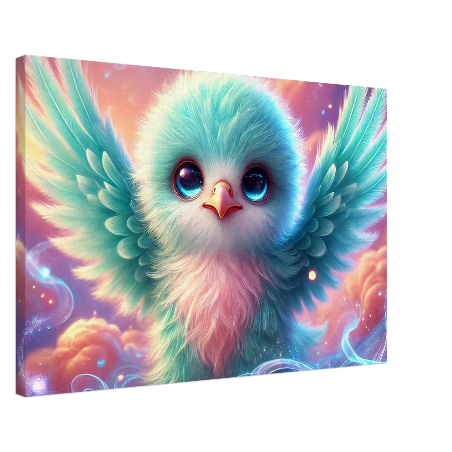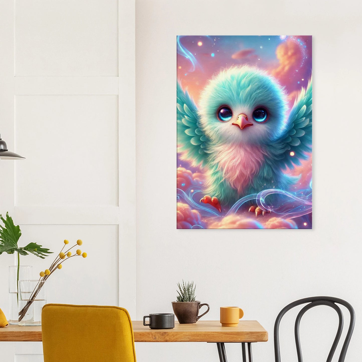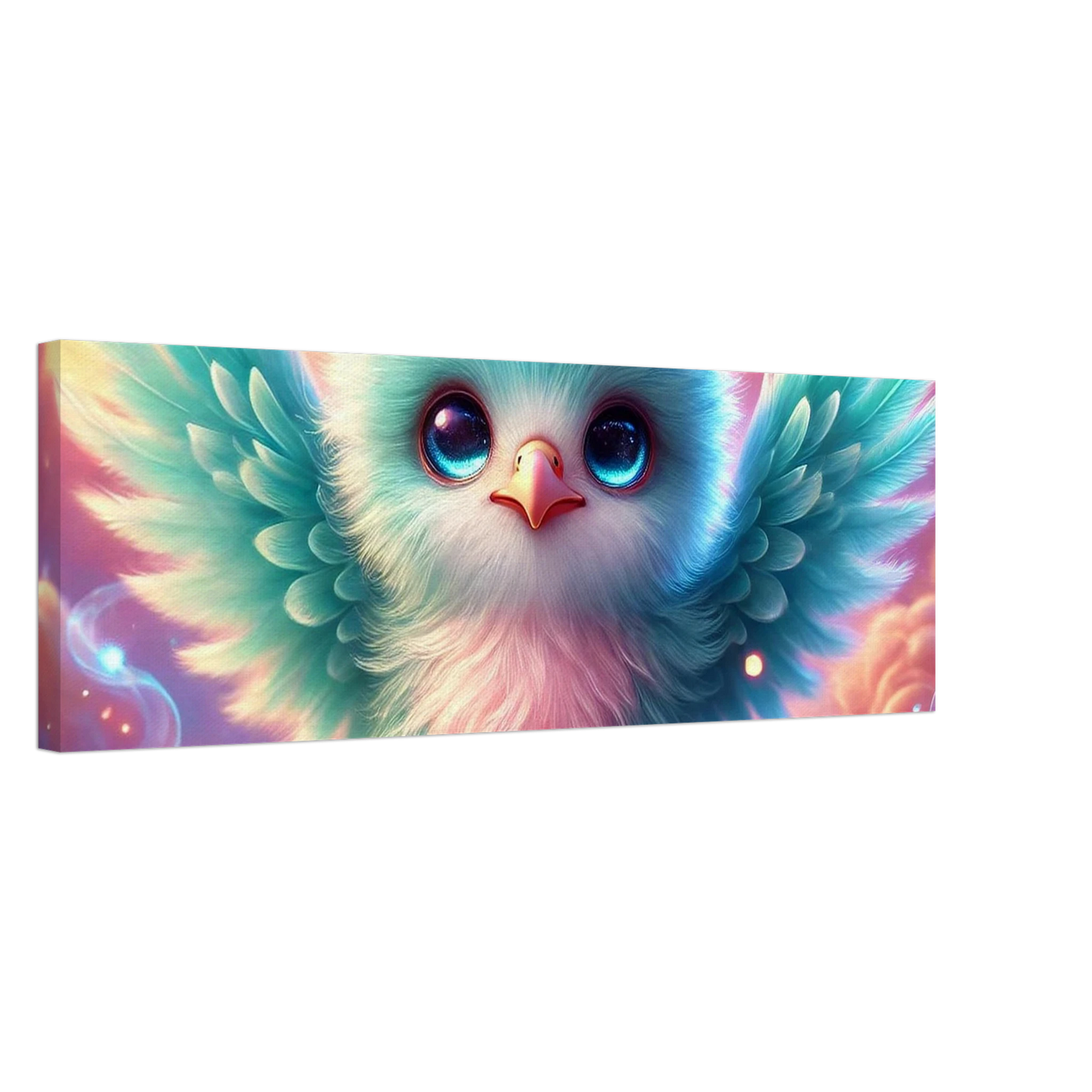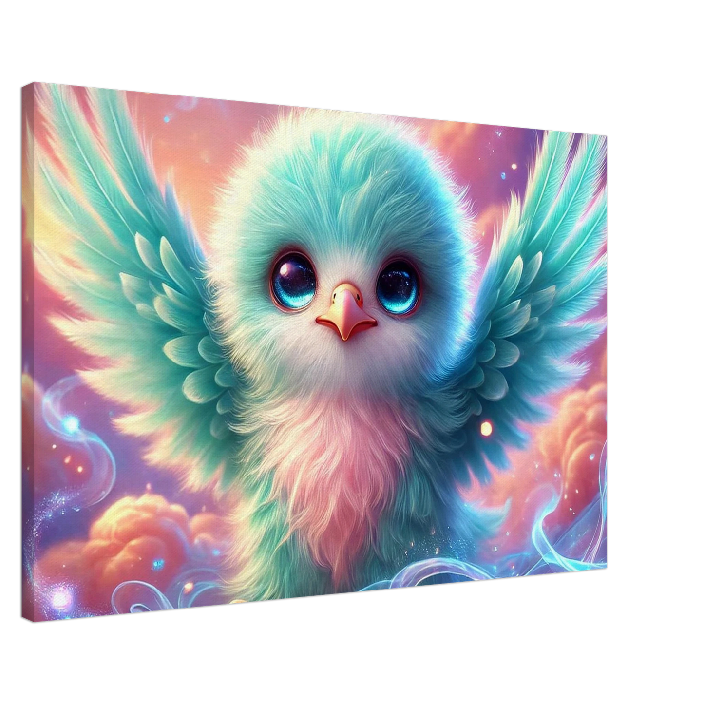 Wenn die Dunkelheit sich hebt und das erste Licht den Himmel färbt, erwacht Celira, die himmlische Botin des neuen Tages. Mit ihrem türkisblauen Gefieder, das zwischen rosa Wolken tanzt, bringt sie Leichtigkeit und Hoffnung in dein Zuhause – ein sanftes Lichtwesen zwischen Traum und Erwachen.