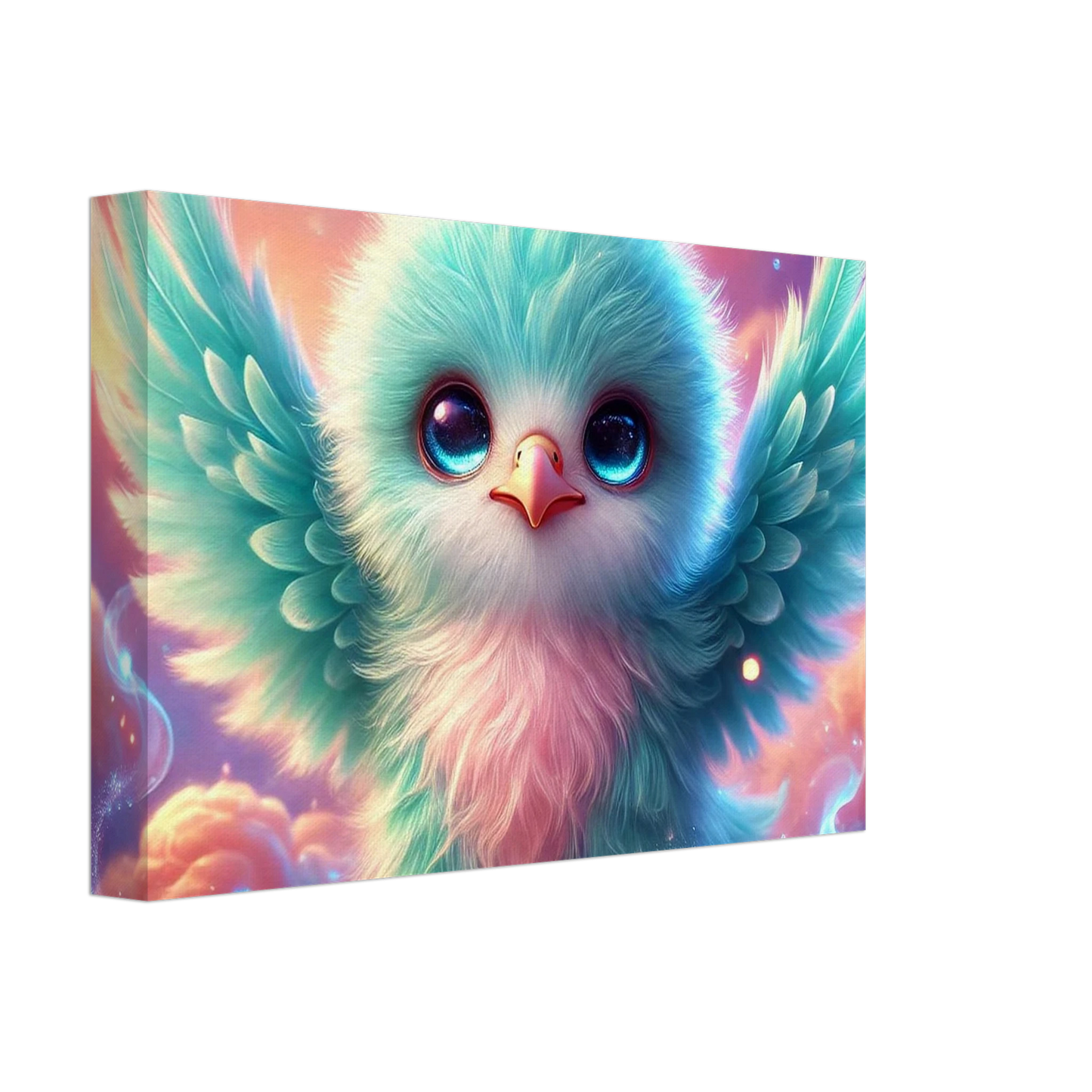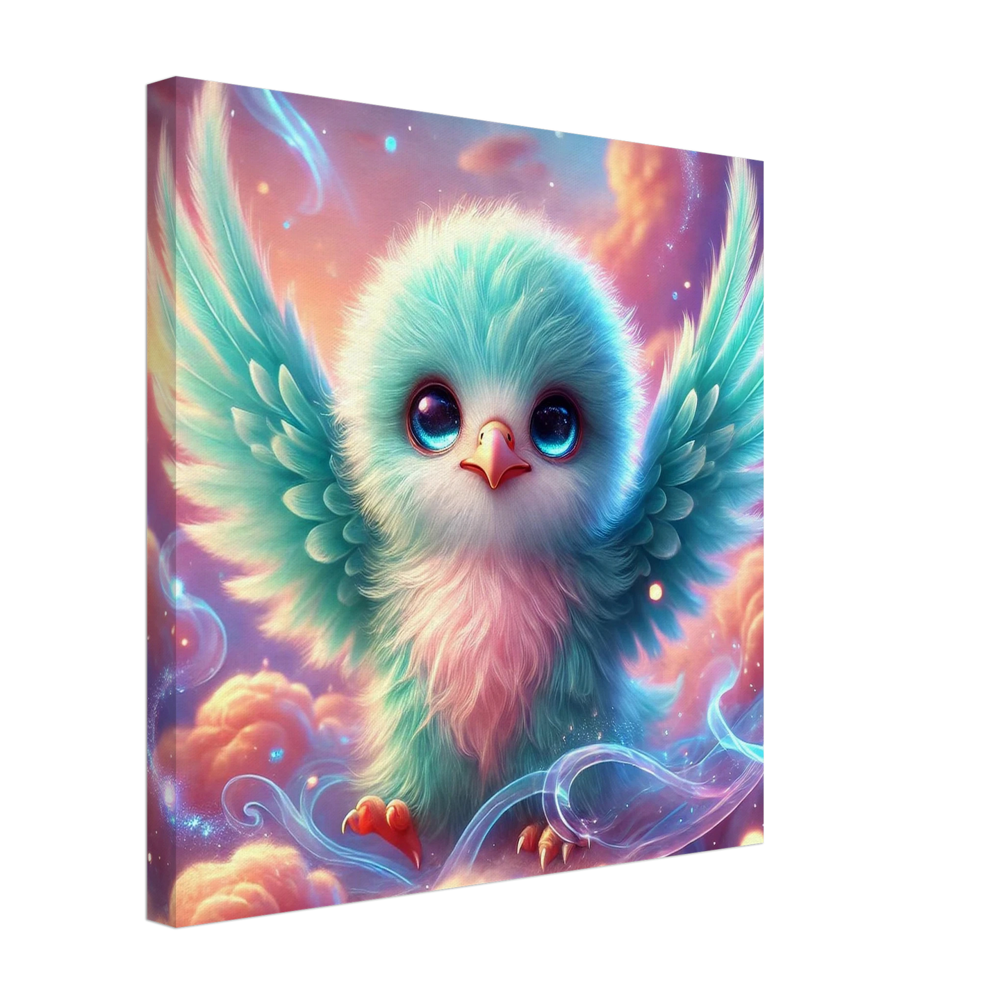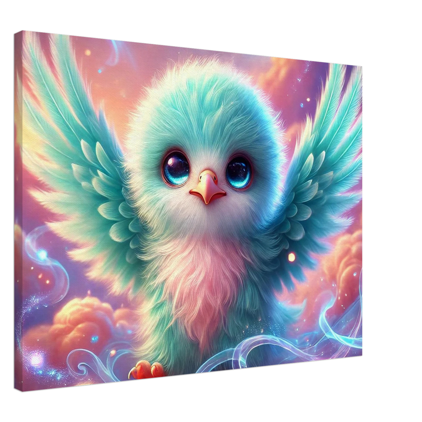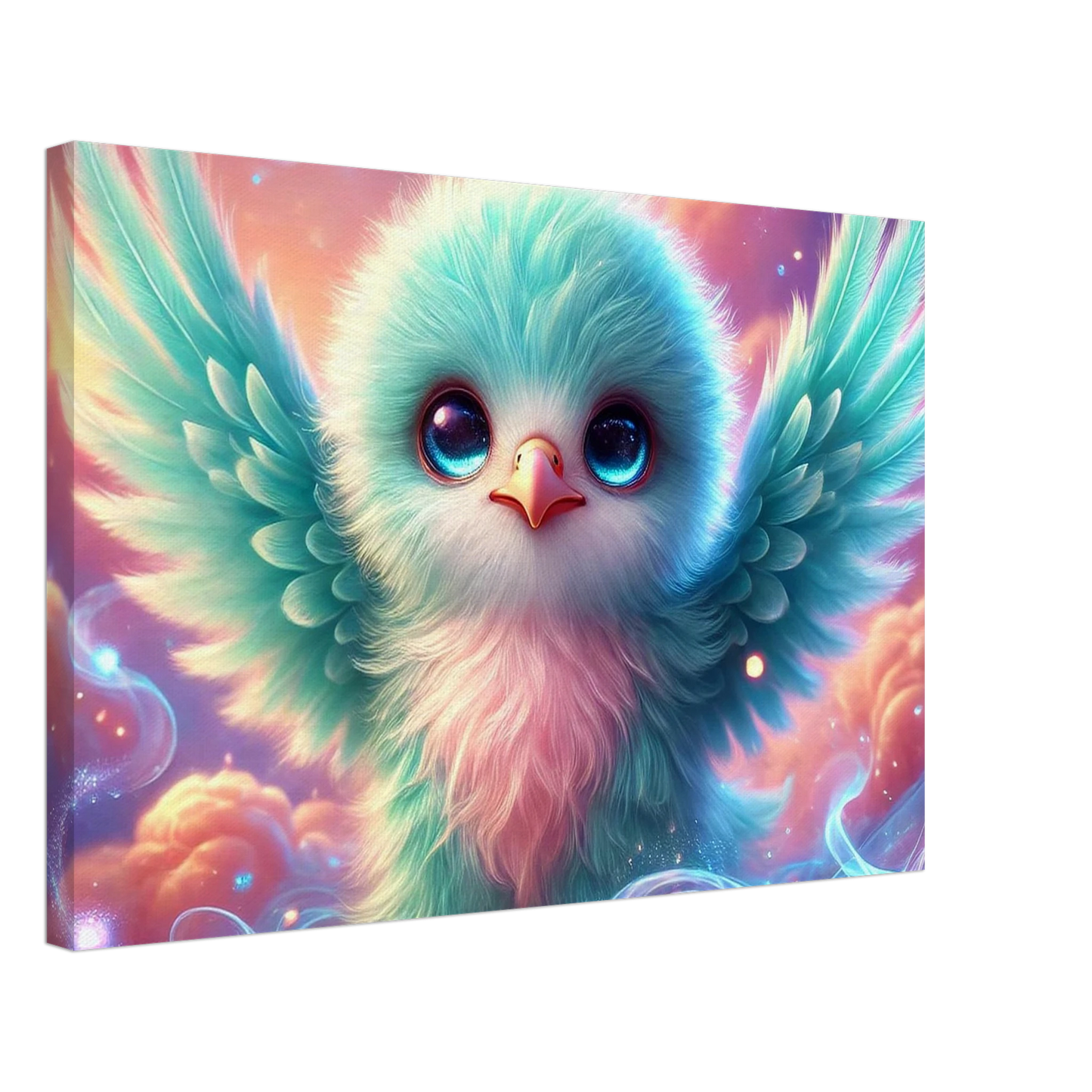 Wenn die Dunkelheit sich hebt und das erste Licht den Himmel färbt, erwacht Celira, die himmlische Botin des neuen Tages. Mit ihrem türkisblauen Gefieder, das zwischen rosa Wolken tanzt, bringt sie Leichtigkeit und Hoffnung in dein Zuhause – ein sanftes Lichtwesen zwischen Traum und Erwachen.