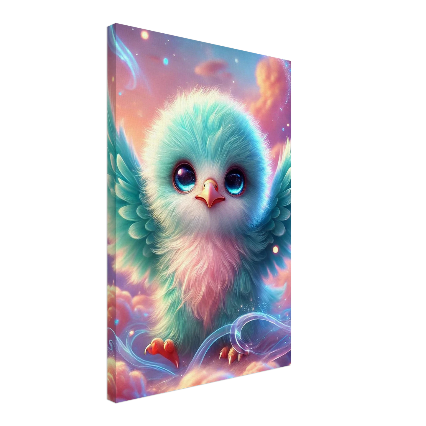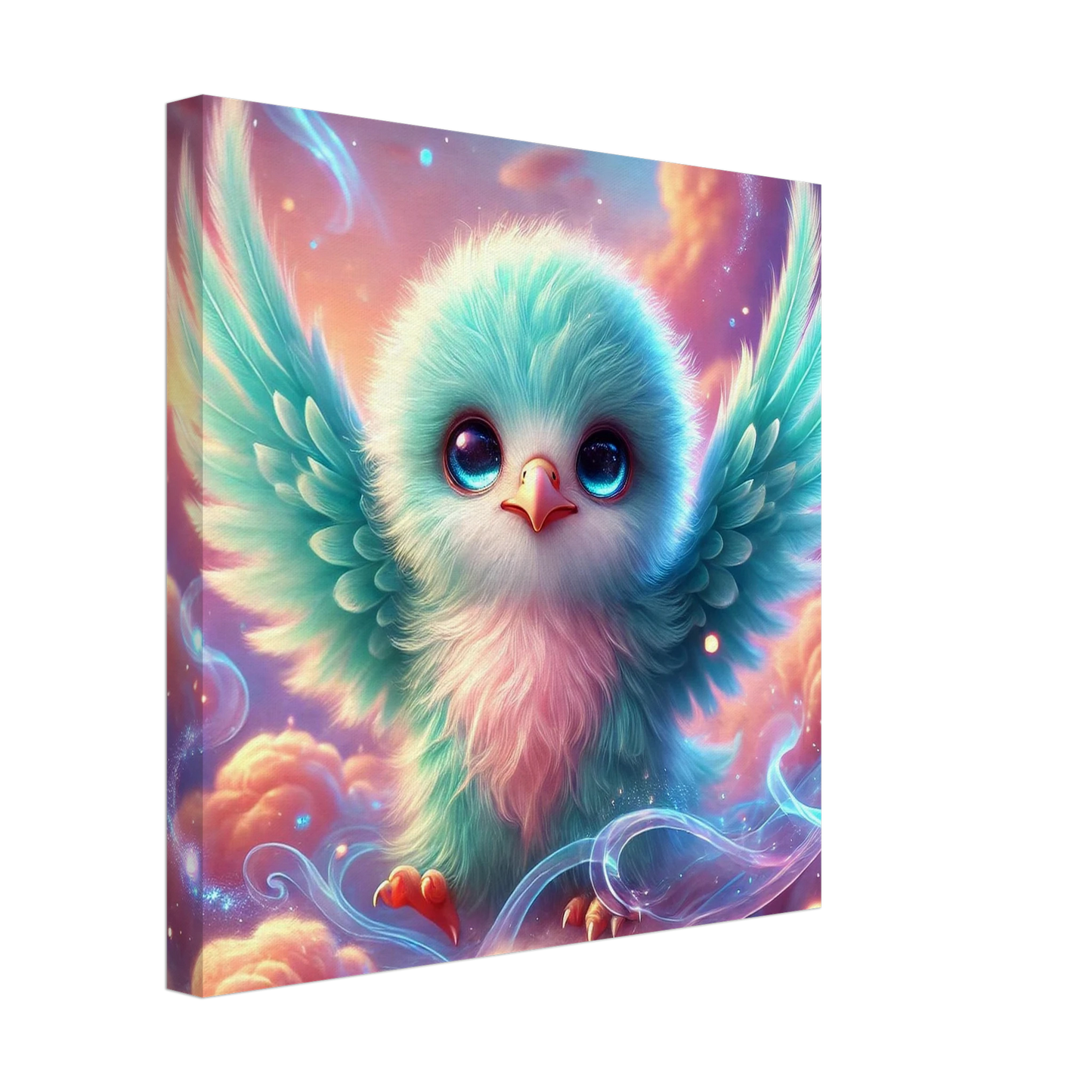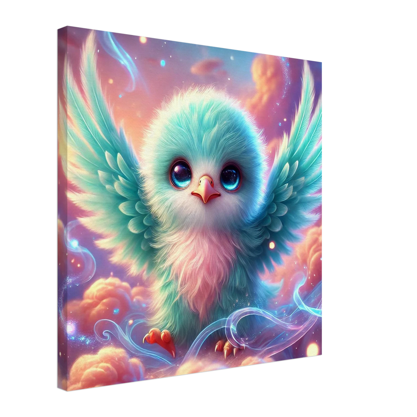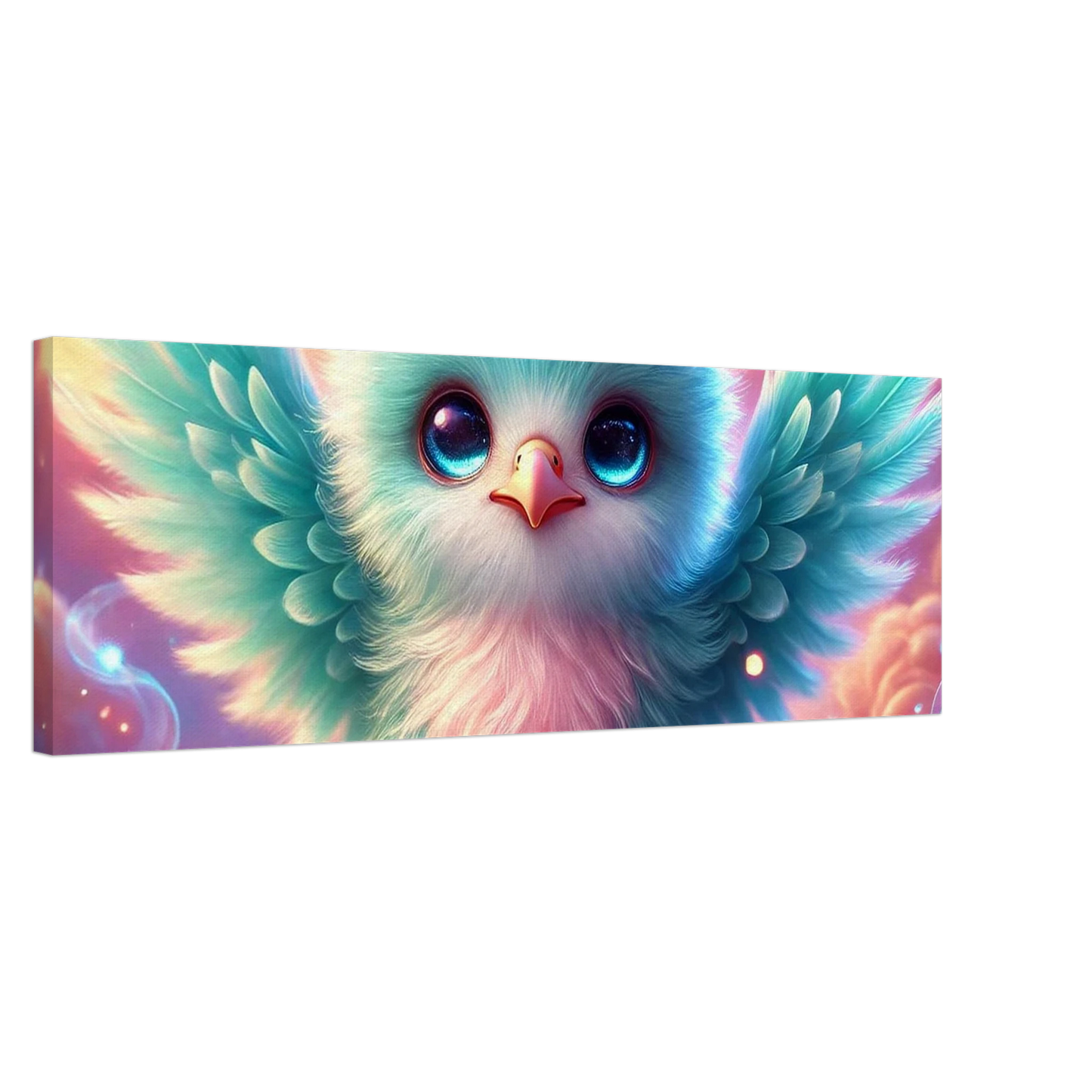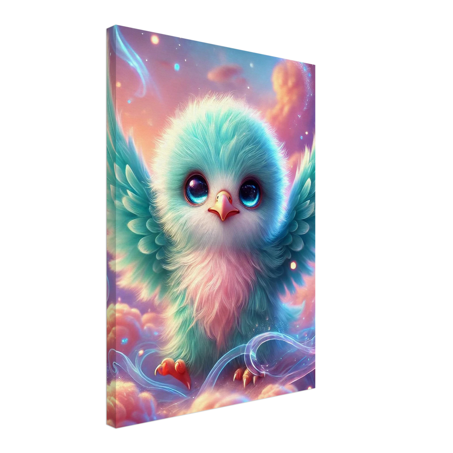 Wenn die Dunkelheit sich hebt und das erste Licht den Himmel färbt, erwacht Celira, die himmlische Botin des neuen Tages. Mit ihrem türkisblauen Gefieder, das zwischen rosa Wolken tanzt, bringt sie Leichtigkeit und Hoffnung in dein Zuhause – ein sanftes Lichtwesen zwischen Traum und Erwachen.