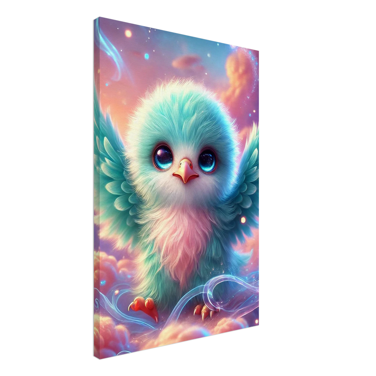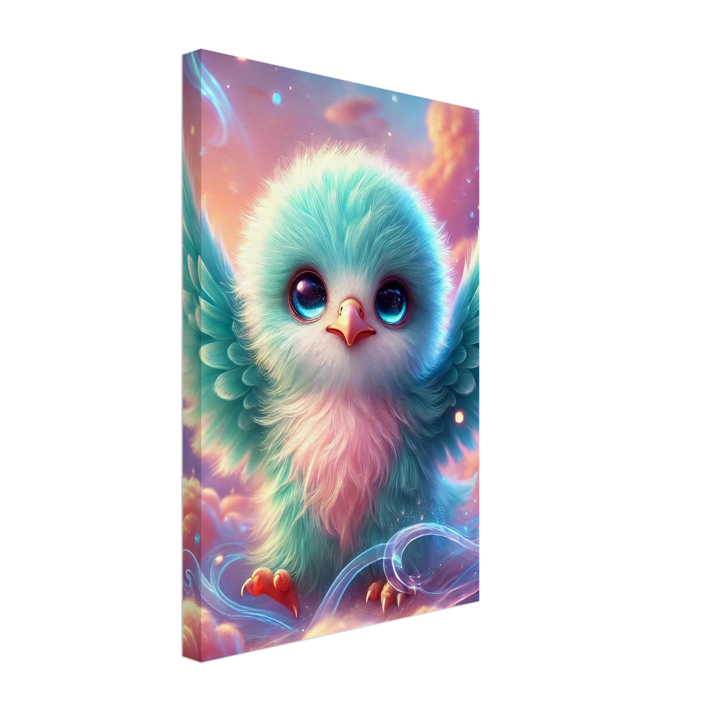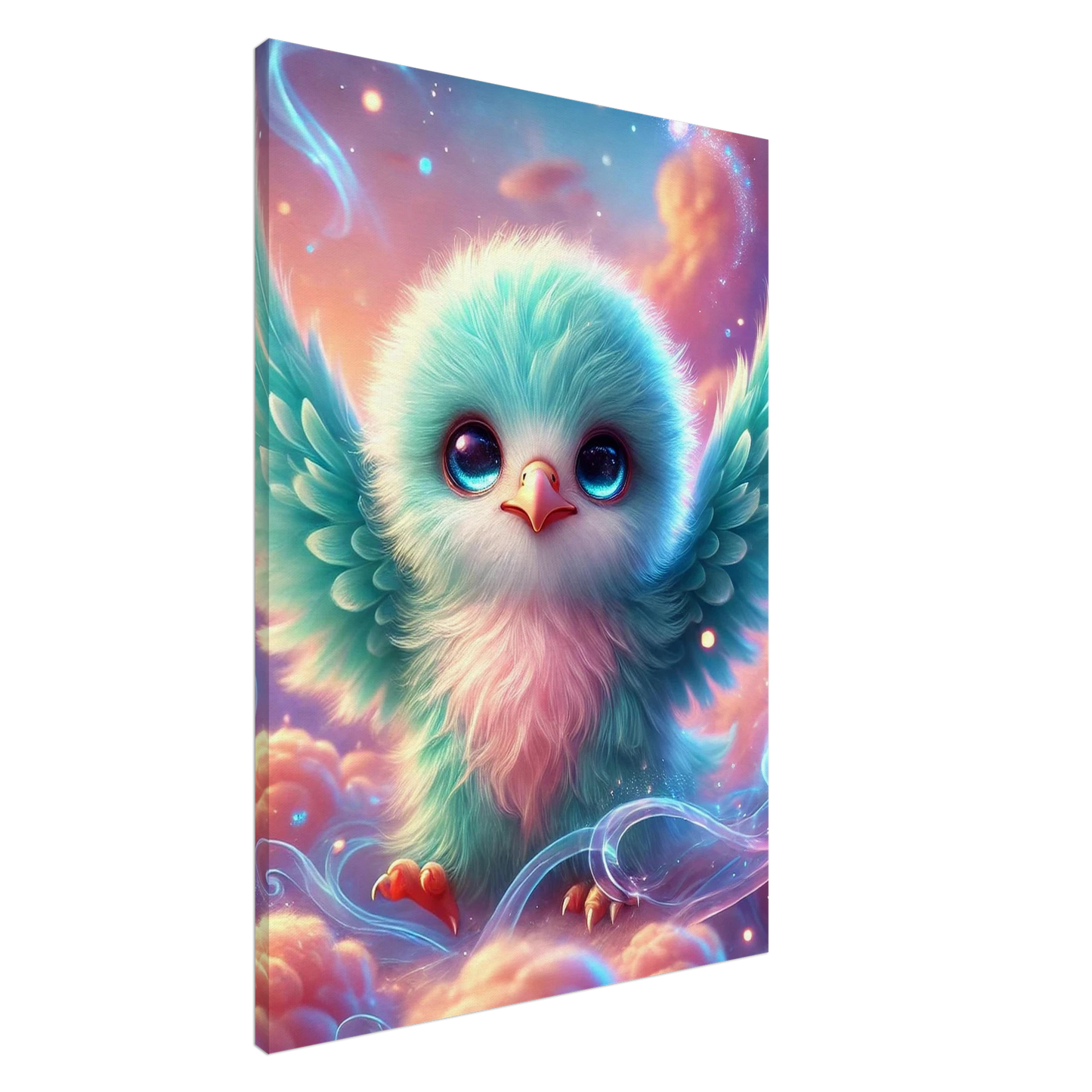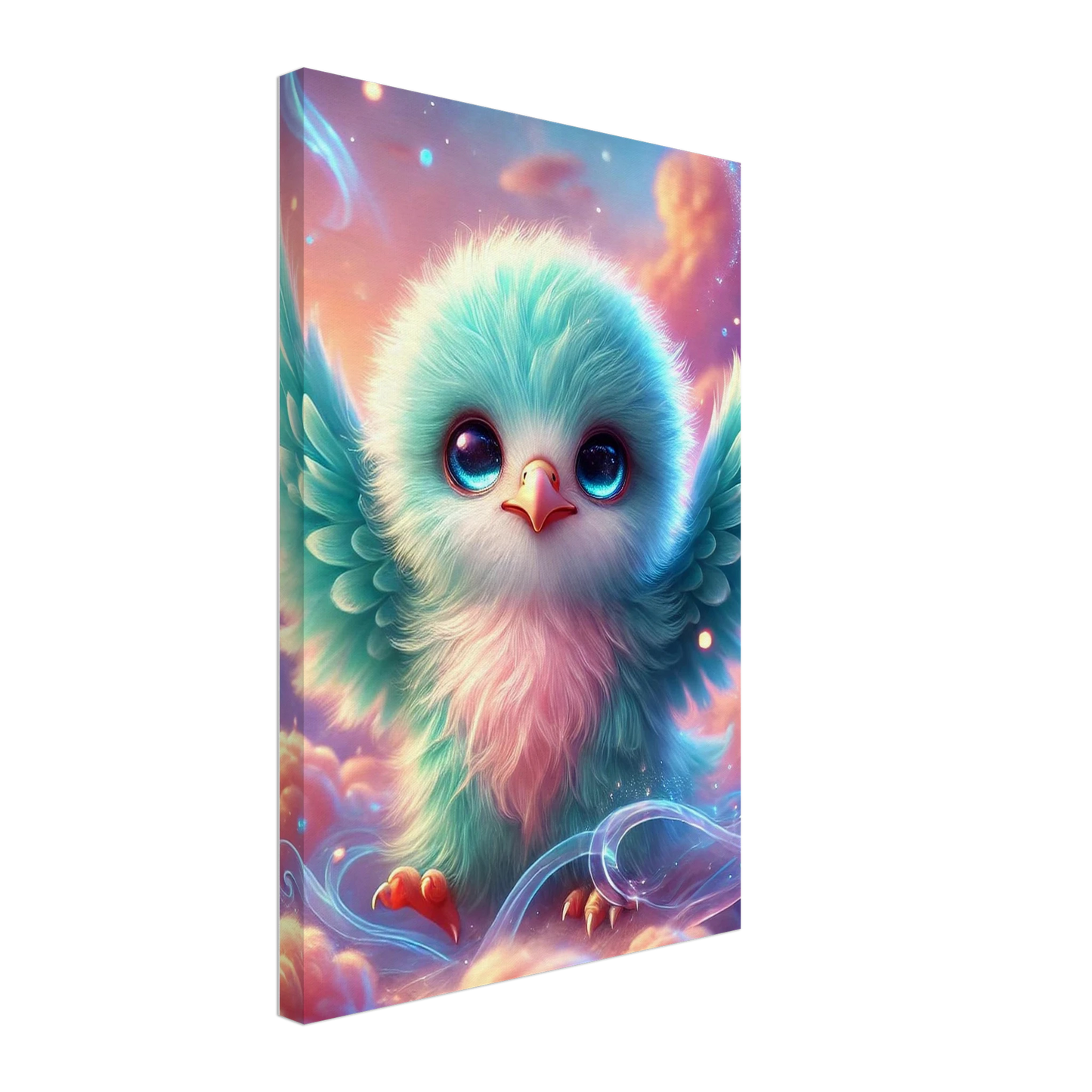 Wenn die Dunkelheit sich hebt und das erste Licht den Himmel färbt, erwacht Celira, die himmlische Botin des neuen Tages. Mit ihrem türkisblauen Gefieder, das zwischen rosa Wolken tanzt, bringt sie Leichtigkeit und Hoffnung in dein Zuhause – ein sanftes Lichtwesen zwischen Traum und Erwachen.