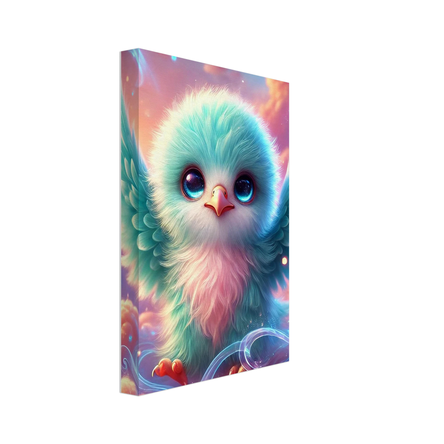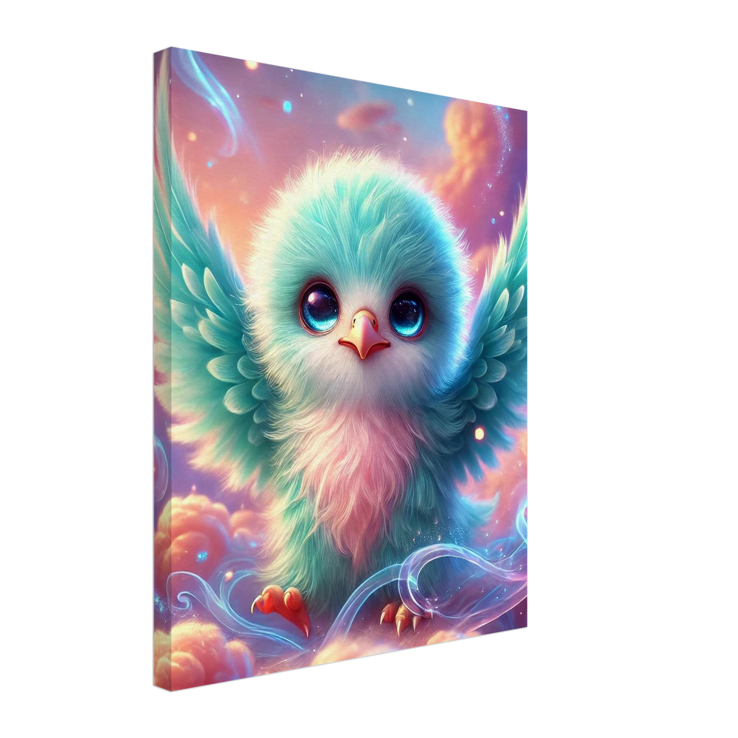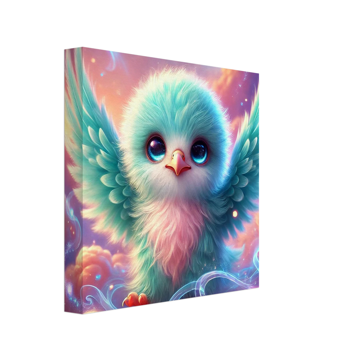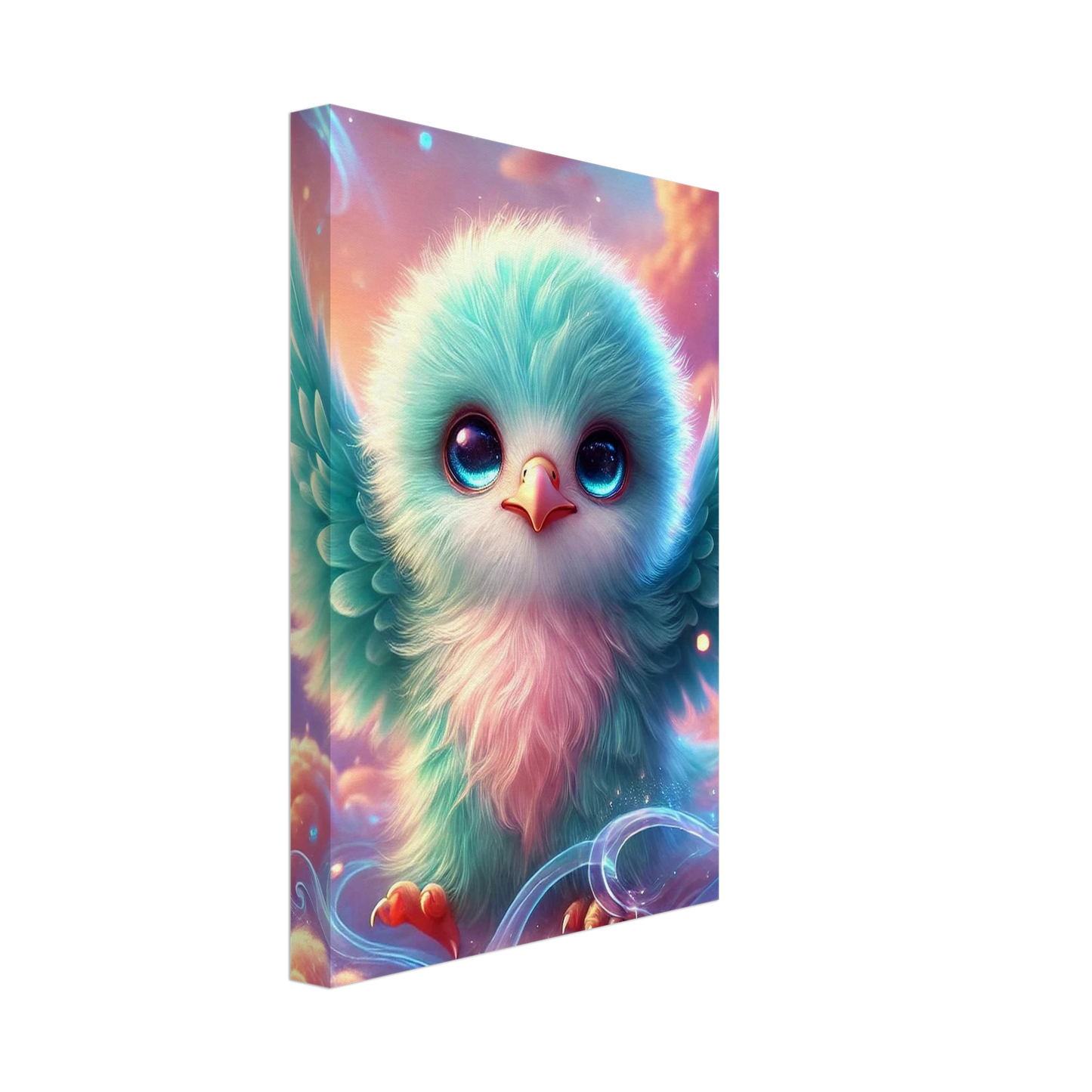 Wenn die Dunkelheit sich hebt und das erste Licht den Himmel färbt, erwacht Celira, die himmlische Botin des neuen Tages. Mit ihrem türkisblauen Gefieder, das zwischen rosa Wolken tanzt, bringt sie Leichtigkeit und Hoffnung in dein Zuhause – ein sanftes Lichtwesen zwischen Traum und Erwachen.
