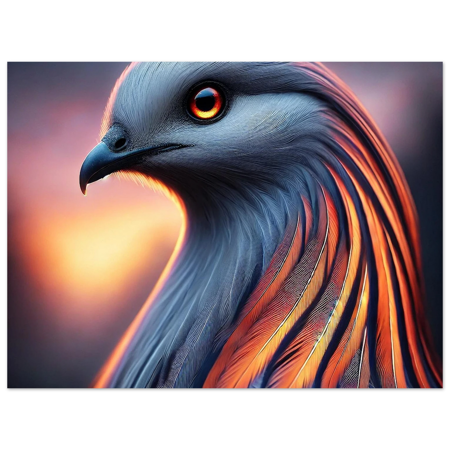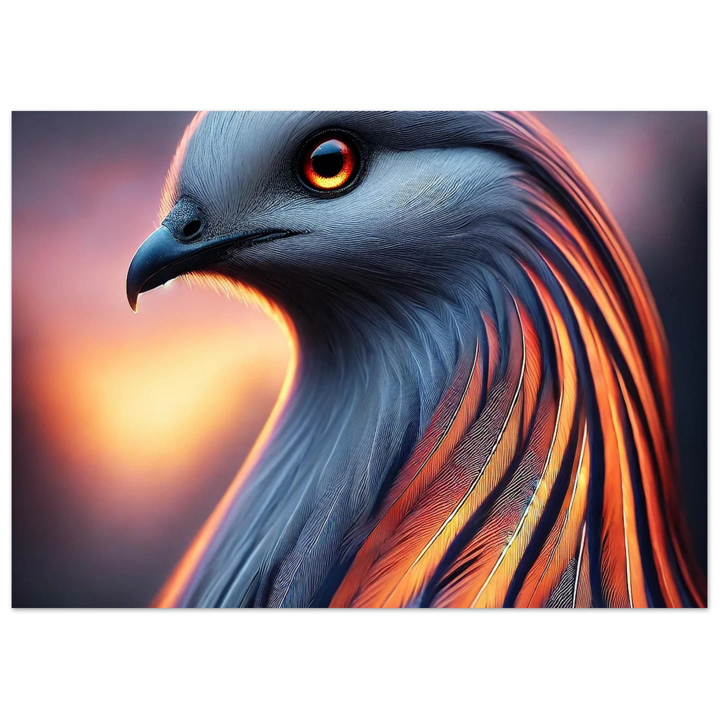 Majestätisch, mystisch und voller Tiefe: „Cendris“ entfaltet seine ganze Wirkung auf unserem eleganten Schaumstoffdruck. Das metallisch schimmernde Gefieder in Kupfer- und Feuertönen kommt auf der glatten Oberfläche intensiv zur Geltung – ein Kunstwerk voller Stärke und Ruhe für moderne Räume.