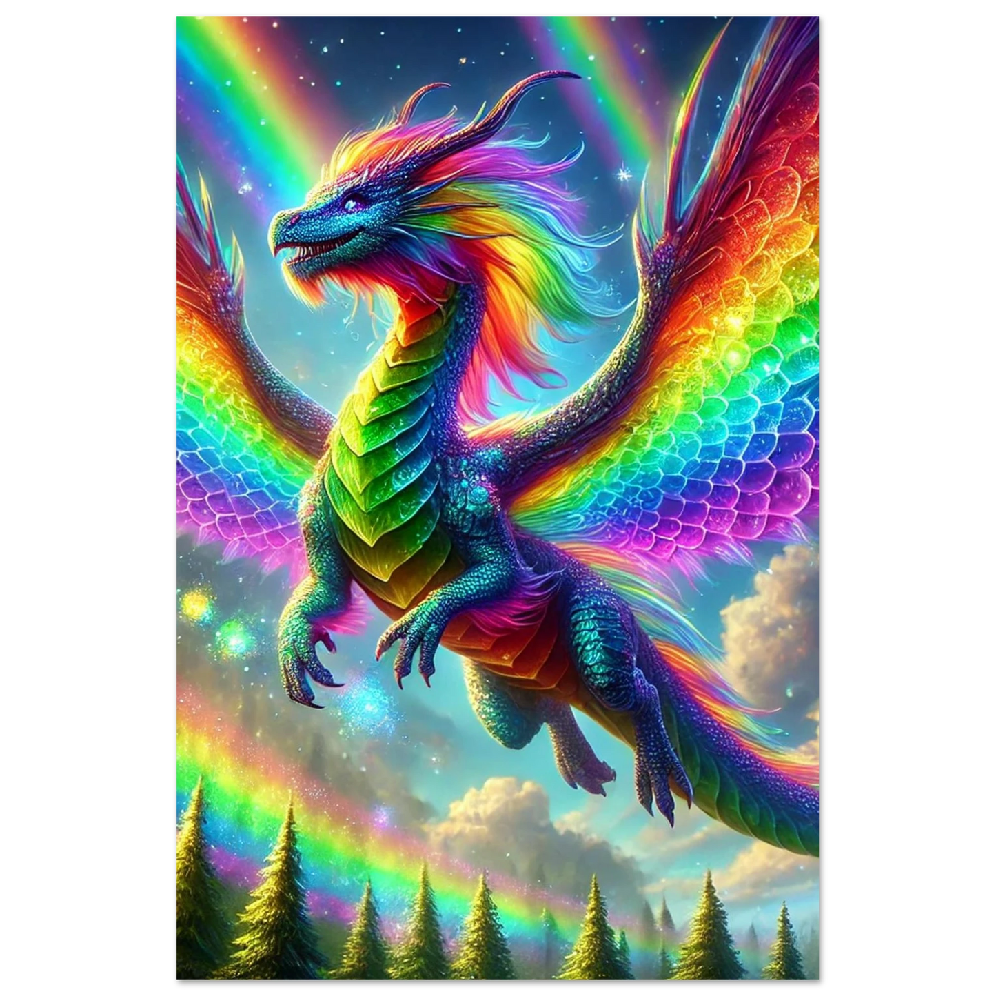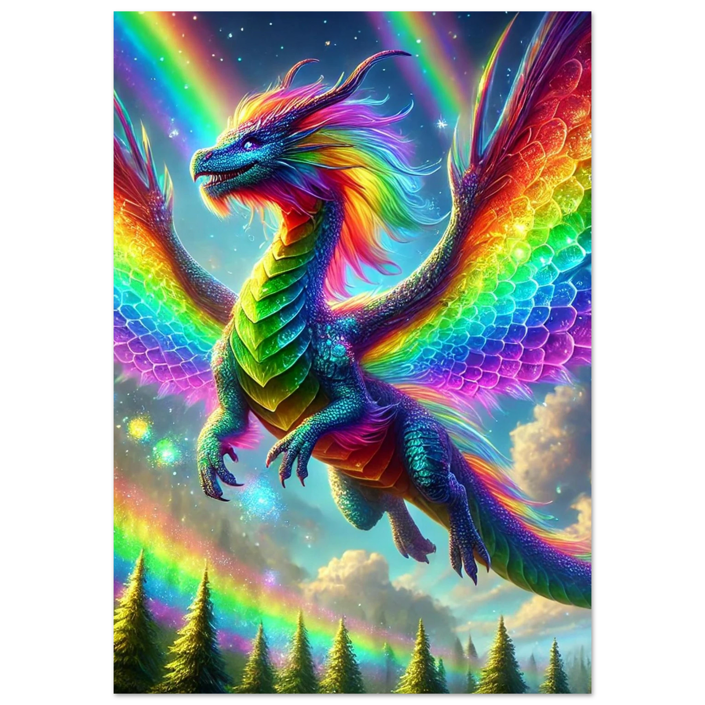 „Chromara“ schwebt mit ihrem regenbogenfarbenen Schuppenkleid auf einem federleichten, aber ausdrucksstarken Schaumstoffdruck durch dein Zuhause. Dieses Kunstwerk bringt Vielfalt, Freiheit und leuchtende Magie in jeden Raum – modern, farbenfroh und unkompliziert zu montieren.