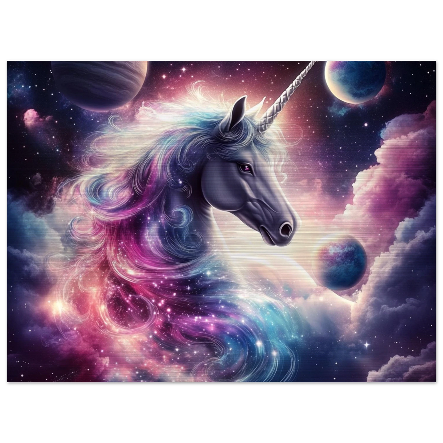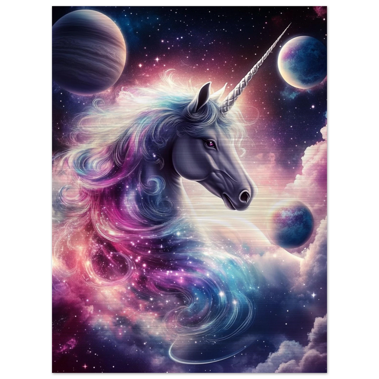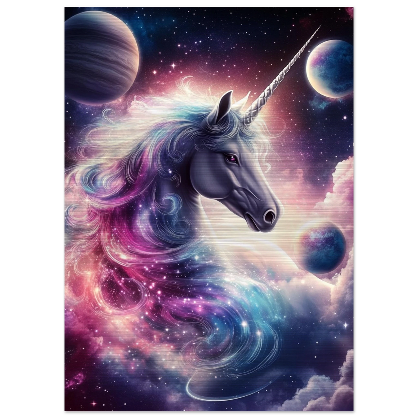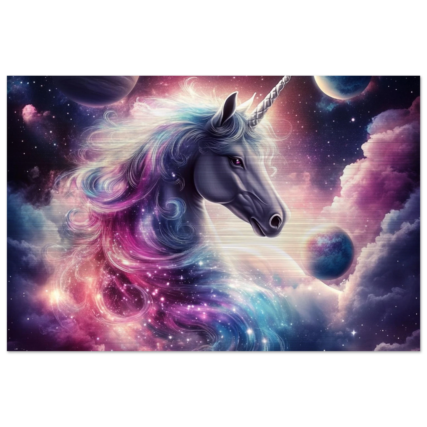 Cosmara – Das Sterneneinhorn der Galaxie / Gebürsteter Aluminiumdruck