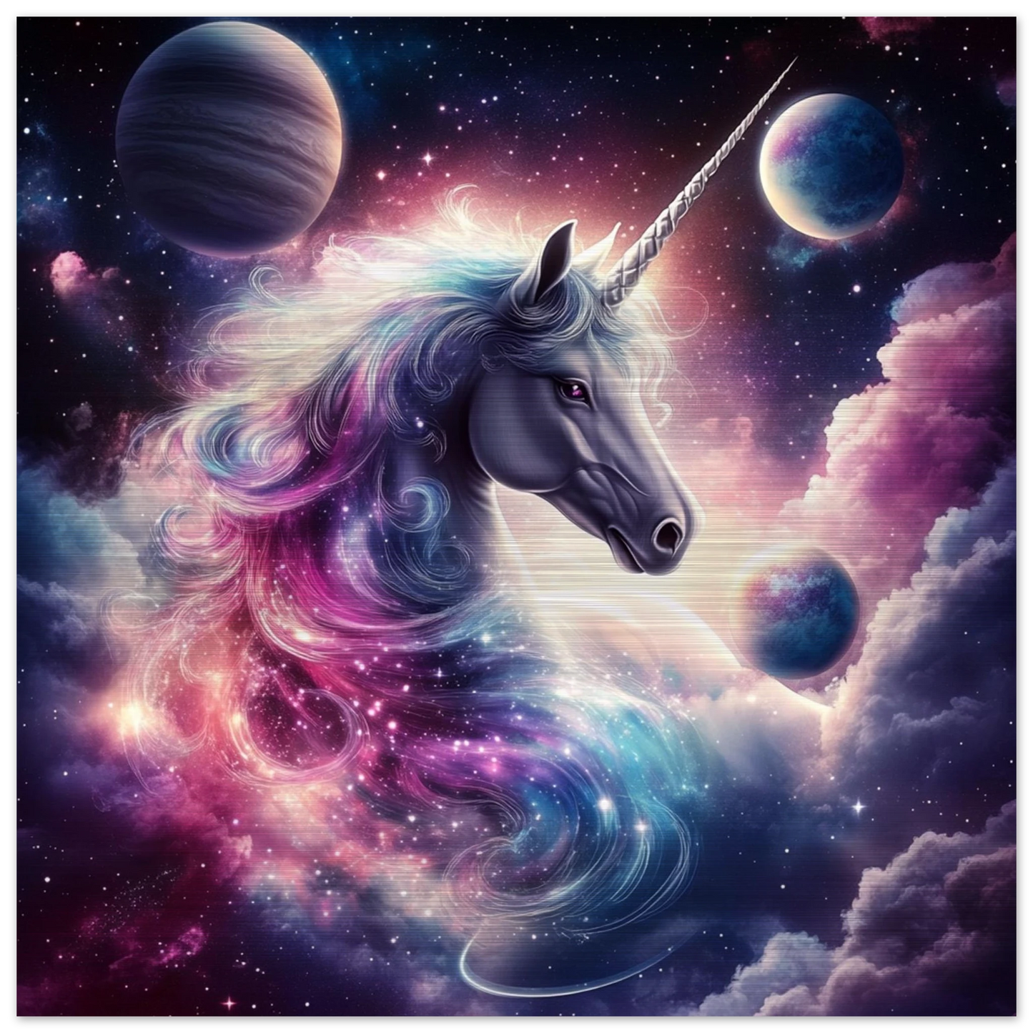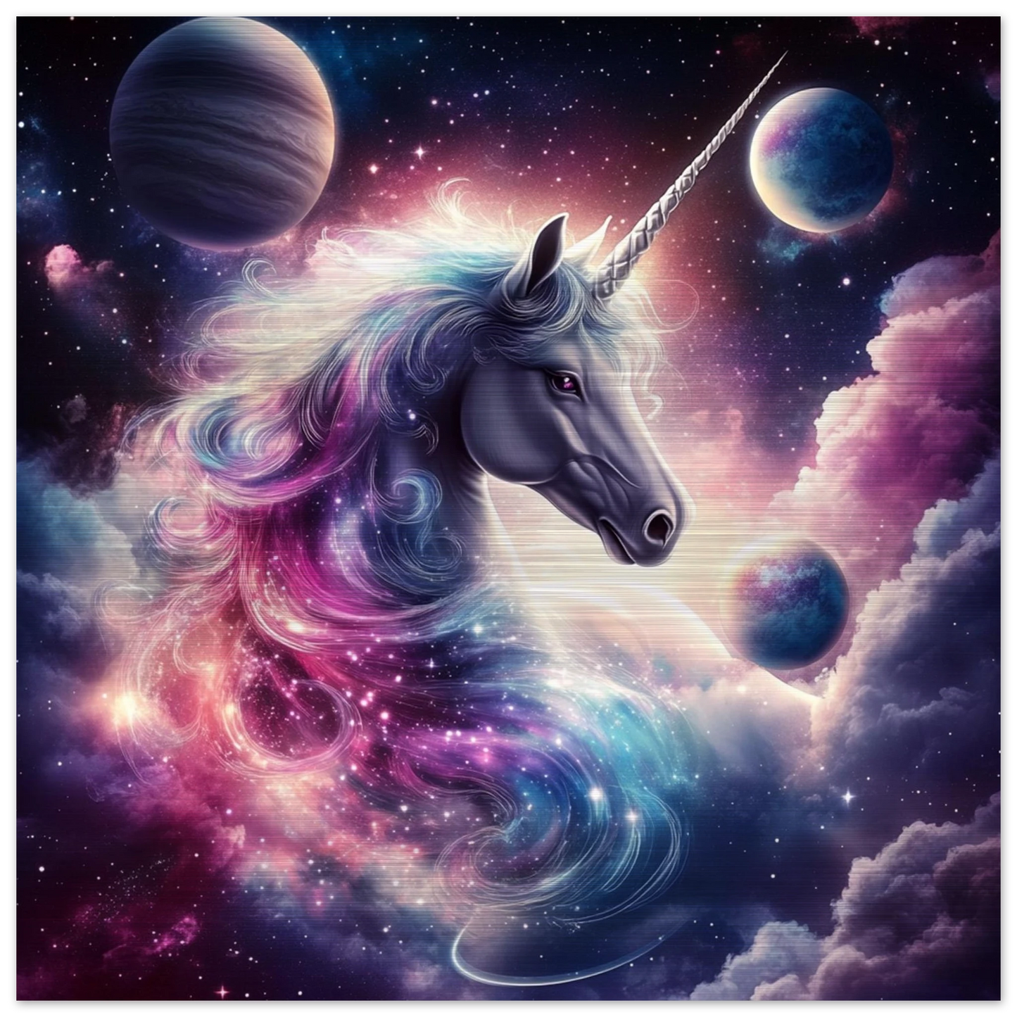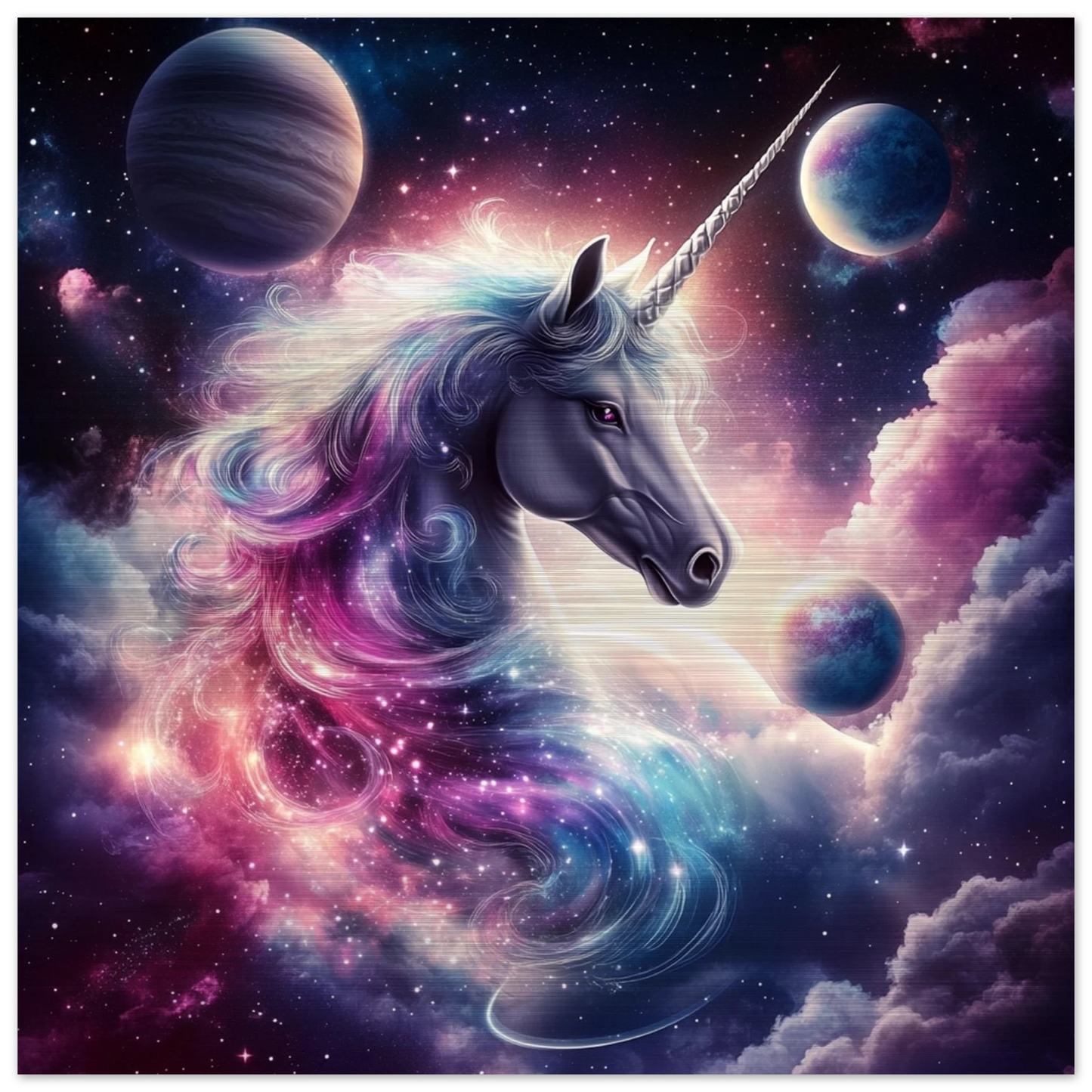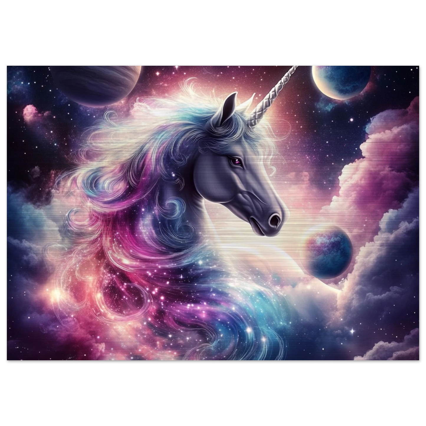 Cosmara – Das Sterneneinhorn der Galaxie / Gebürsteter Aluminiumdruck