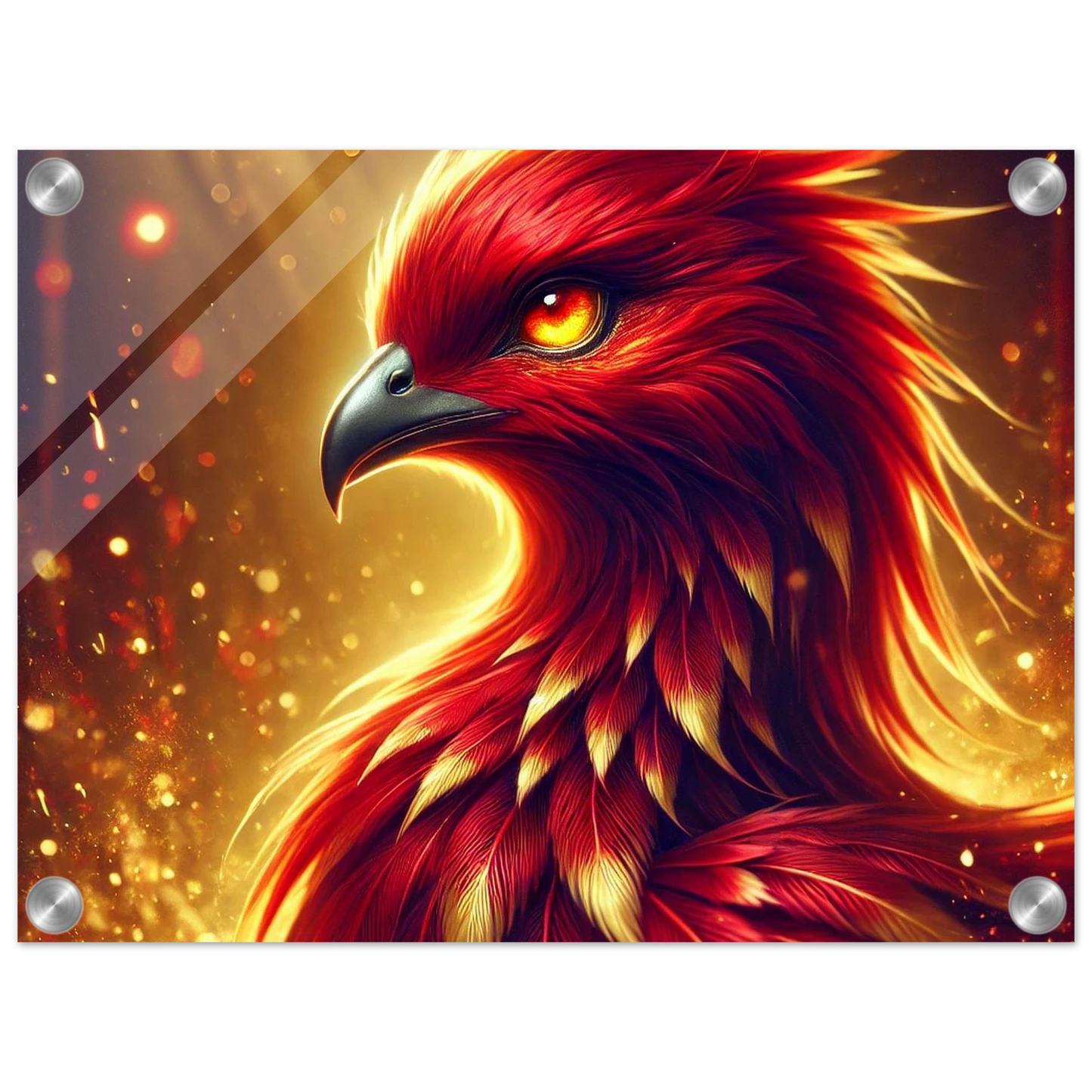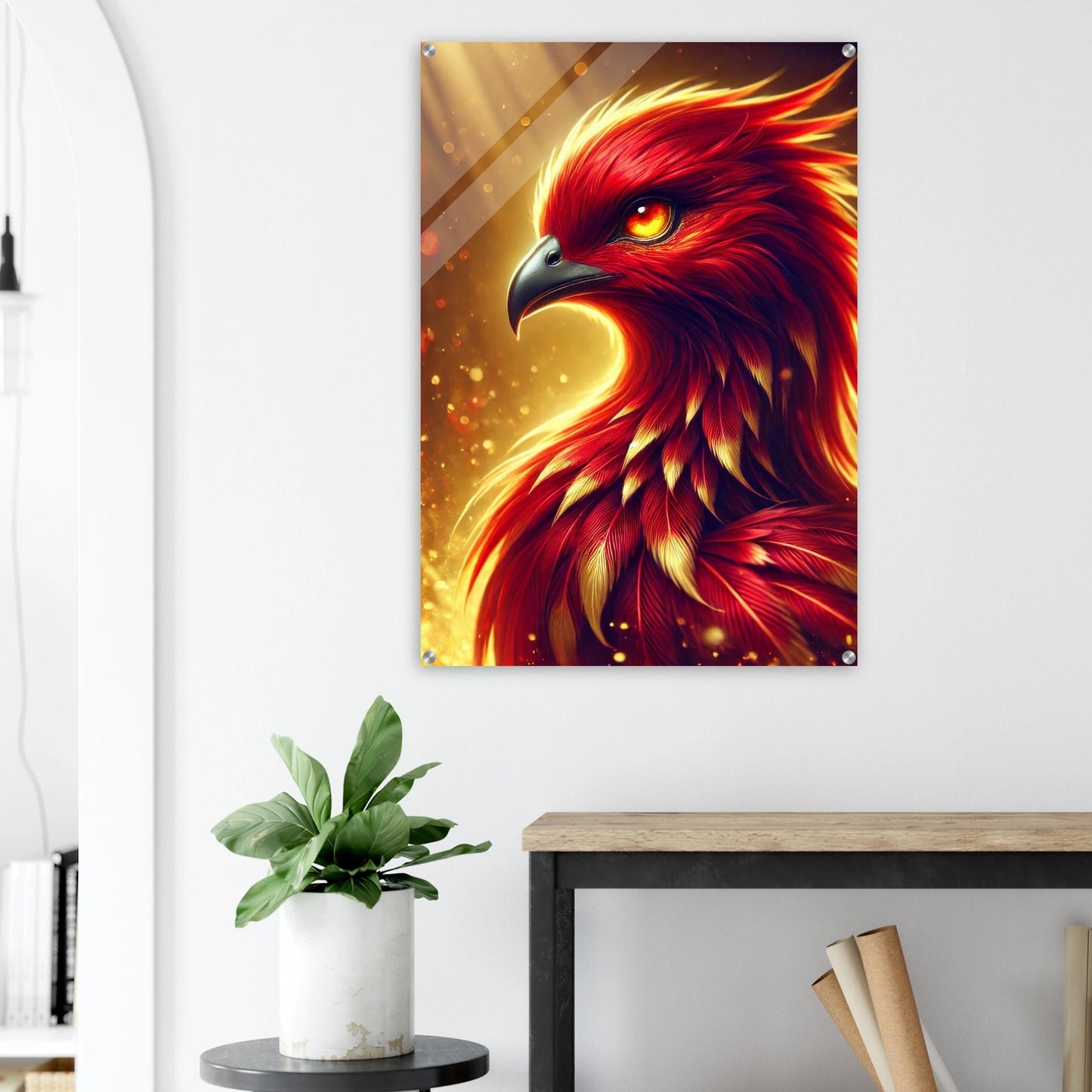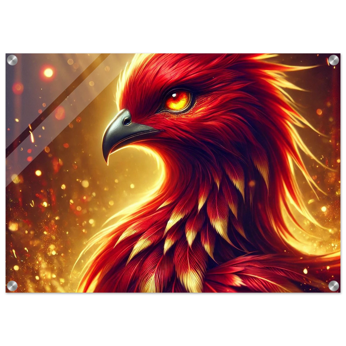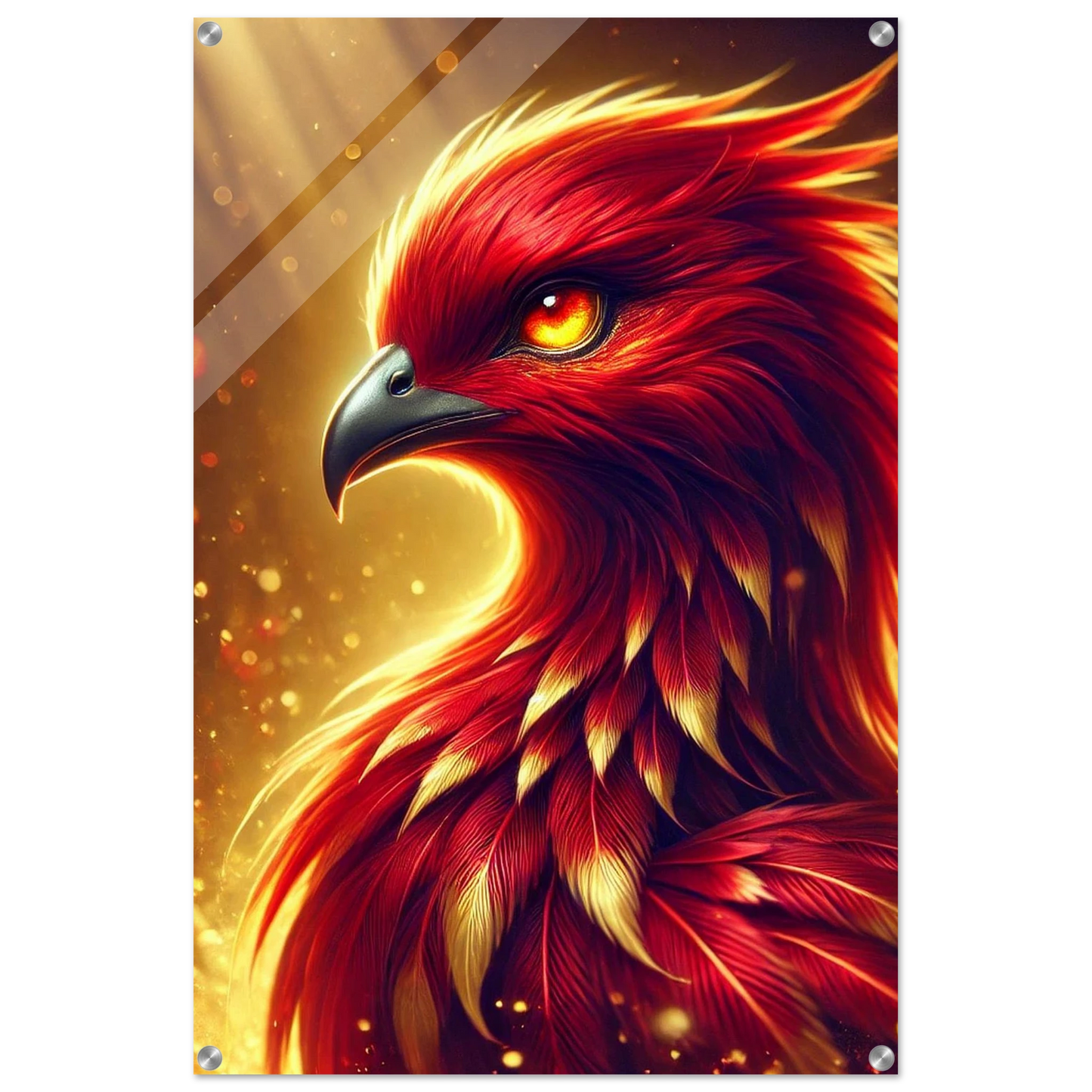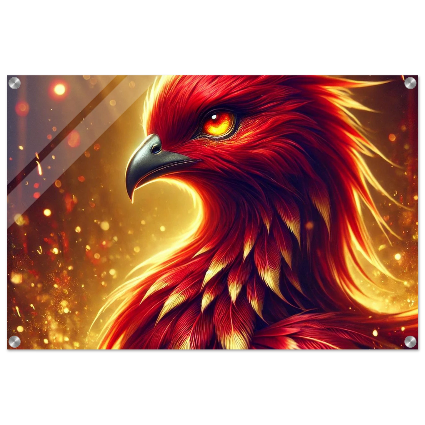 „Crimsonflare“ ist mehr als ein Feuervogel – er ist ein Symbol für Transformation, Mut und inneres Erwachen. Seine leuchtenden Farben, inspiriert vom ersten Licht der Morgensonne, wirken auf Acrylglas besonders intensiv und tief. Das hochglänzende Finish bringt jede Flamme zum Strahlen – ein Blickfang für alle, die Veränderung nicht scheuen, sondern begrüßen.