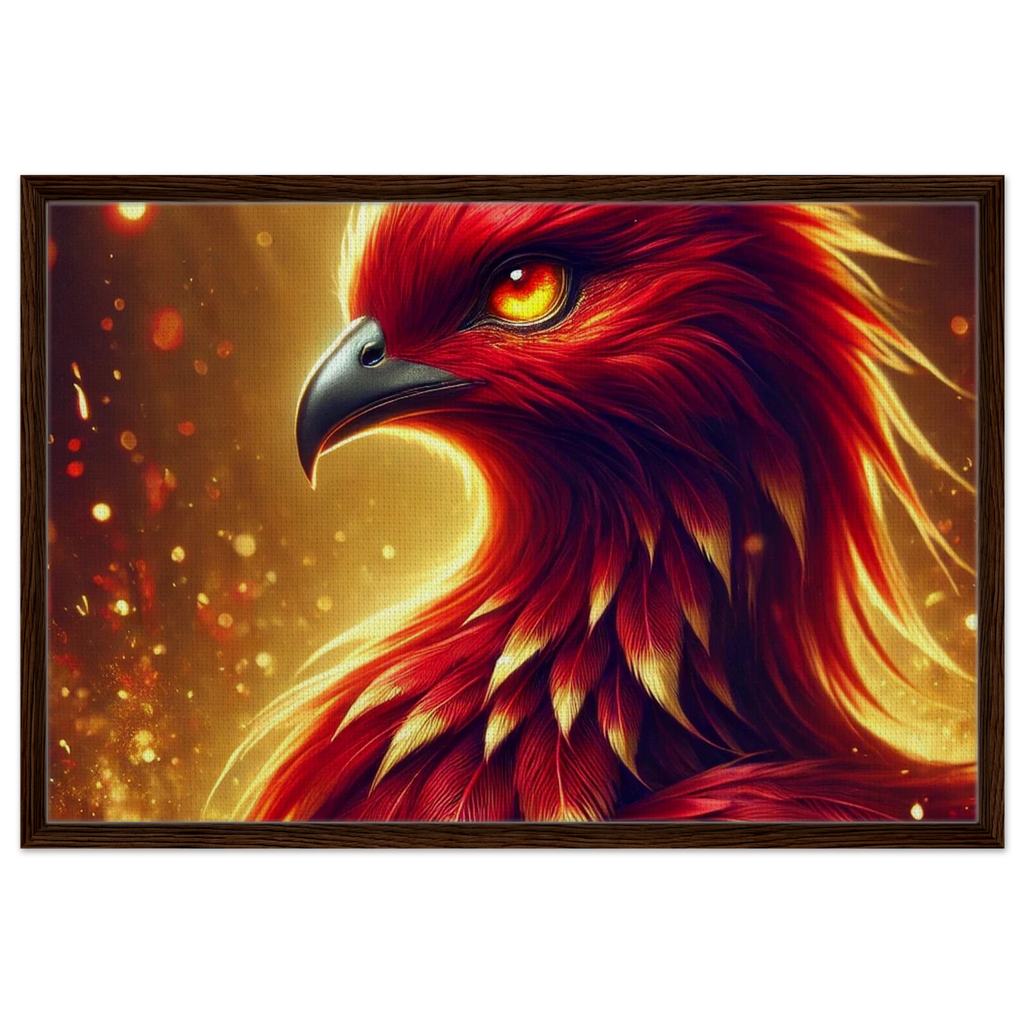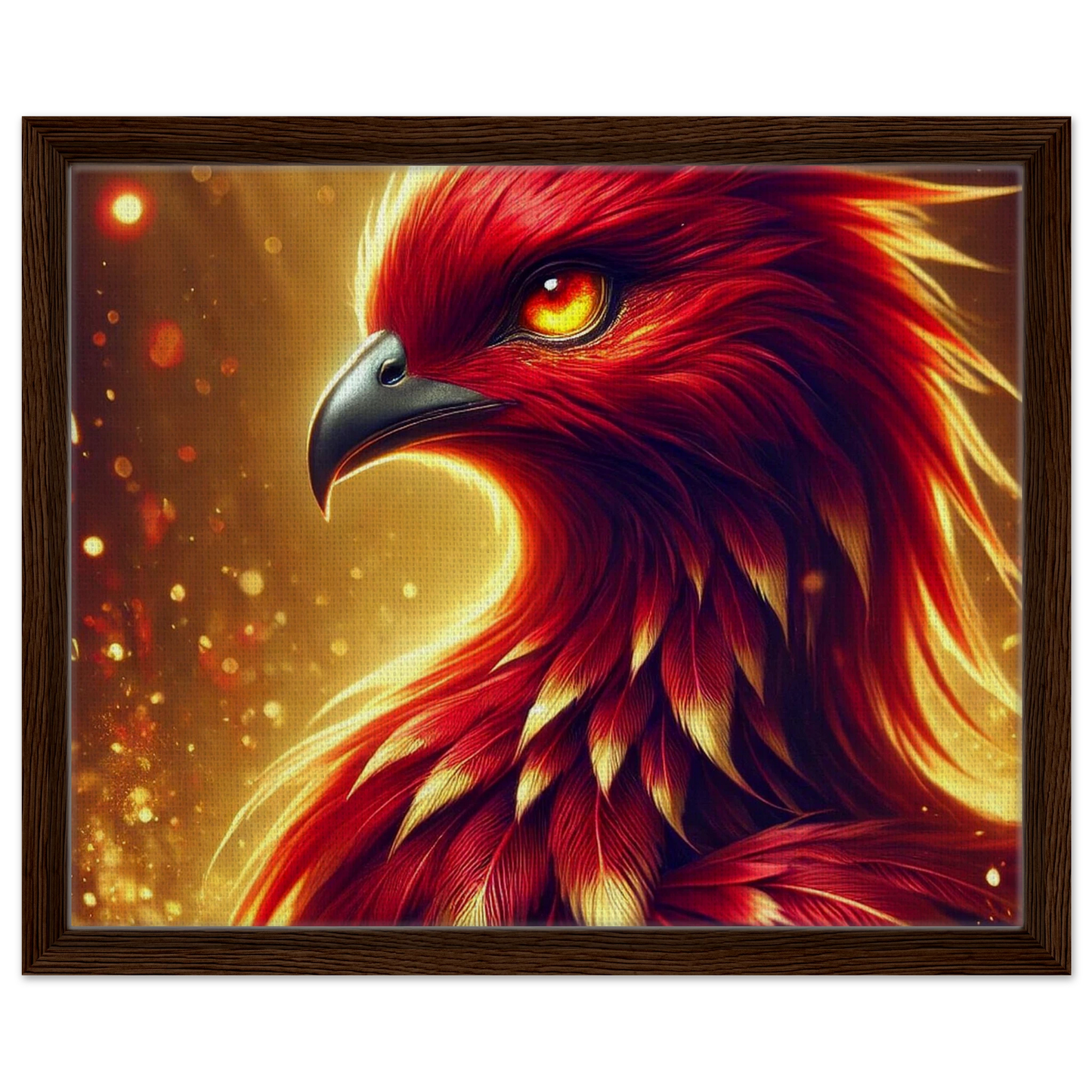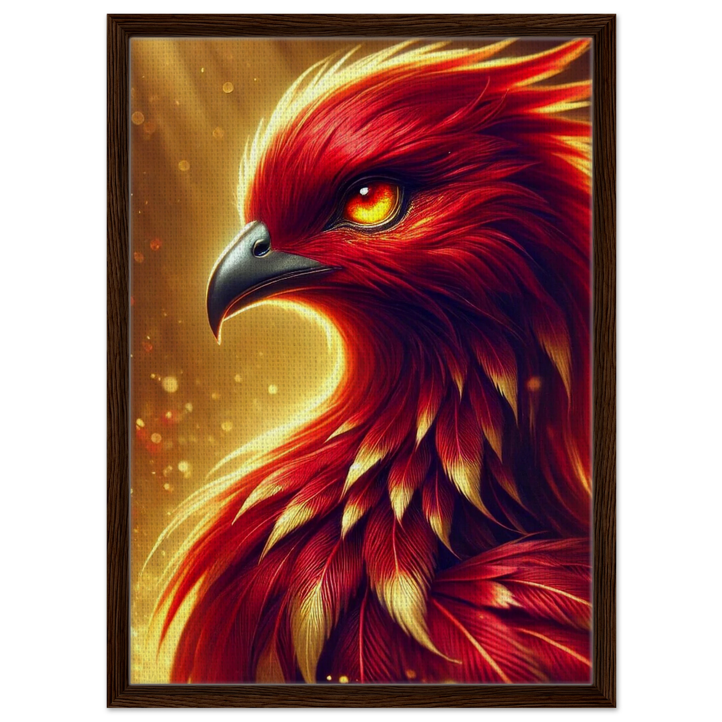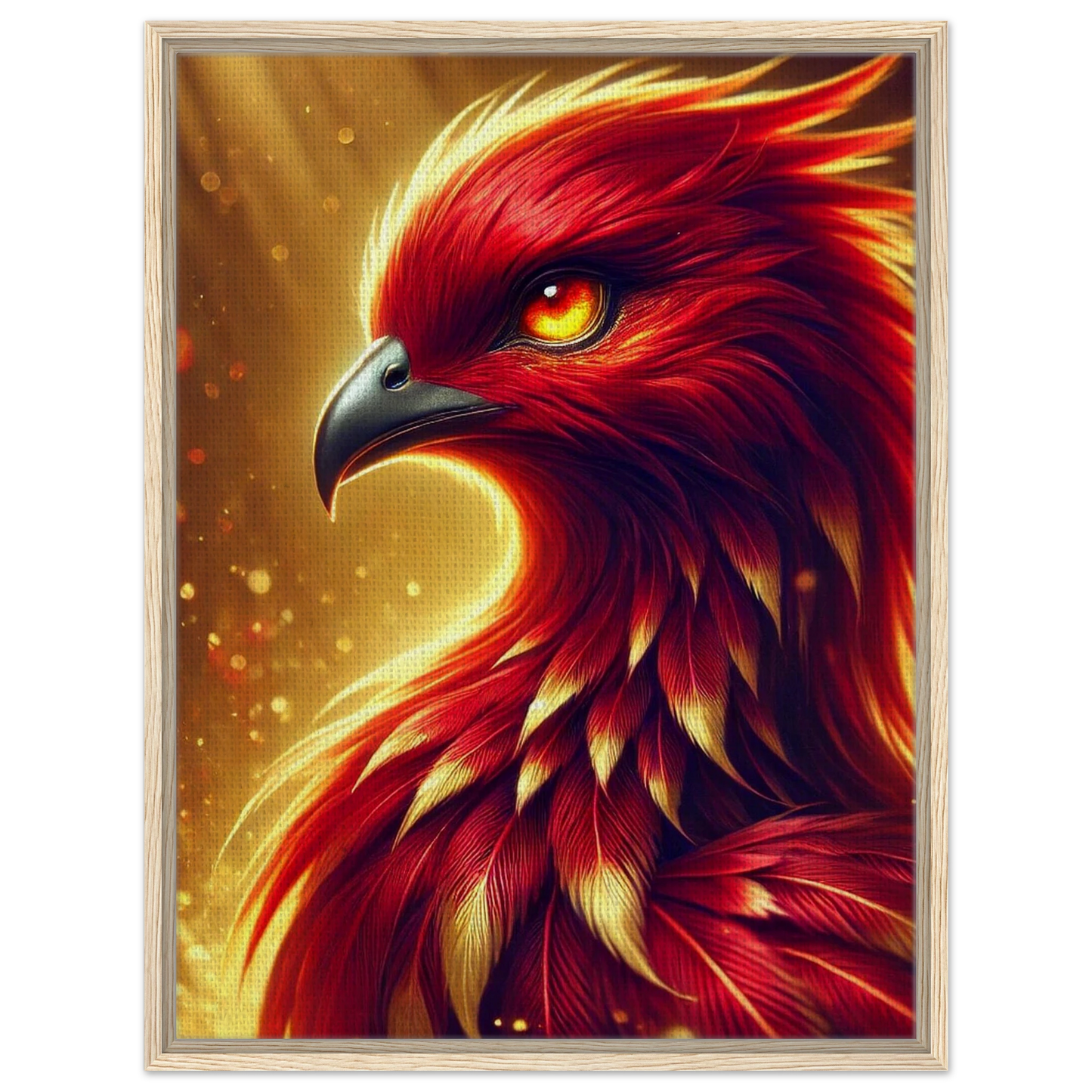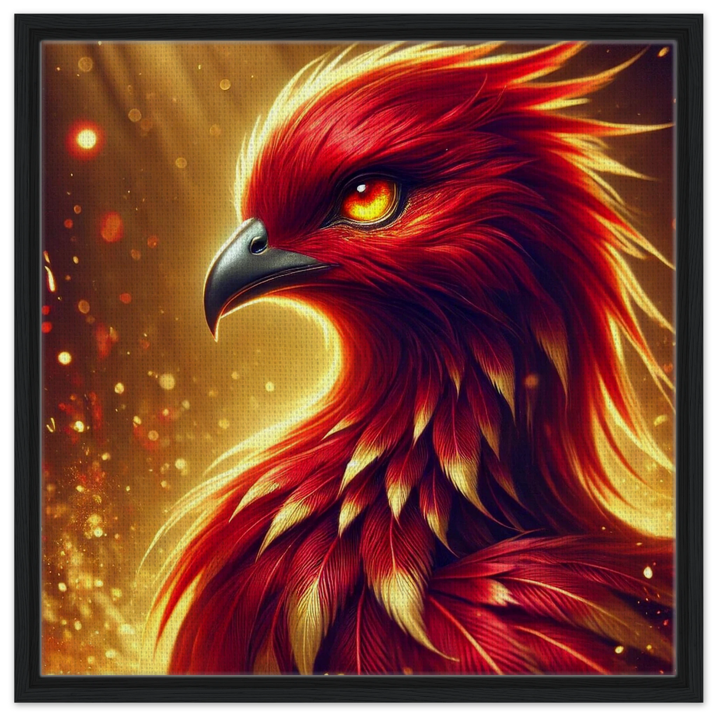 „Crimsonflare“ ist ein majestätischer Feuervogel, geboren aus der Glut vergangener Tage, fliegend im ersten Licht des Morgens. Seine glühenden Federn tanzen wie lebendige Flammen, sein Blick durchdringt jede Dunkelheit – ein kraftvolles Symbol für Wiedergeburt, Mut und inneres Erwachen.