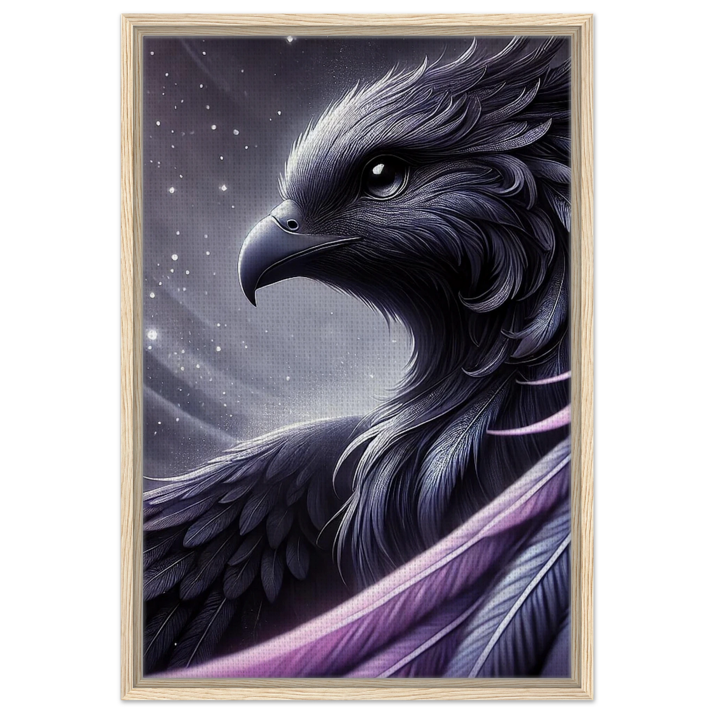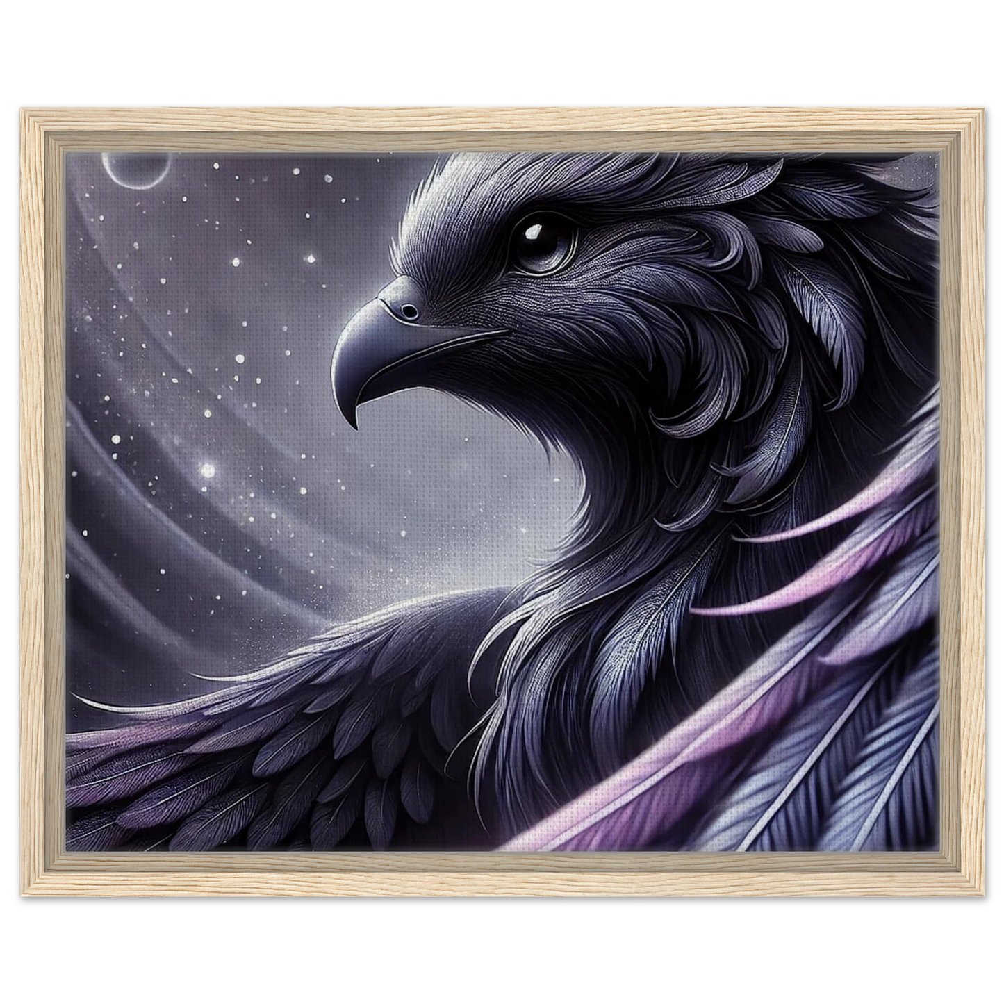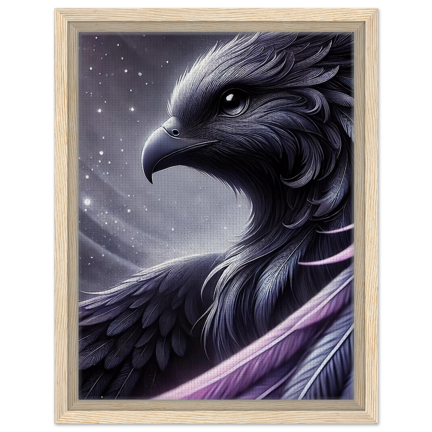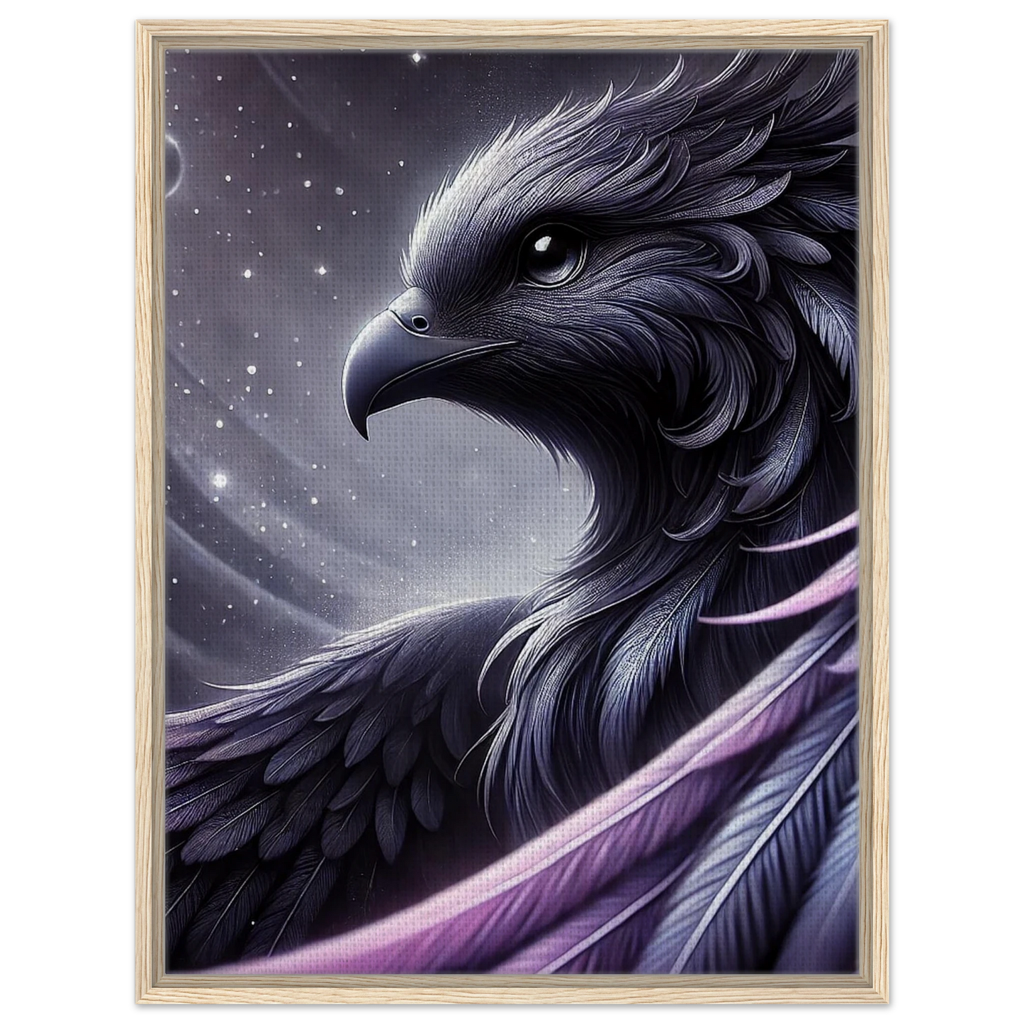 „Eclipsar“ ist ein kosmisches Wesen, das in Stille durch das Universum gleitet. Seine violett-schwarzen Federn leuchten im Schein ferner Sterne, während seine Augen die Unendlichkeit widerspiegeln. Entstanden aus der ersten Sonnenfinsternis, ist er mehr als nur ein Wächter der Galaxie – er ist das Symbol für Veränderung, Neuanfang und kosmisches Gleichgewicht.