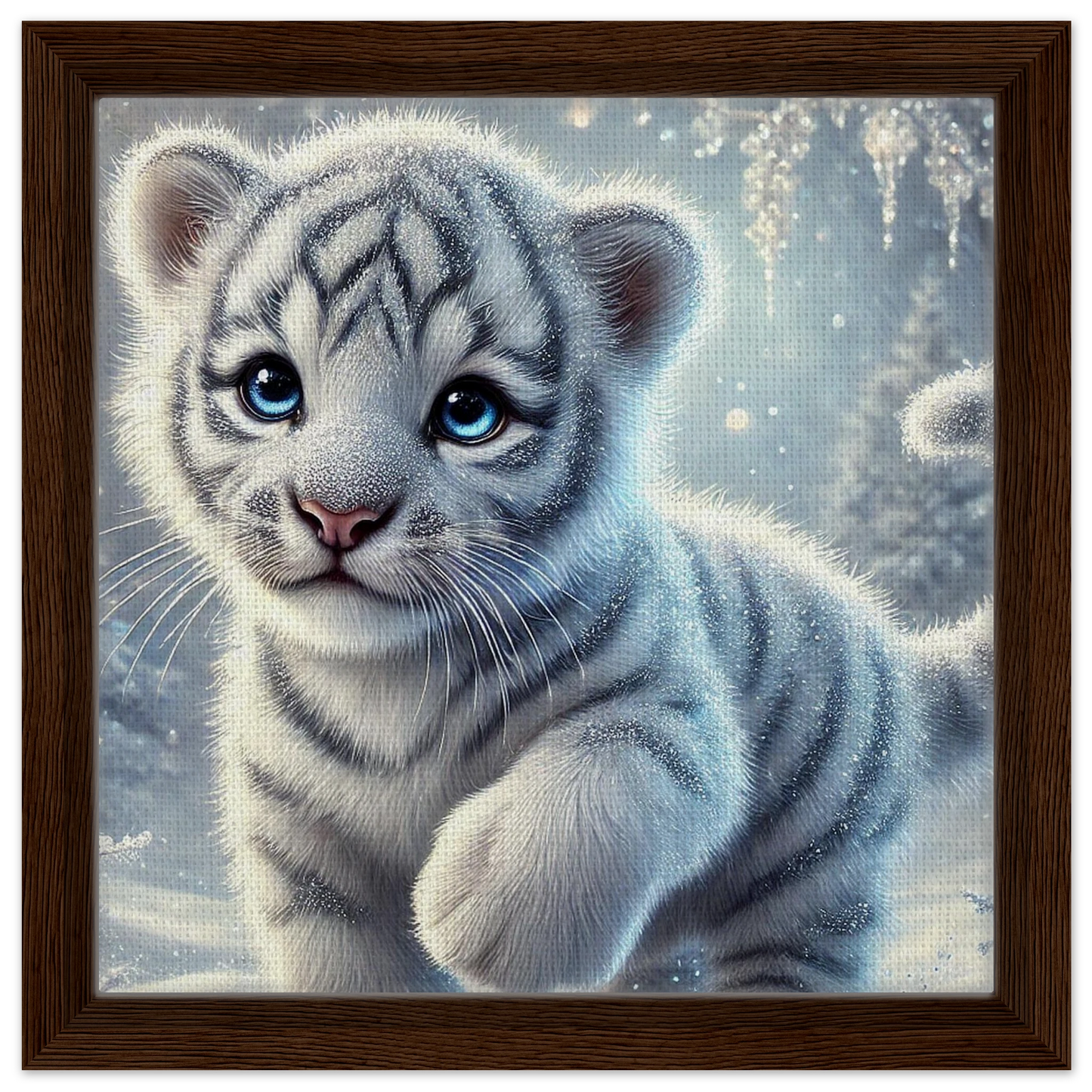Eira ist ein kleines Schneetigerjunge mit einem Herz so rein wie frisch gefallener Schnee. Geboren unter tanzenden Polarlichtern, bringt sie Licht in dunkle Wintertage und schenkt Hoffnung auf einen neuen Anfang. Ihre zarten blauen Augen und ihr sanftes Wesen verzaubern jeden Raum.