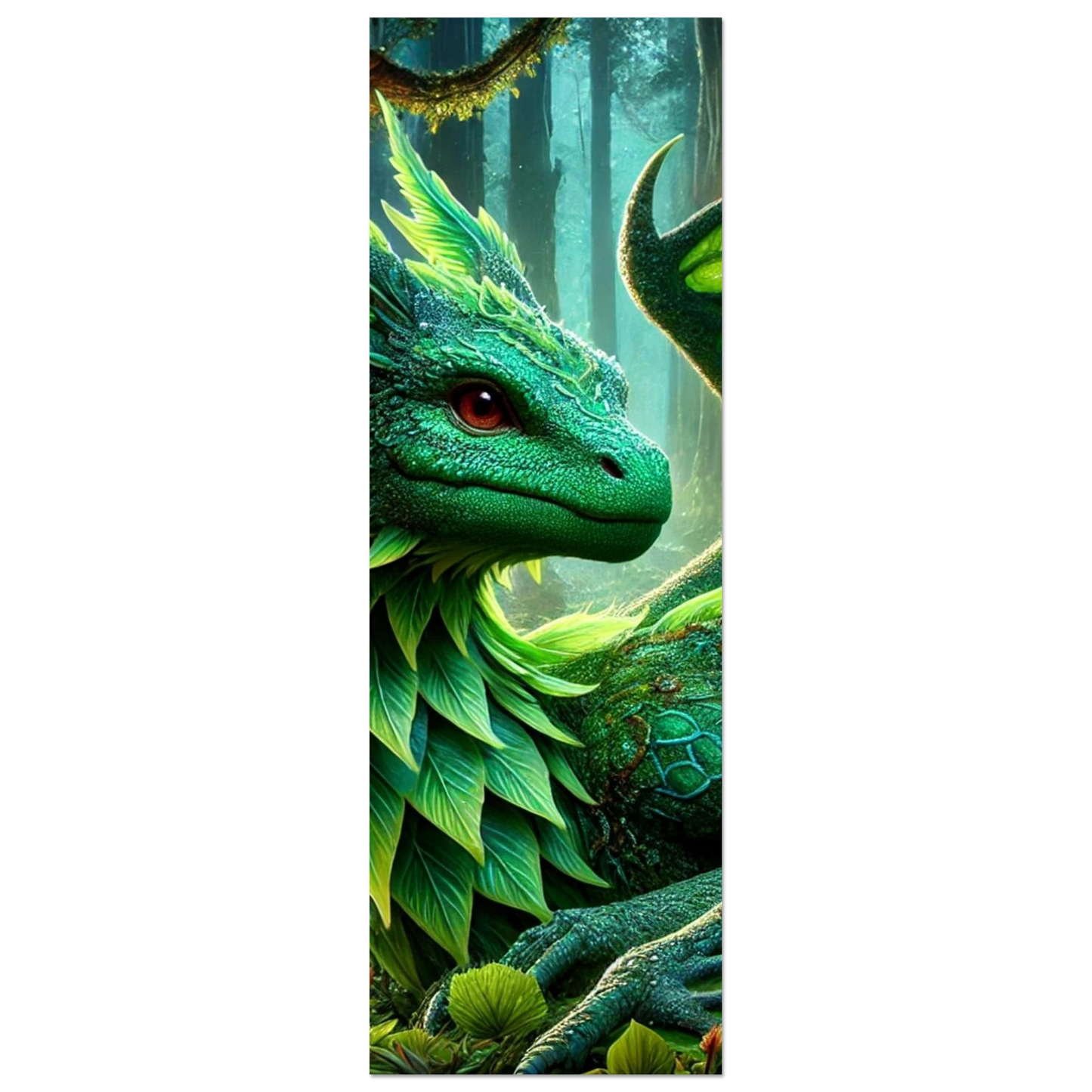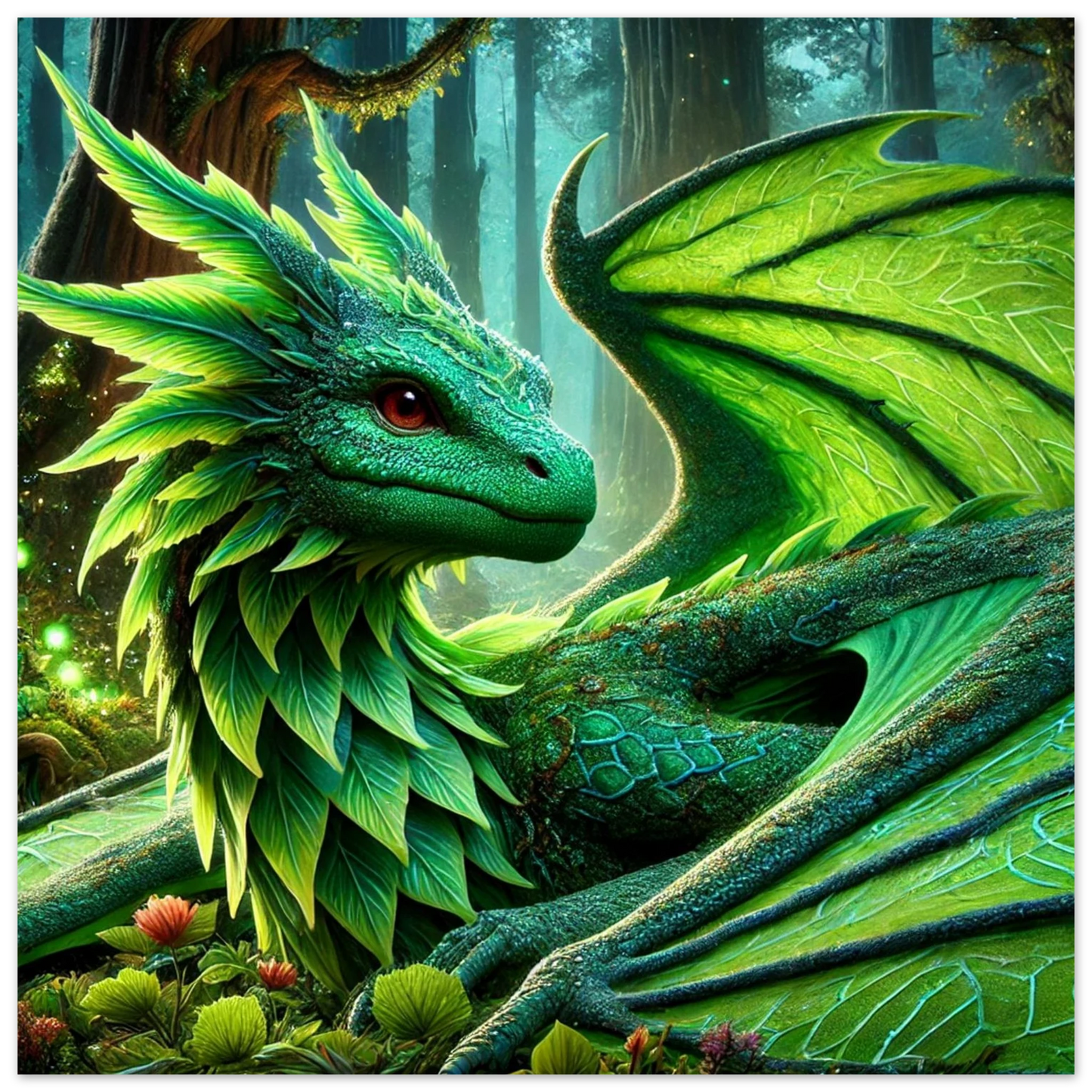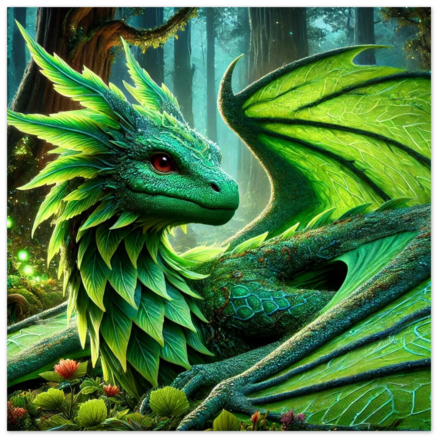 Stärke, Stille und Natürlichkeit – Elandryl, der smaragdgrüne Walddrache, bringt die Kraft des Waldes an deine Wand. Seine Schuppen spiegeln das Licht wie junges Blattwerk, sein Atem weckt das Leben. Als Hüter des Gleichgewichts beschützt er die grüne Welt und erinnert an die heilende Kraft der Natur.