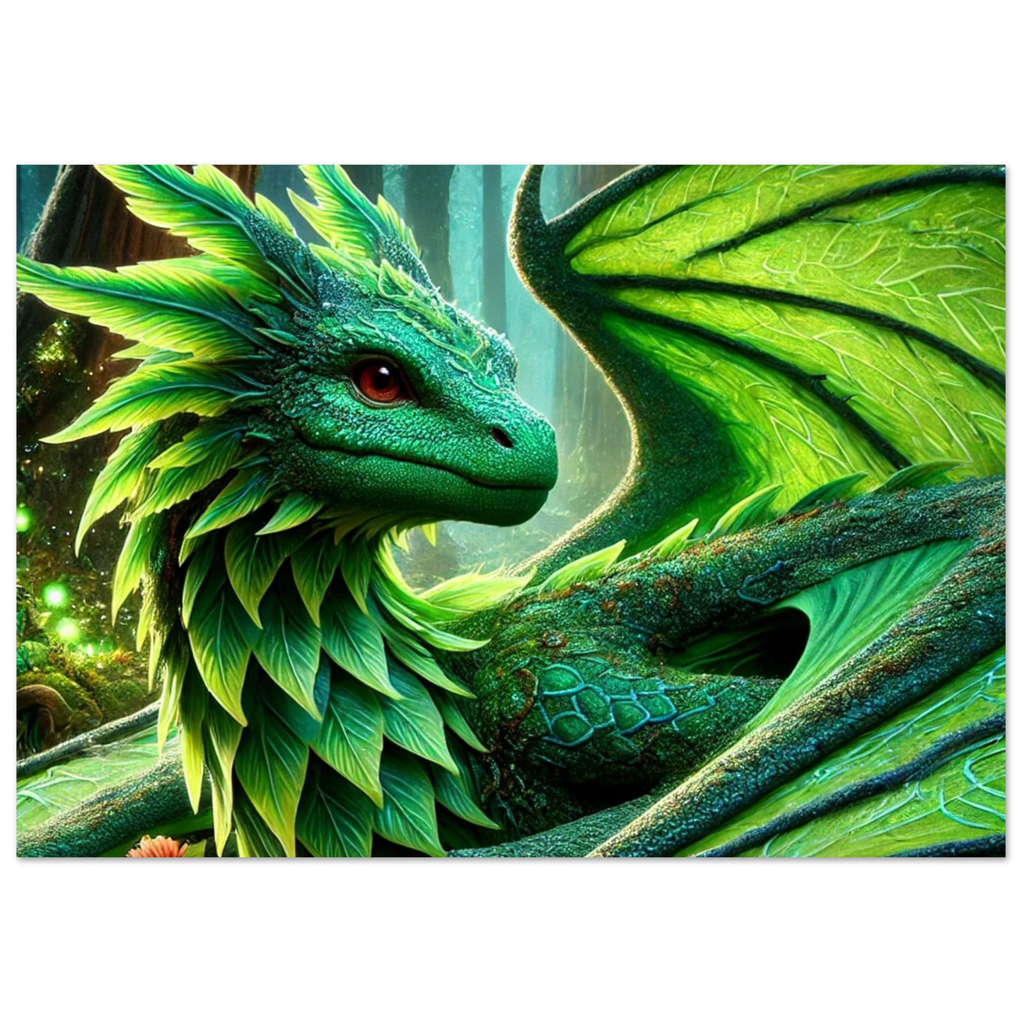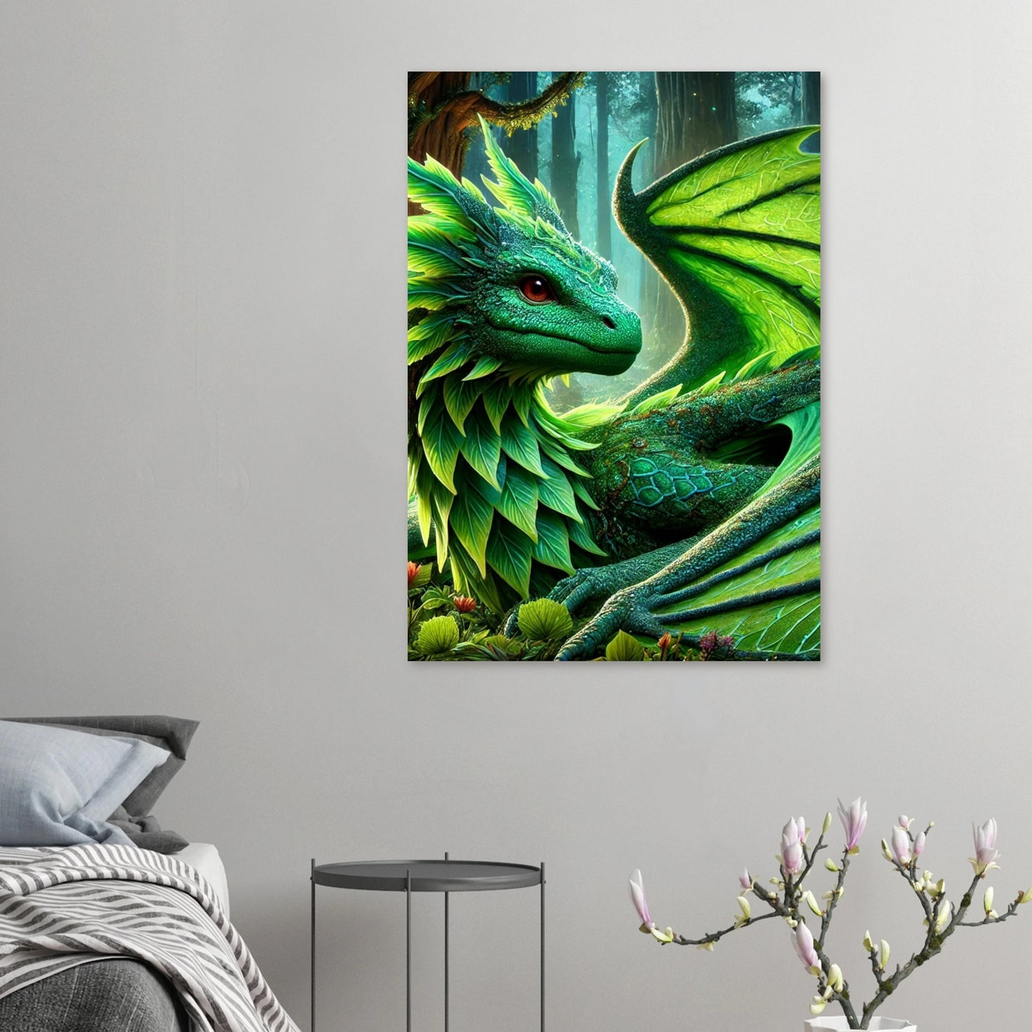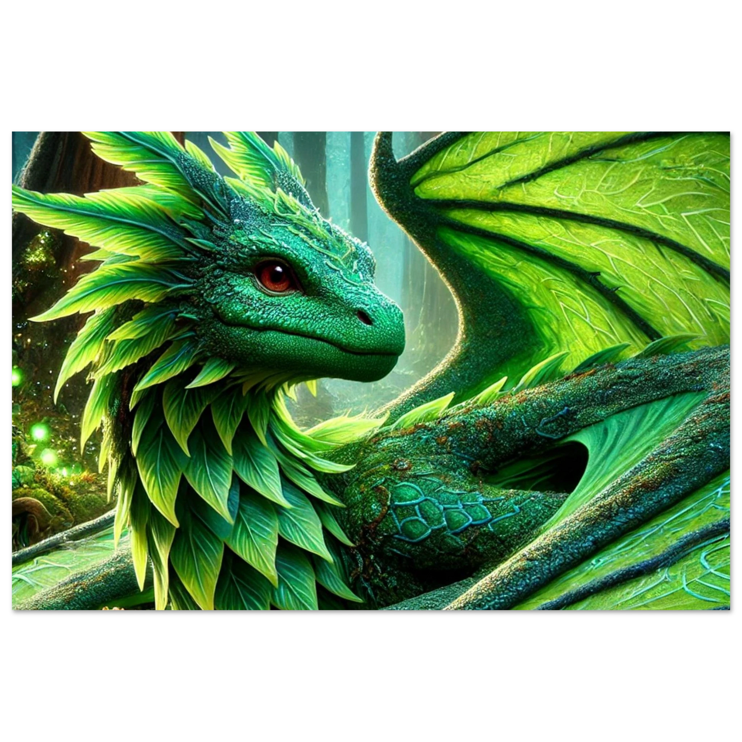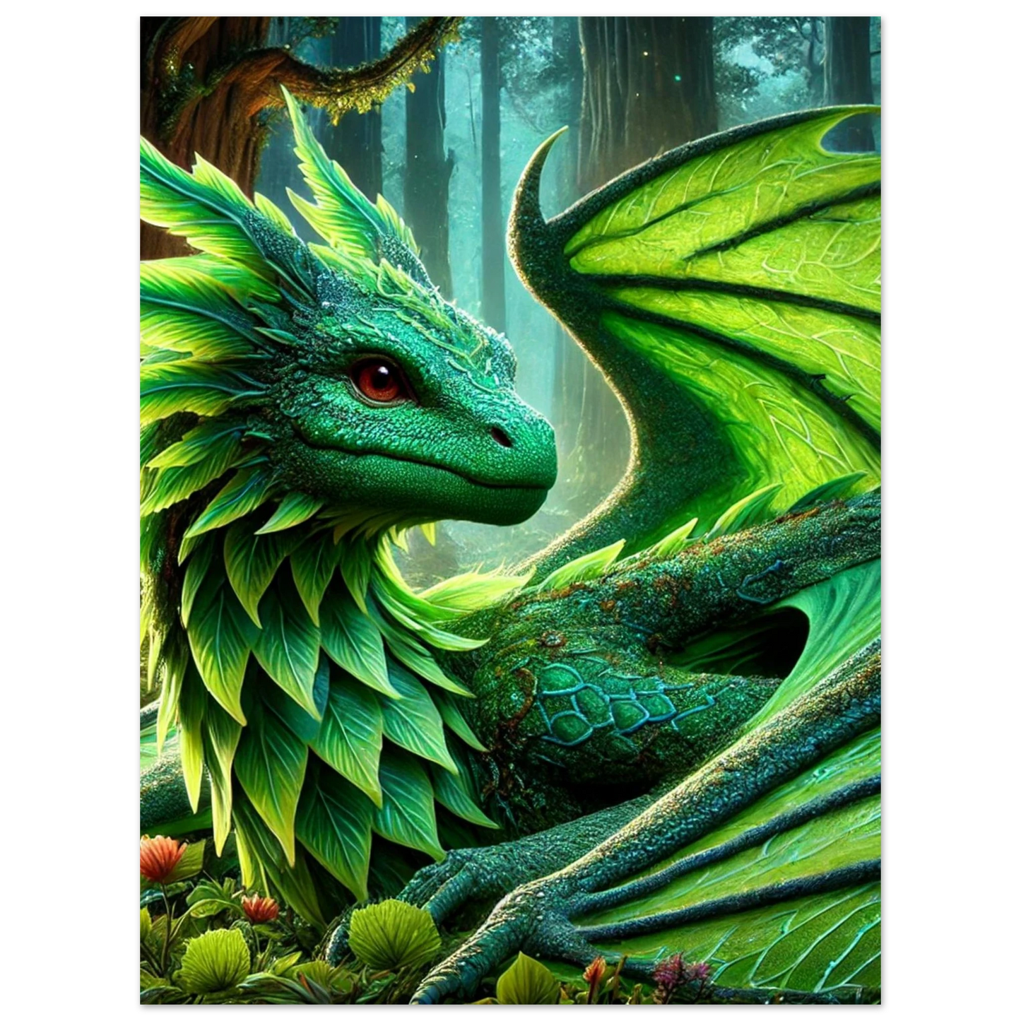 Stärke, Stille und Natürlichkeit – Elandryl, der smaragdgrüne Walddrache, bringt die Kraft des Waldes an deine Wand. Seine Schuppen spiegeln das Licht wie junges Blattwerk, sein Atem weckt das Leben. Als Hüter des Gleichgewichts beschützt er die grüne Welt und erinnert an die heilende Kraft der Natur.