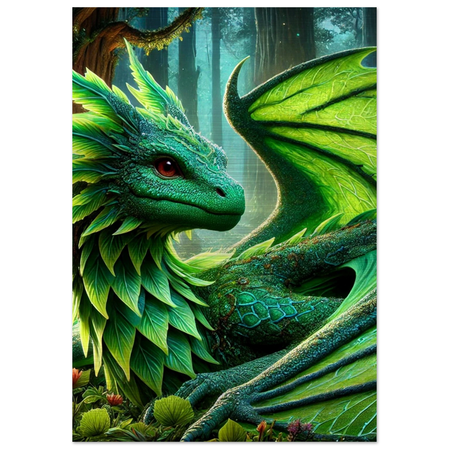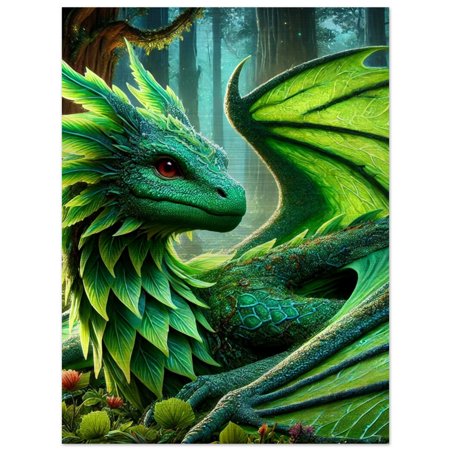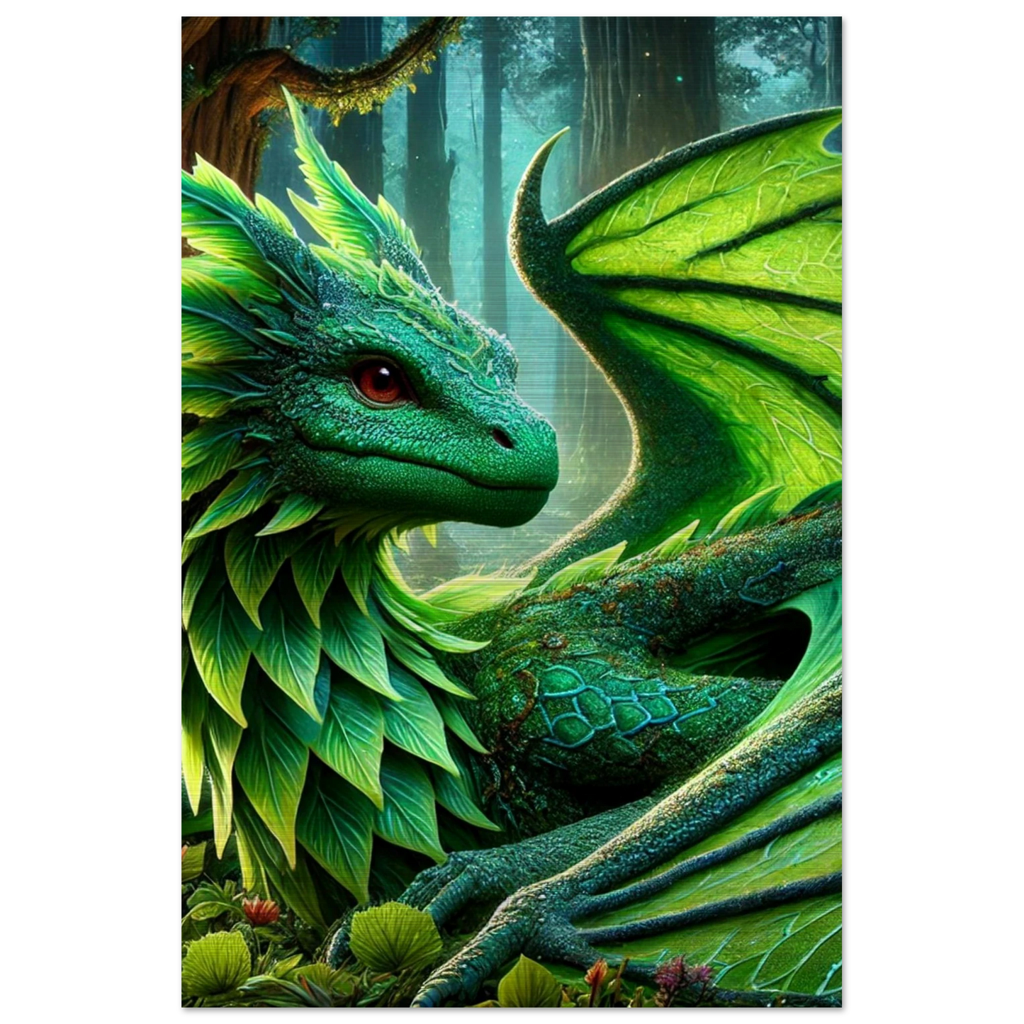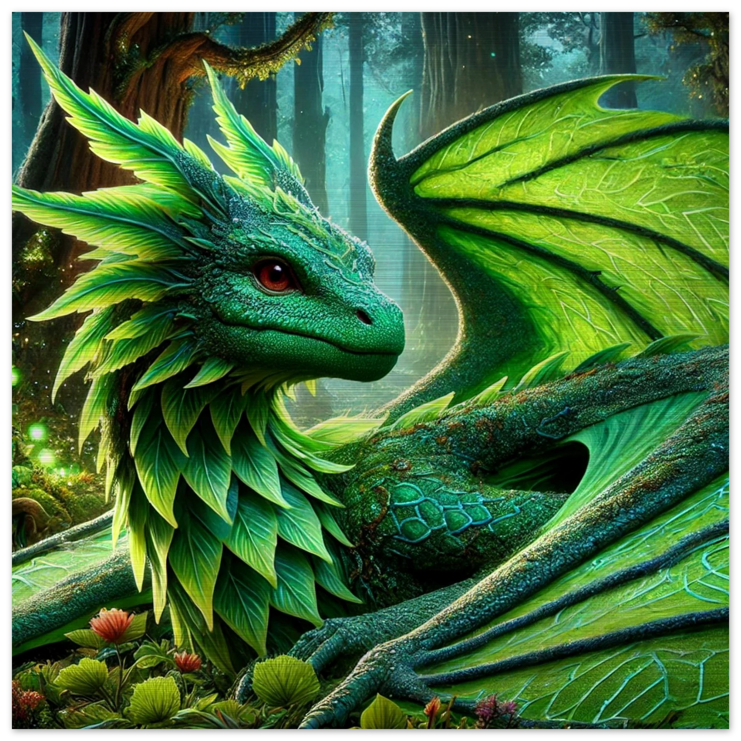 Elandryl, der smaragdgrüne Walddrache, verkörpert die stille Kraft der Natur und das Gleichgewicht des Lebens. Mit seinen schimmernden Schuppen, die an frisches Blattwerk erinnern, bringt er Harmonie und Ruhe in jeden Raum. Seine Präsenz weckt das Gefühl von Frühling – ein Neubeginn voller Stärke und Frieden.
