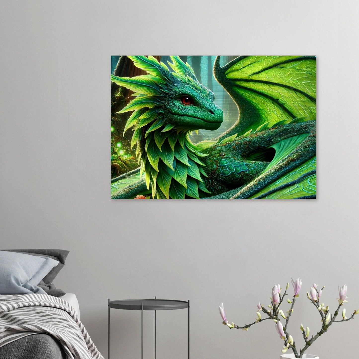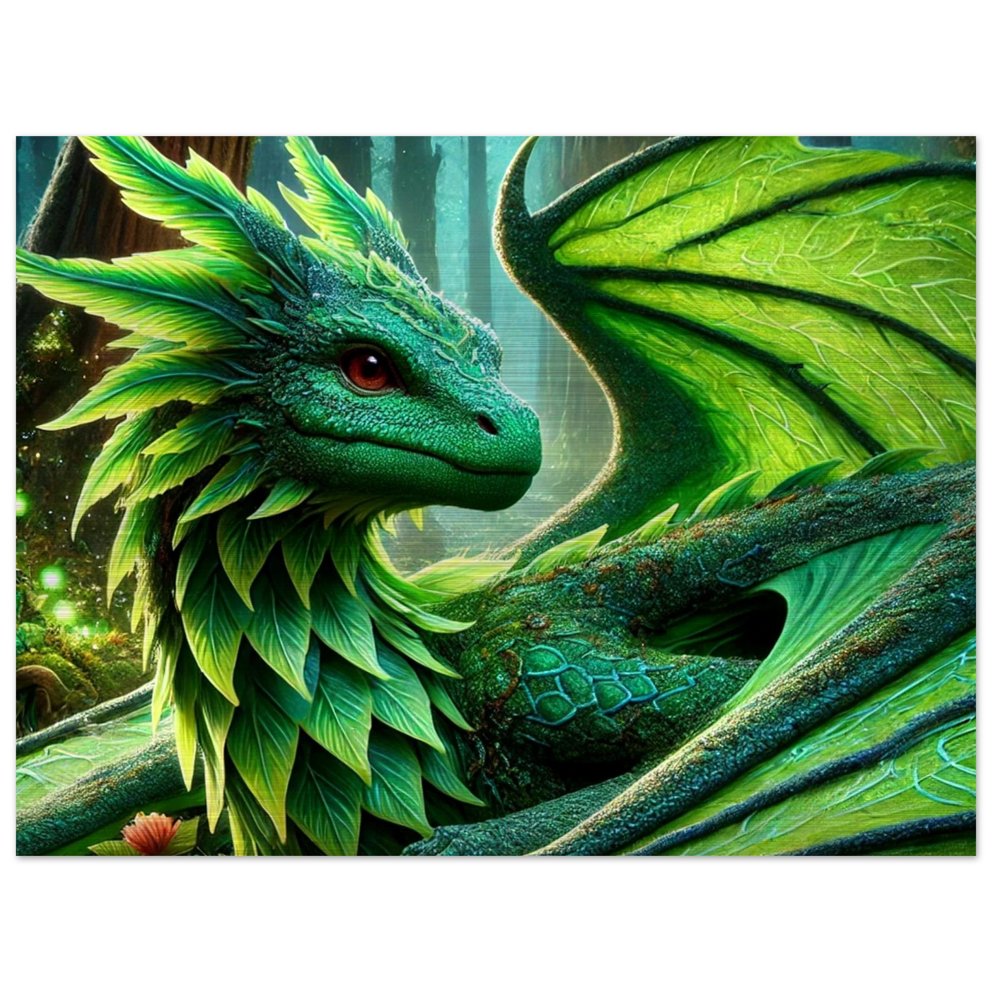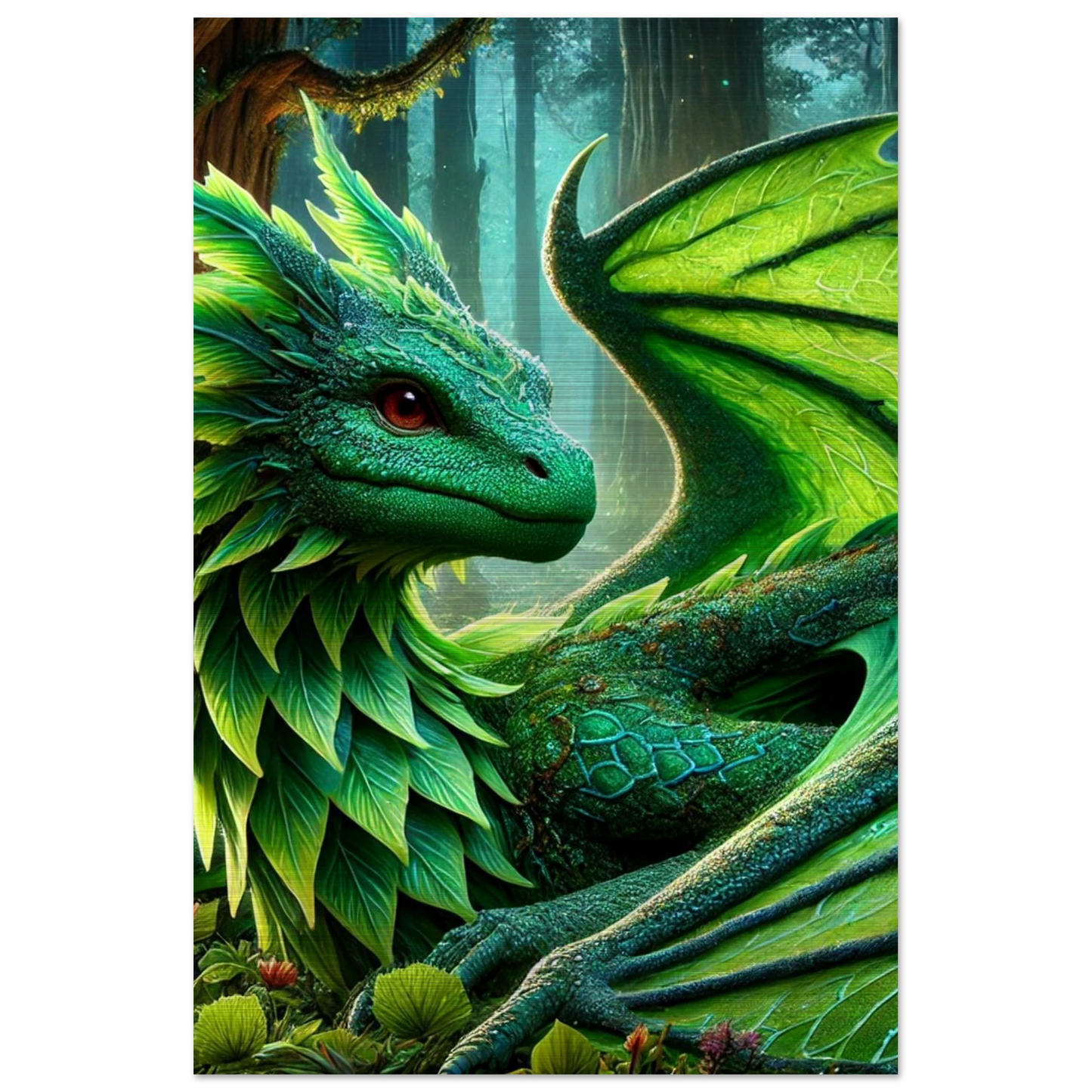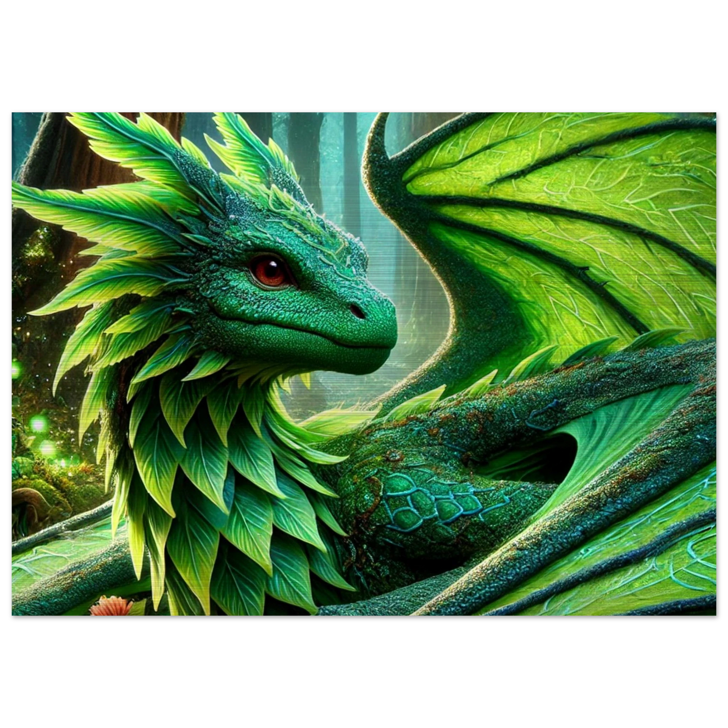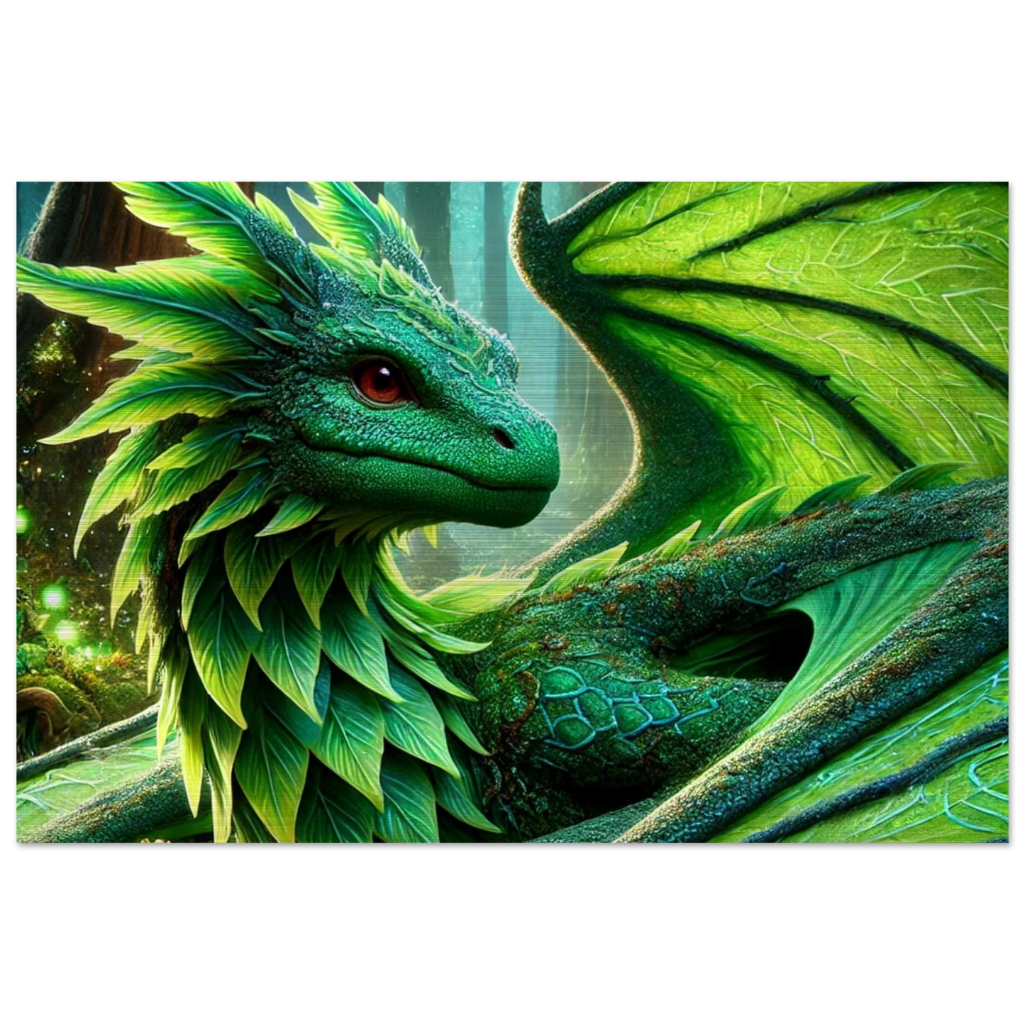 Elandryl, der smaragdgrüne Walddrache, verkörpert die stille Kraft der Natur und das Gleichgewicht des Lebens. Mit seinen schimmernden Schuppen, die an frisches Blattwerk erinnern, bringt er Harmonie und Ruhe in jeden Raum. Seine Präsenz weckt das Gefühl von Frühling – ein Neubeginn voller Stärke und Frieden.