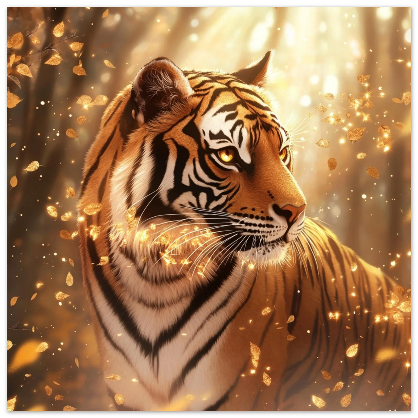 Elyros, der majestätische Tiger des Herbstwaldes, durchstreift goldene Laubmeere und flüstert uralte Geschichten durch die fallenden Blätter. Diese Magie fängt unser Schaumstoffdruck mit einer modernen, leichten Präsentation ein – ideal für Räume, die eine ruhige, elegante Atmosphäre ausstrahlen sollen.