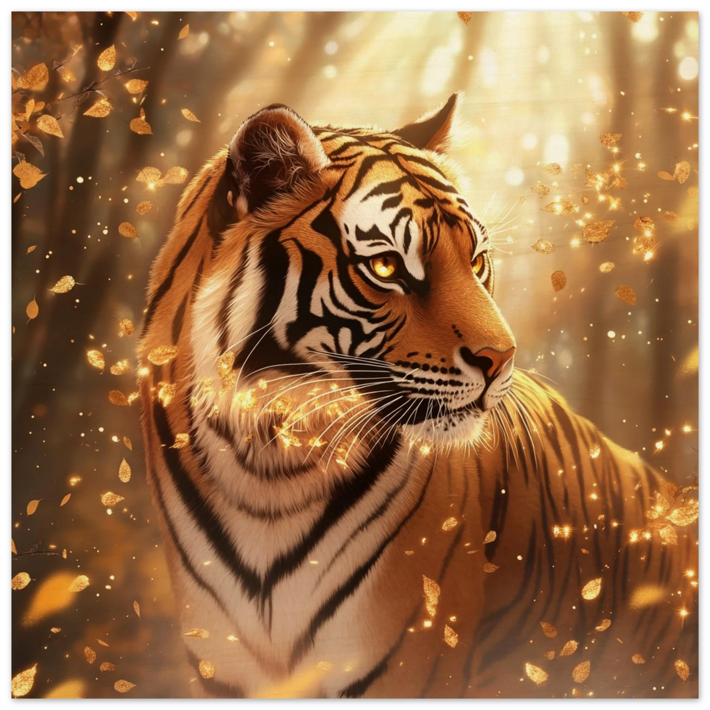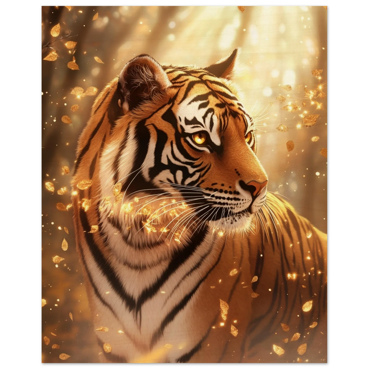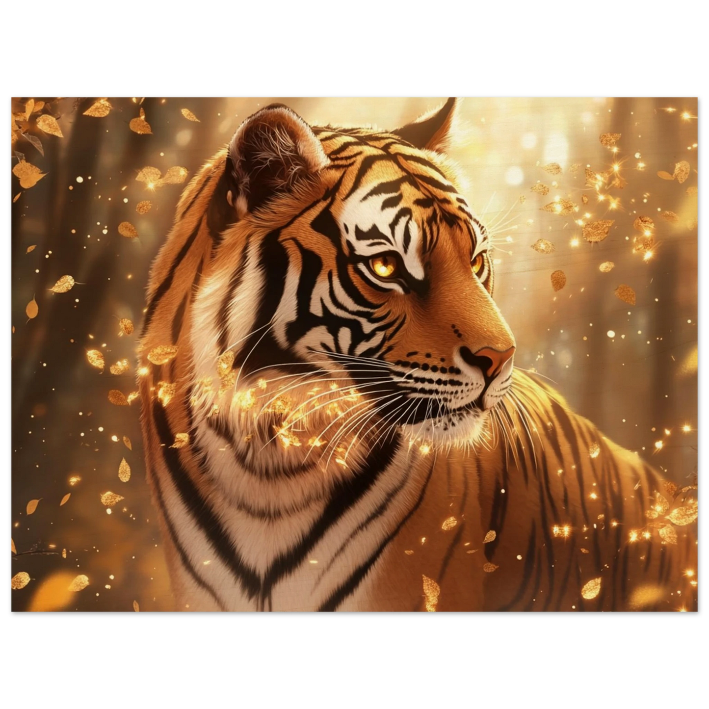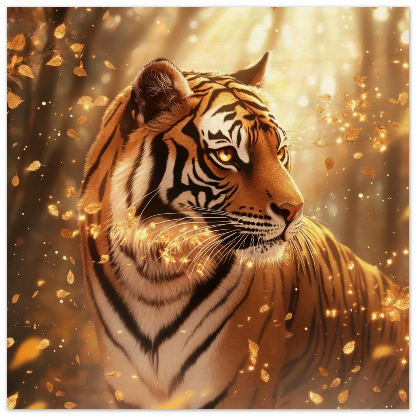 Elyros, der würdevoll durch die goldenen Wälder des ewigen Herbstes schreitet, findet in unseren hochwertigen Holzdrucken seine perfekte Bühne. Die natürliche Holzmaserung ergänzt das warme Farbspiel seines Fells und verstärkt die Ruhe und Weisheit, die von seiner Legende ausgeht.
