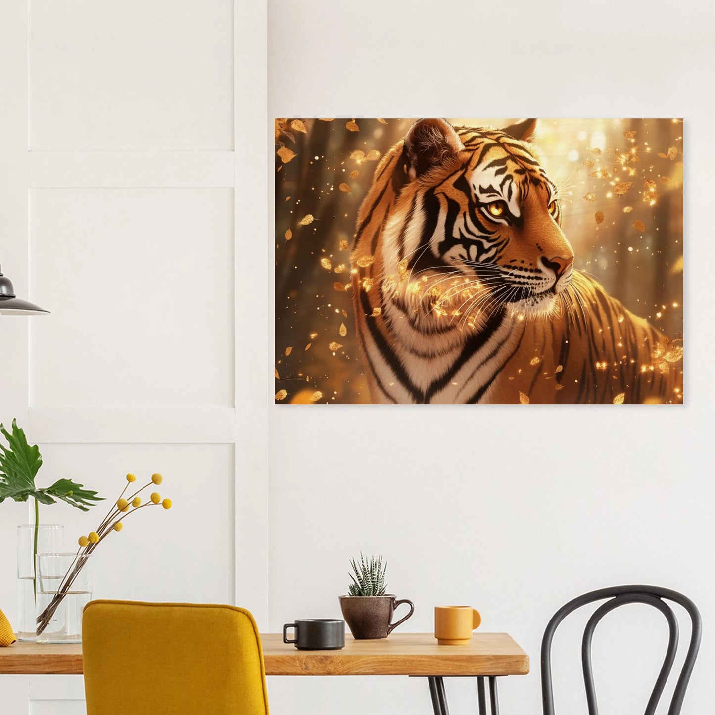 Dieses einzigartige Kunstwerk ist nicht nur eine Hommage an die Magie des Wandels, sondern auch ein Statement für nachhaltige Schönheit in deinem Zuhause. Jeder Druck trägt das Flüstern der Bäume und die stille Kraft eines Hüters, der über den Zyklus des Lebens wacht.
