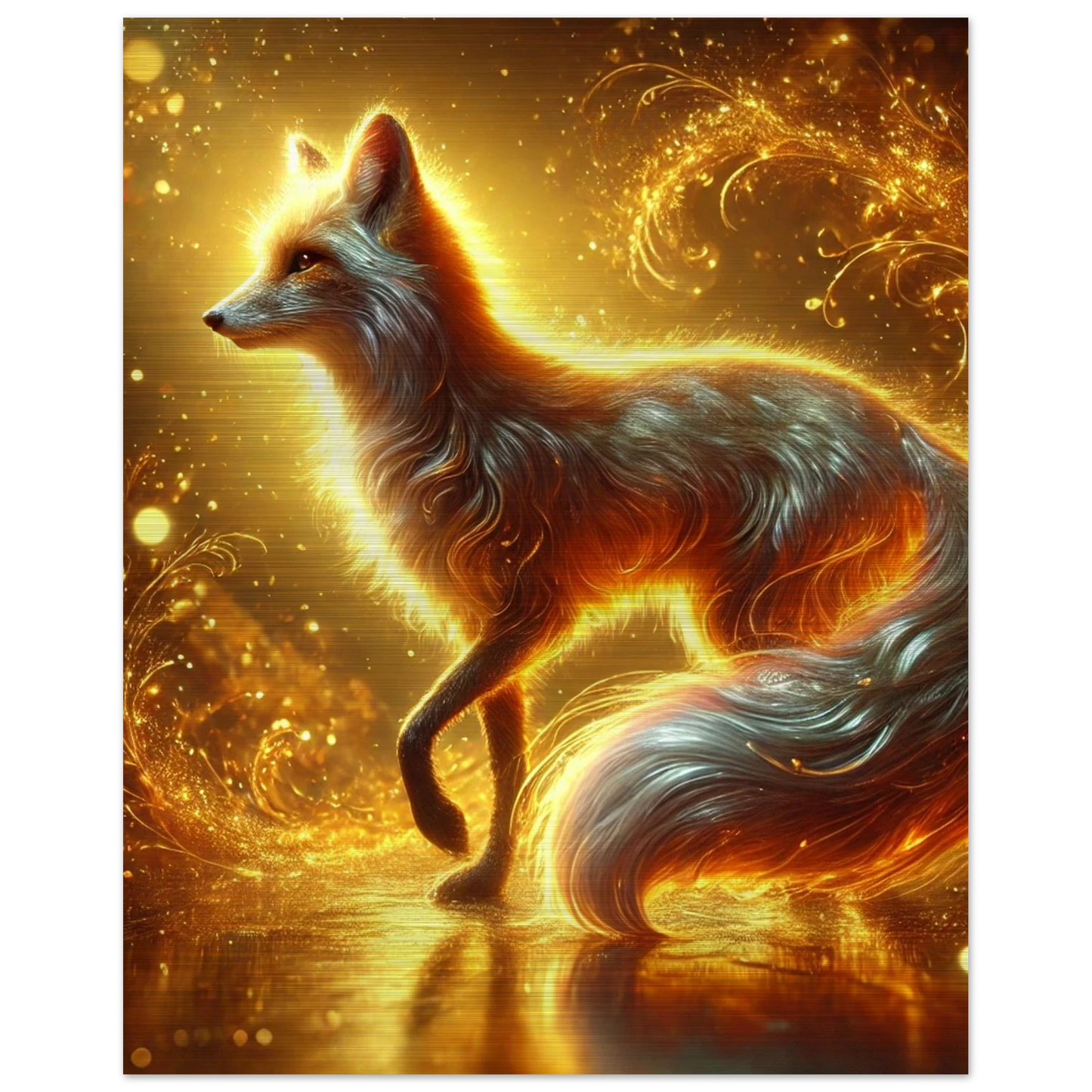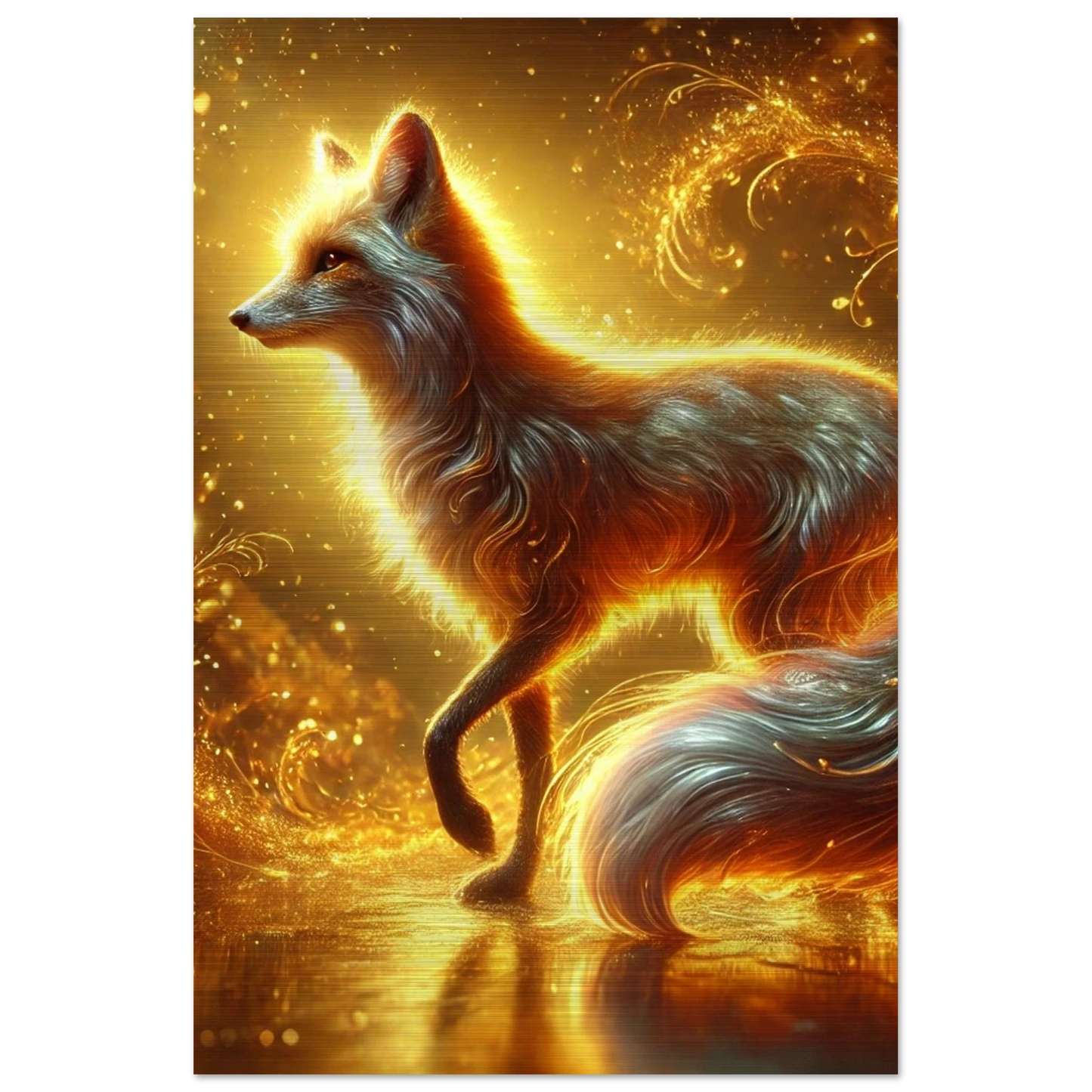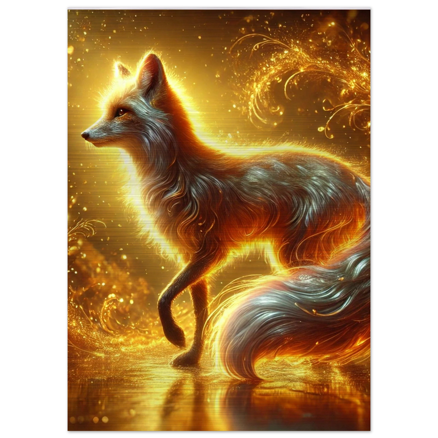 Emberis – Der Flammenfuchs des Abendlichts / Gebürsteter Aluminiumdruck
