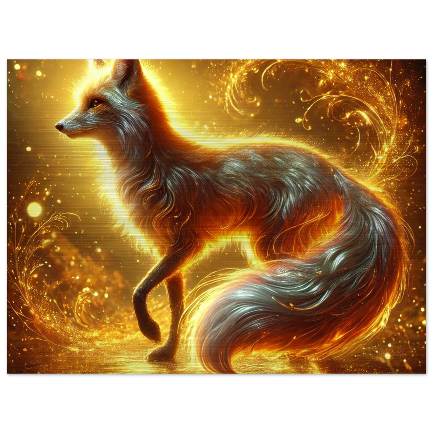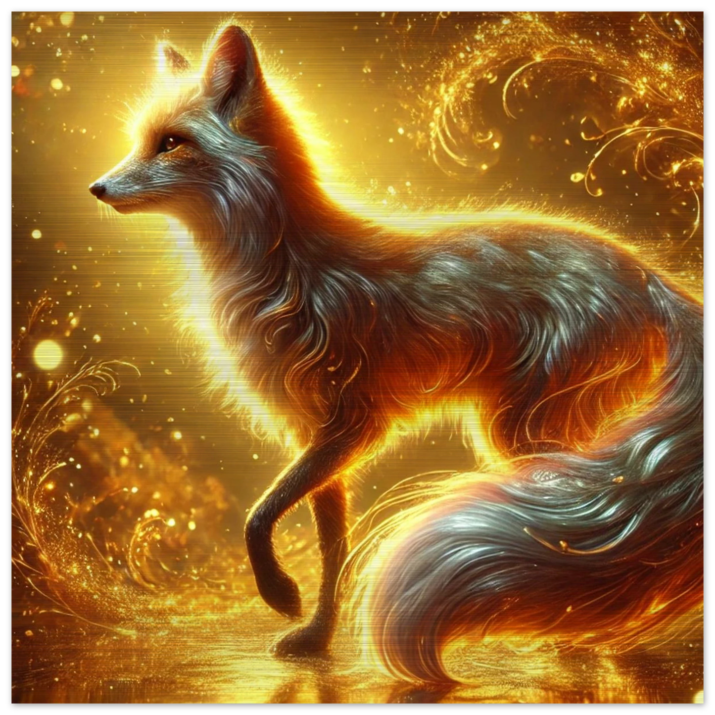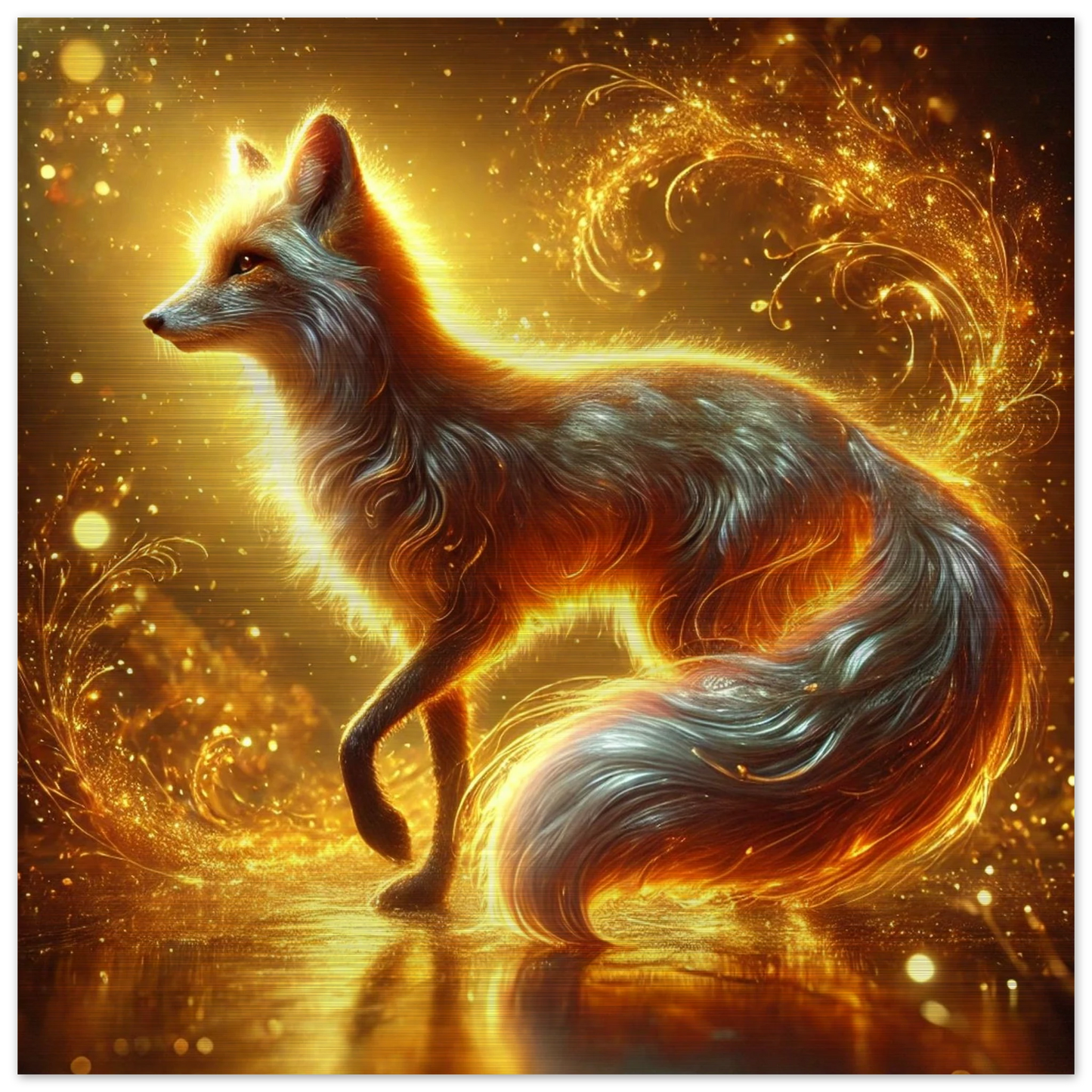 Emberis – Der Flammenfuchs des Abendlichts / Gebürsteter Aluminiumdruck