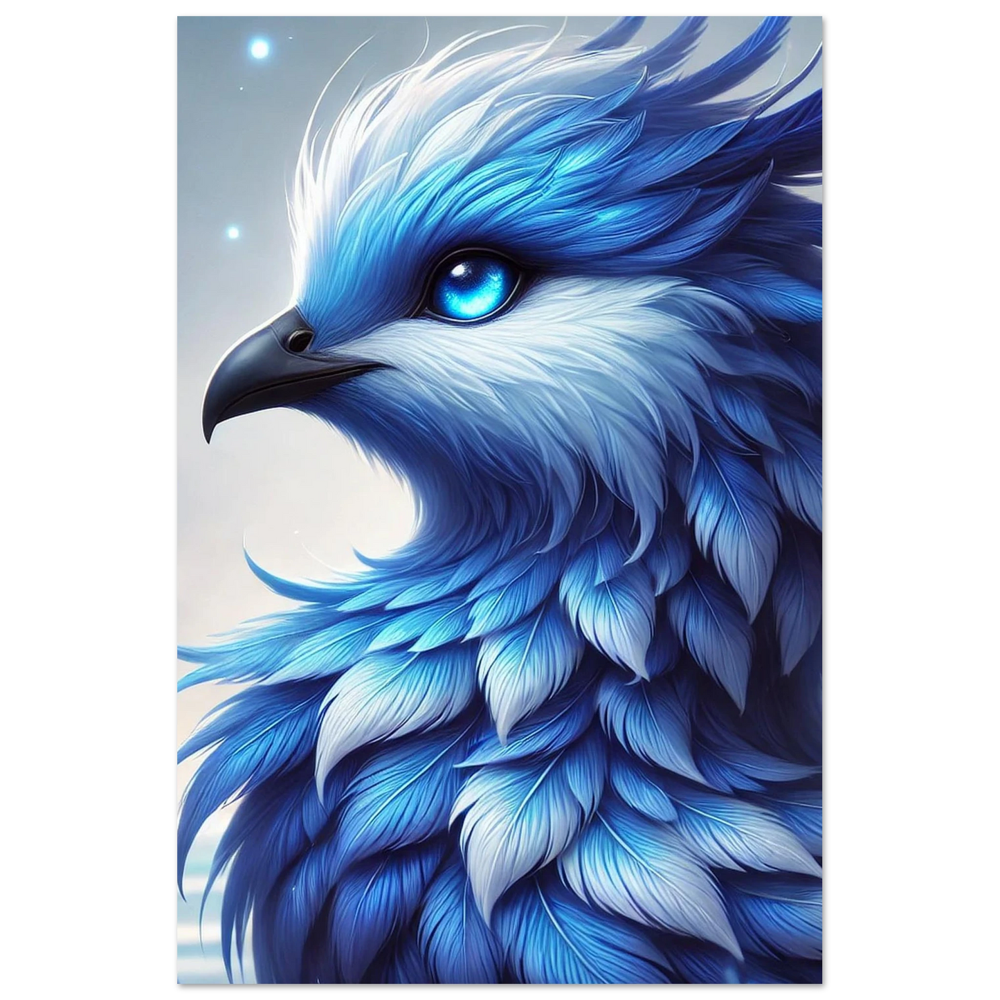 Lass Frostral, den stillen Wächter aus Wind und Eis, in deinen Raum gleiten – als eleganter Schaumstoffdruck mit klarer Linienführung und beeindruckender Farbwirkung. Sein frostig-blaues Federkleid und der ruhige Blick wirken auf der glatten Oberfläche der PVC-Platte besonders intensiv und atmosphärisch.