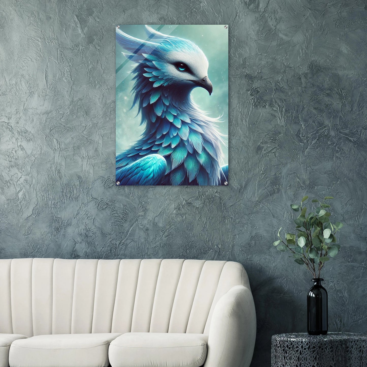 Tauche ein in die stille Magie des Nordens – mit Glacira, dem mythischen Vogel aus gefrorenem Licht, als beeindruckendem Acrylglasdruck. Das hochtransparente Material verleiht ihrer eisblauen Erscheinung Tiefe und Brillanz, sodass jede Feder und jeder Lichtreflex lebendig wird. Die glatte Oberfläche sorgt für einen modernen, edlen Look, der perfekt zu Glaciras ruhiger Ausstrahlung passt.