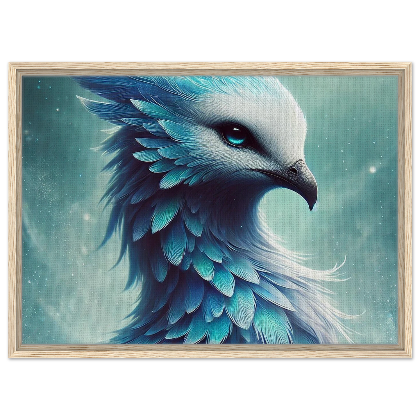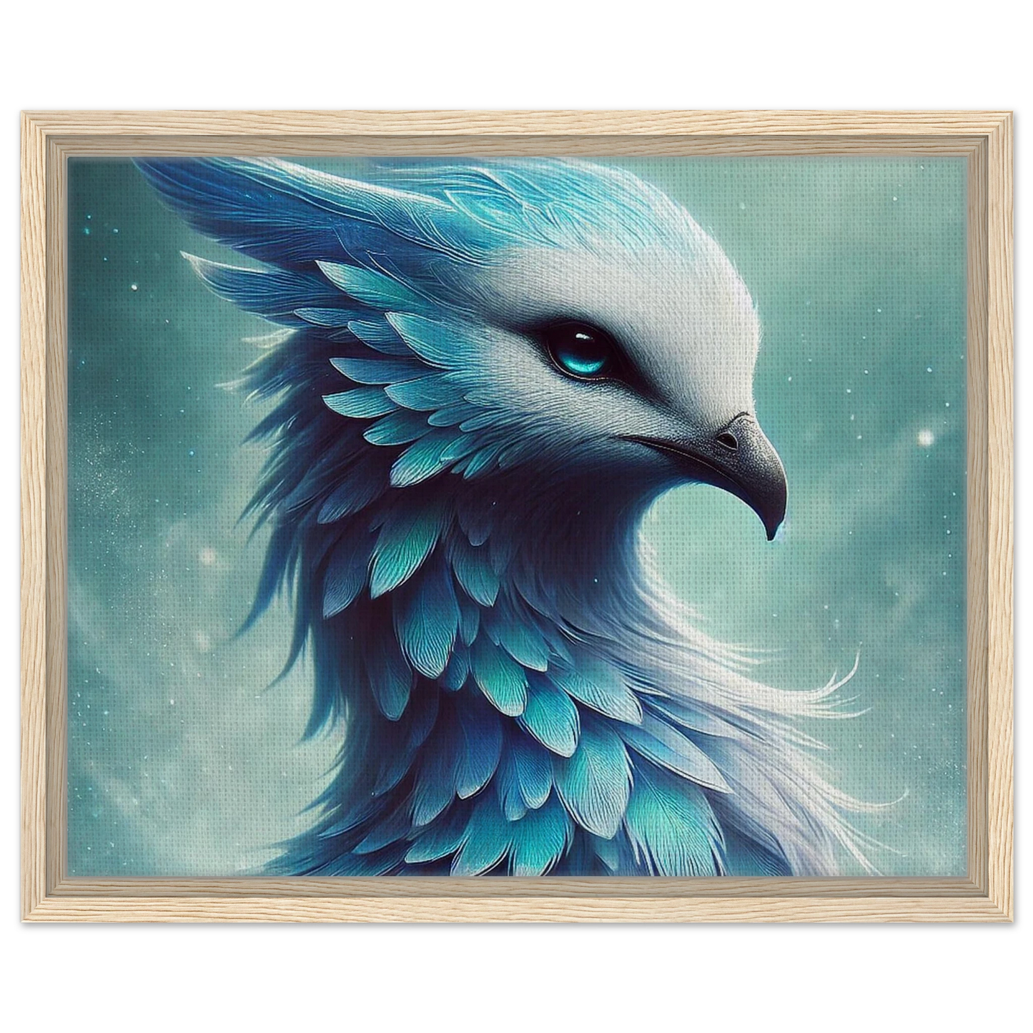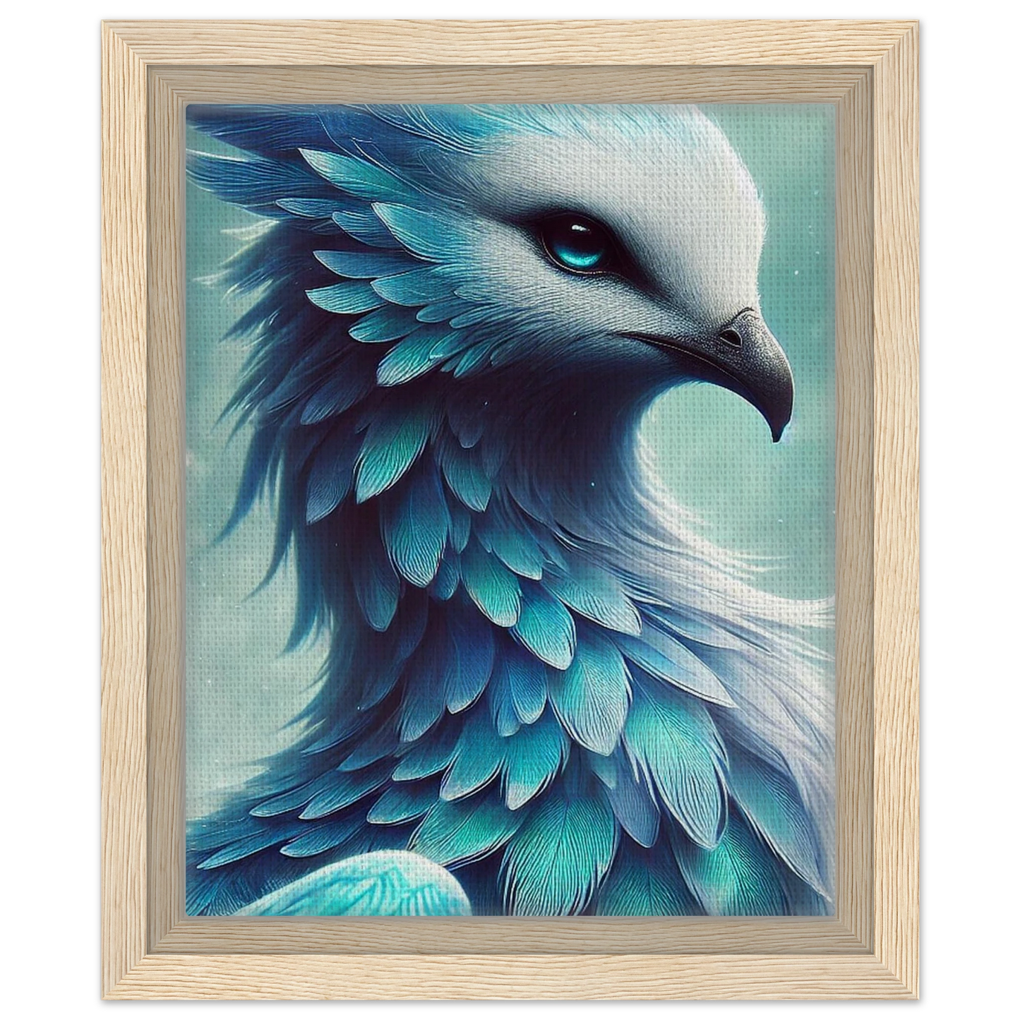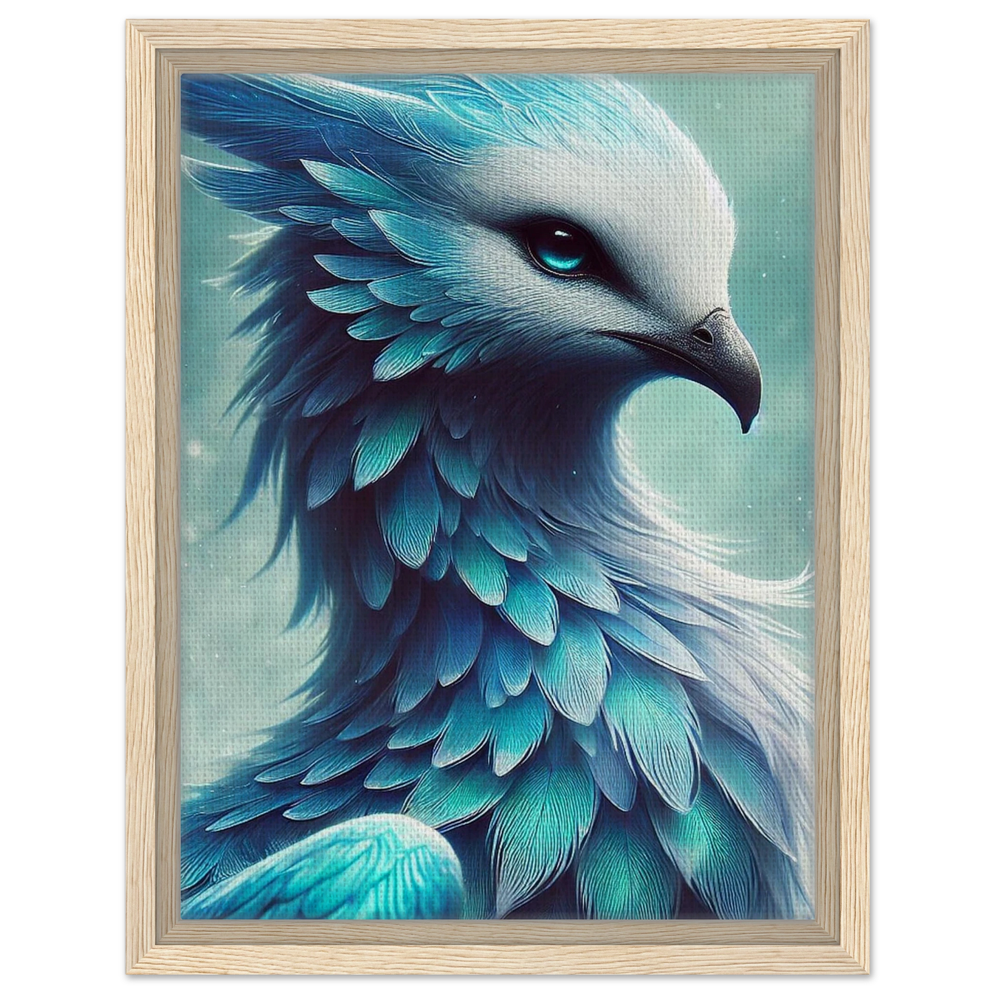 Lass Glacira, die mystische Stimme des Nordens, mit ihrer frostigen Anmut und klaren Ausstrahlung deine Räume bereichern – als eleganter, gerahmter Leinwanddruck. Die strukturierte Leinwandoberfläche bringt jede Nuance ihres lichtgefrorenen Gefieders zur Geltung, während der stilvolle Holzrahmen in Schwarz, Natur oder Dunkelbraun dem Werk eine ruhige Tiefe verleiht.