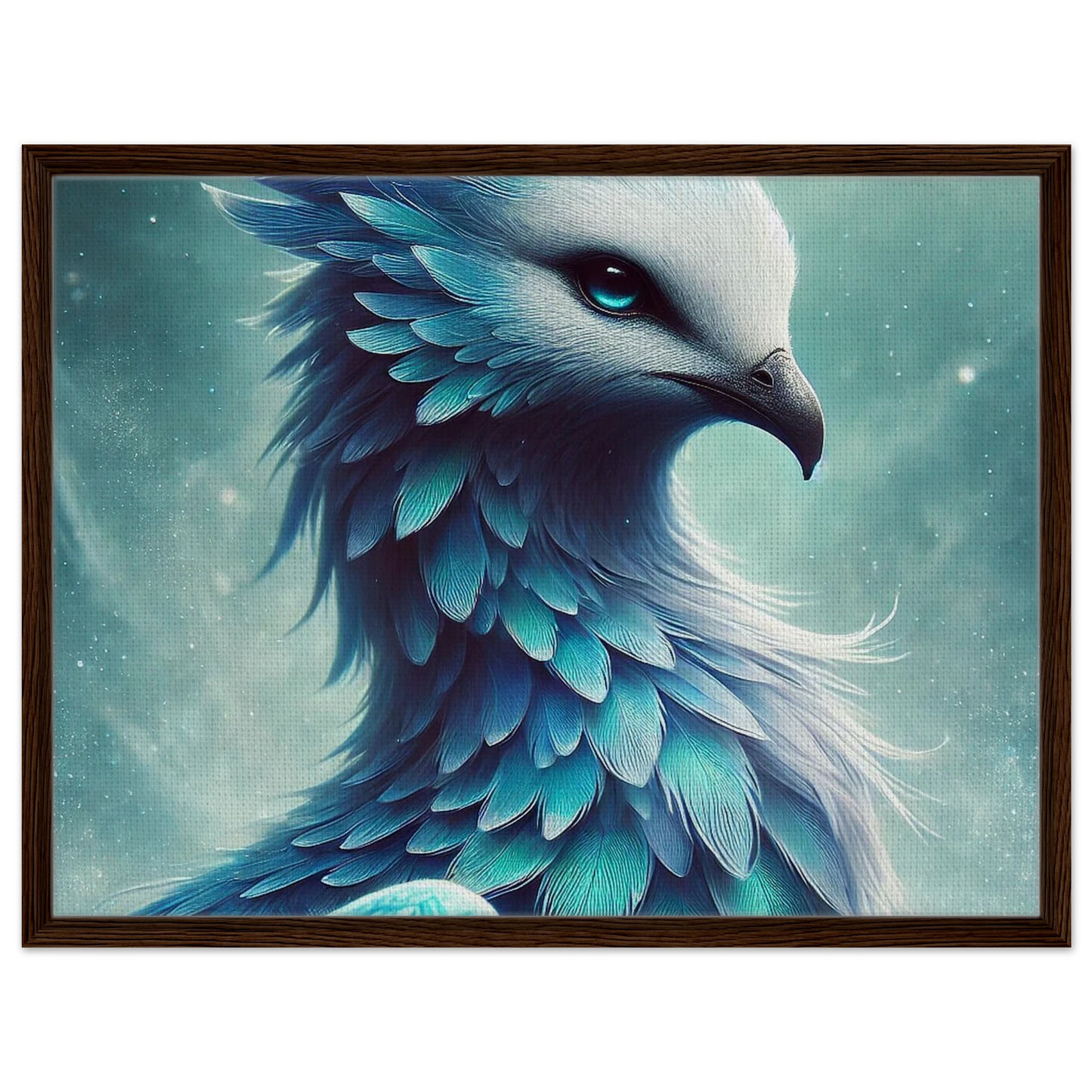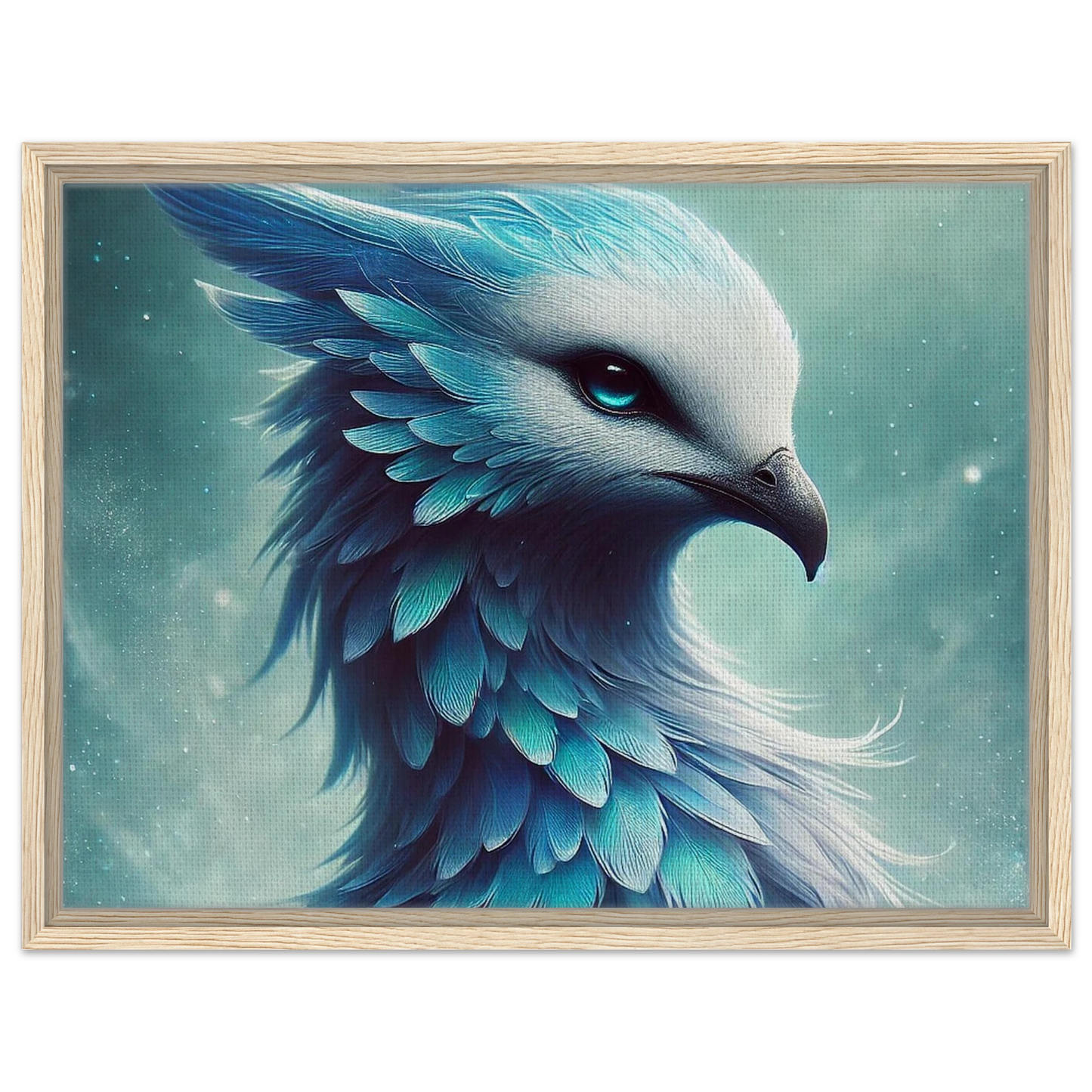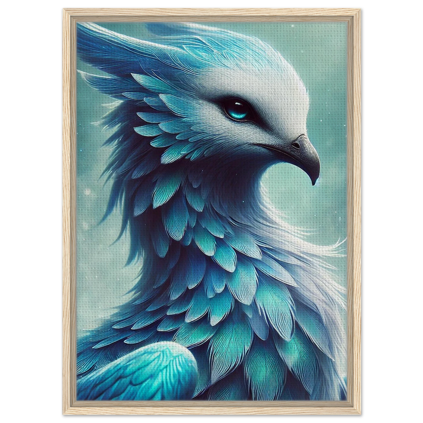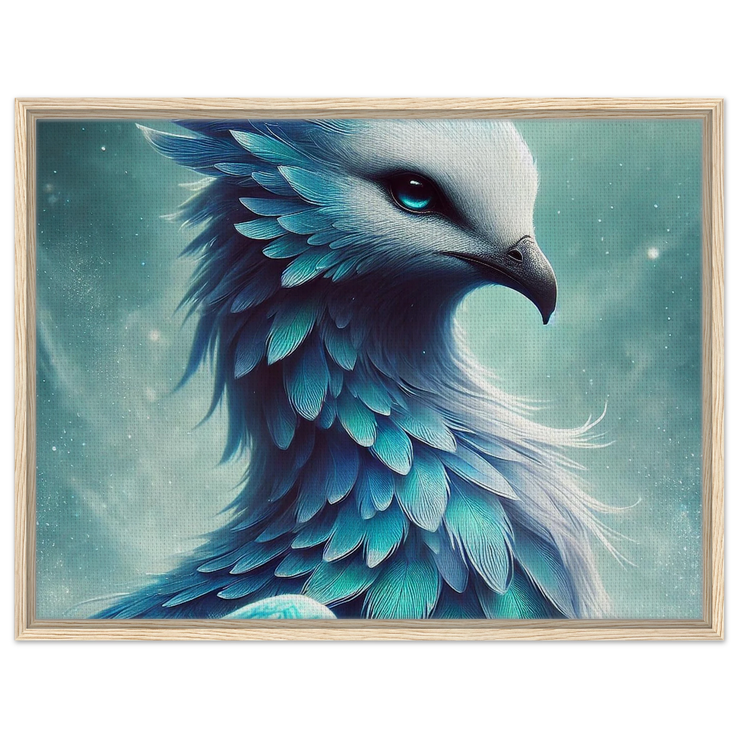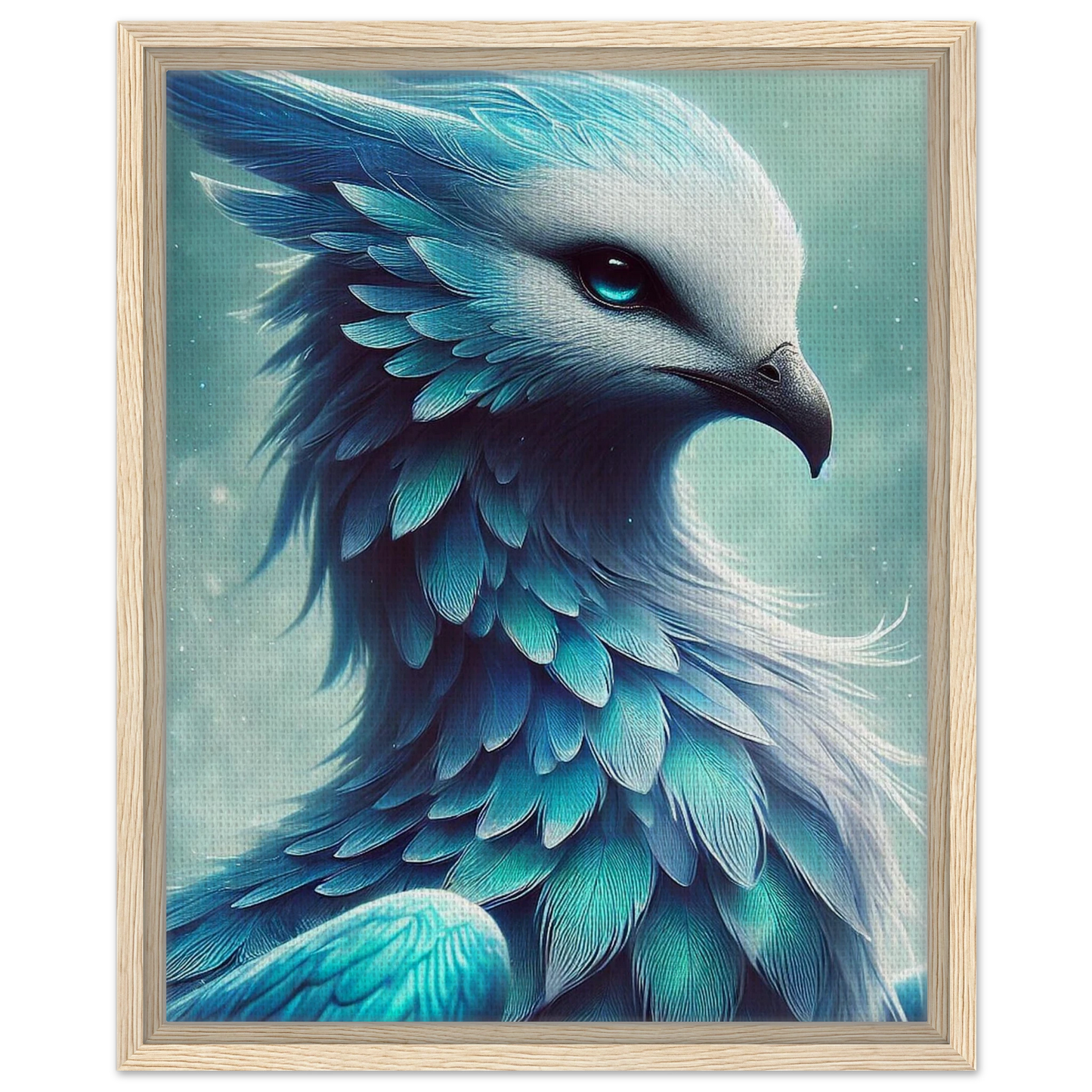 Lass Glacira, die mystische Stimme des Nordens, mit ihrer frostigen Anmut und klaren Ausstrahlung deine Räume bereichern – als eleganter, gerahmter Leinwanddruck. Die strukturierte Leinwandoberfläche bringt jede Nuance ihres lichtgefrorenen Gefieders zur Geltung, während der stilvolle Holzrahmen in Schwarz, Natur oder Dunkelbraun dem Werk eine ruhige Tiefe verleiht.