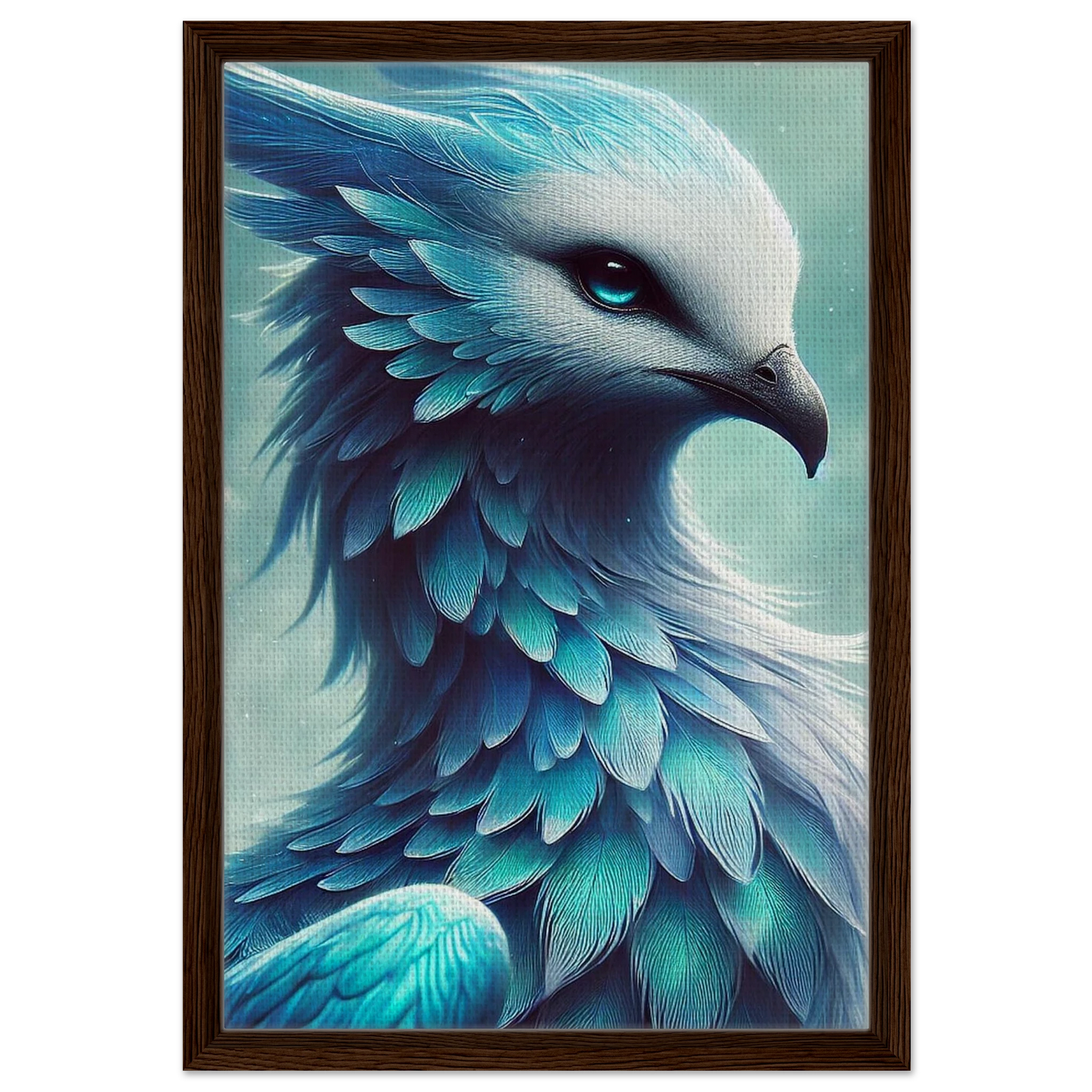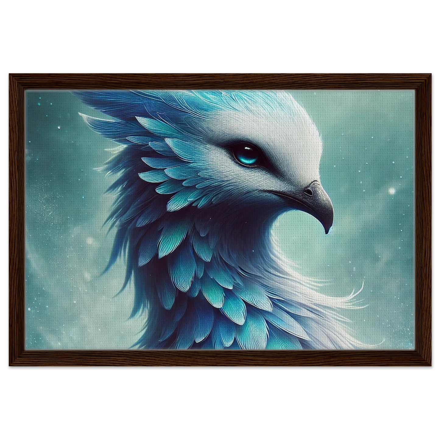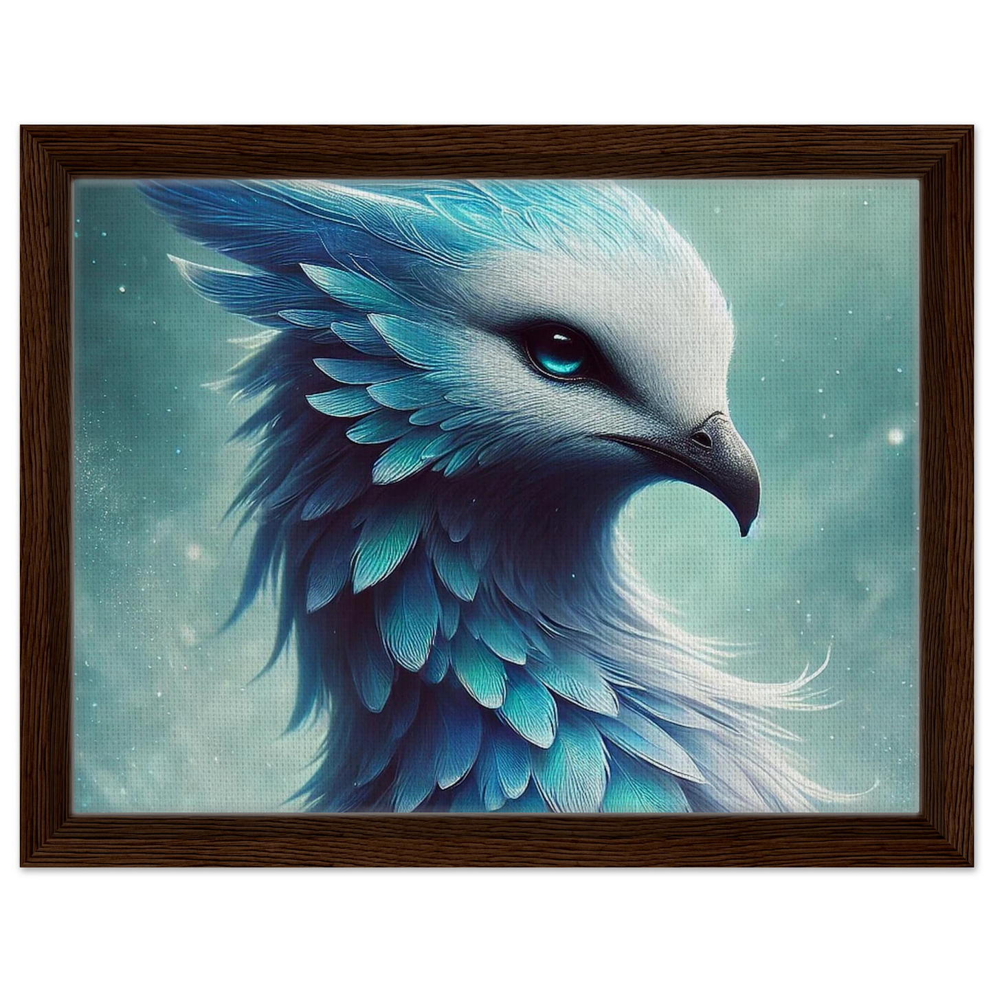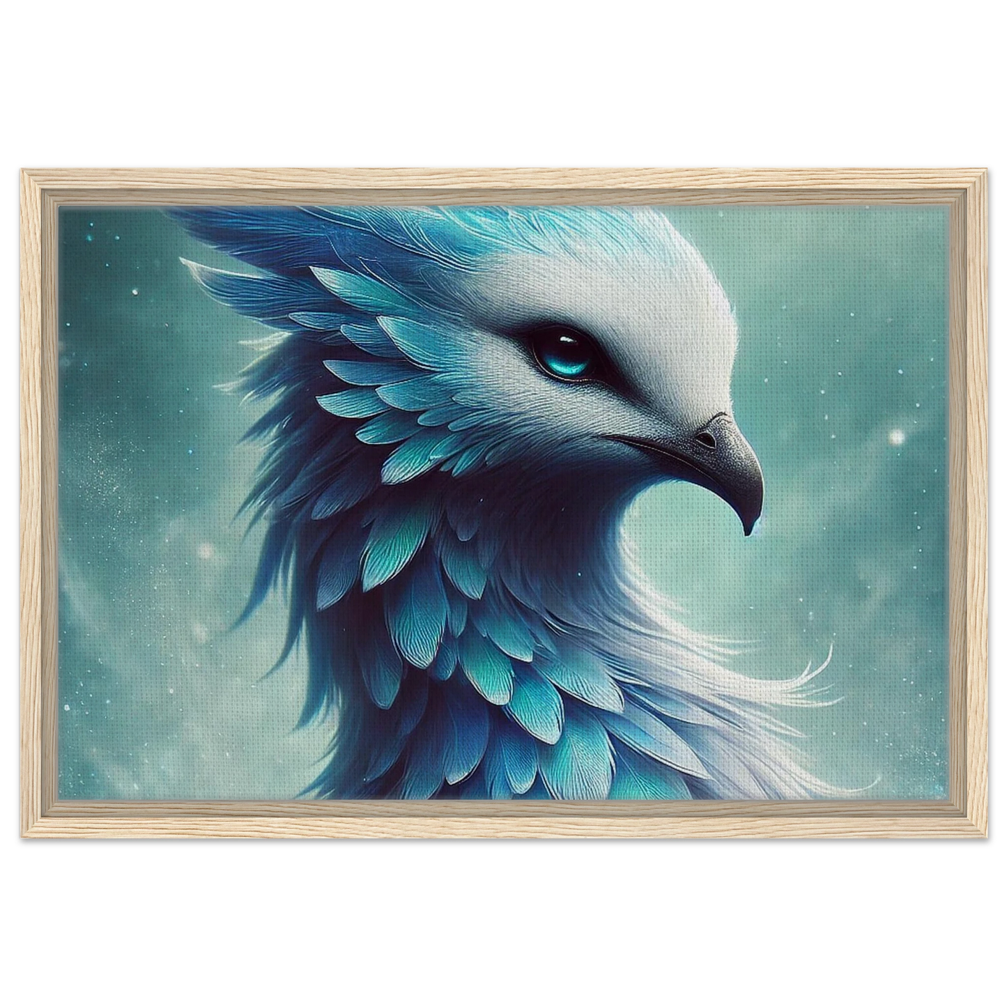 Lass Glacira, die mystische Stimme des Nordens, mit ihrer frostigen Anmut und klaren Ausstrahlung deine Räume bereichern – als eleganter, gerahmter Leinwanddruck. Die strukturierte Leinwandoberfläche bringt jede Nuance ihres lichtgefrorenen Gefieders zur Geltung, während der stilvolle Holzrahmen in Schwarz, Natur oder Dunkelbraun dem Werk eine ruhige Tiefe verleiht.