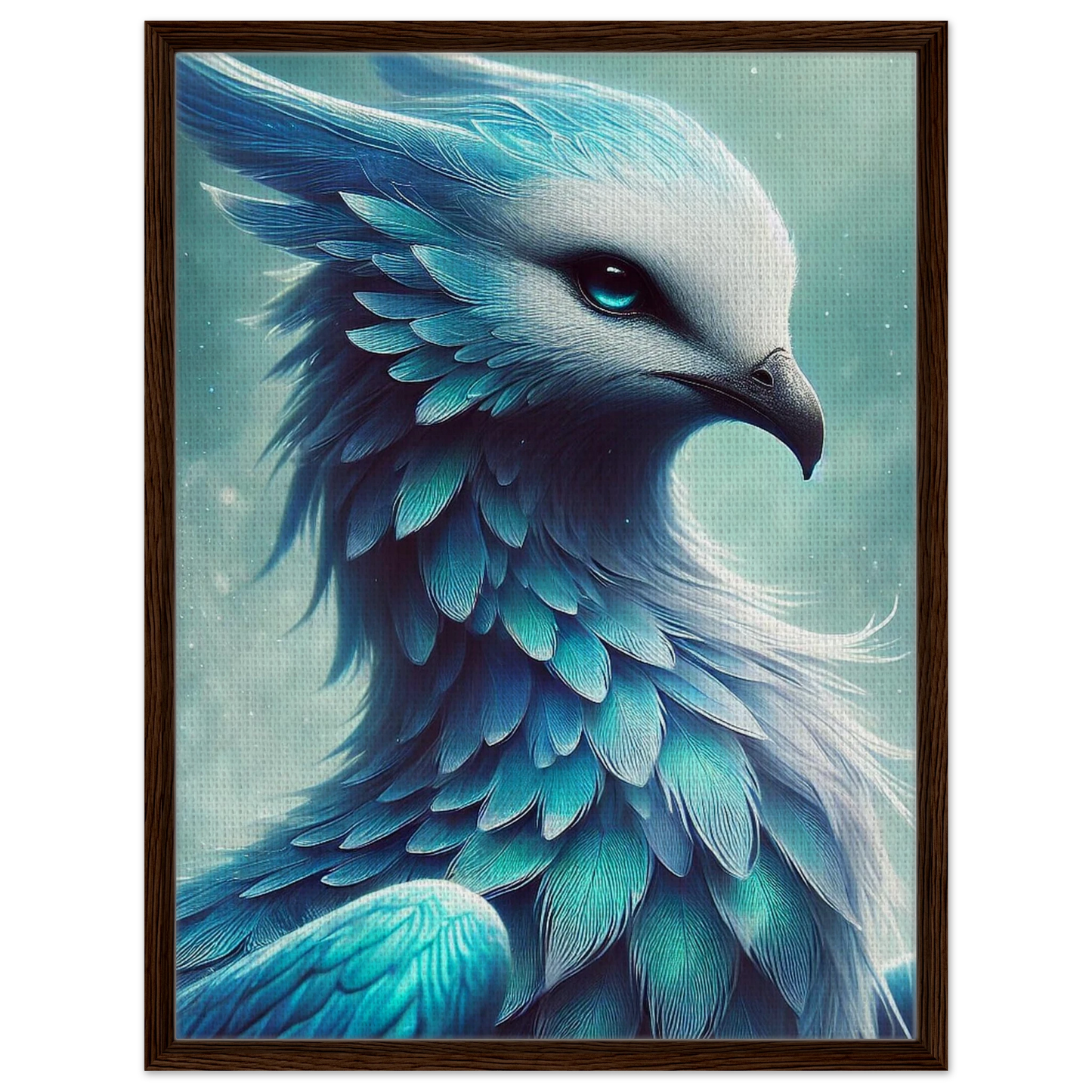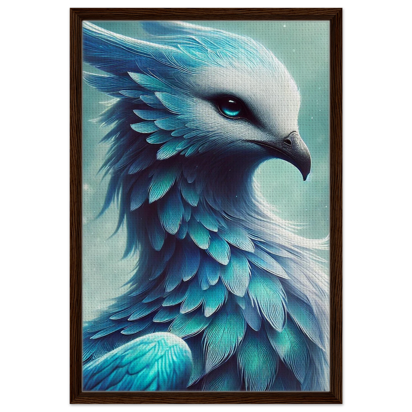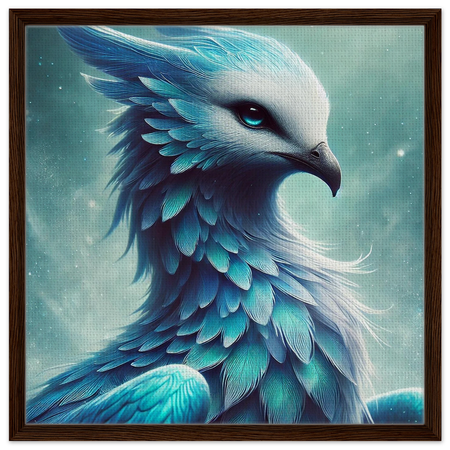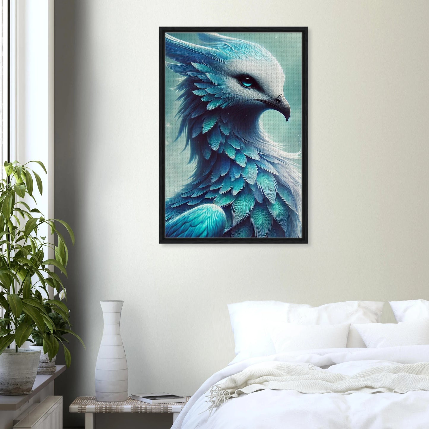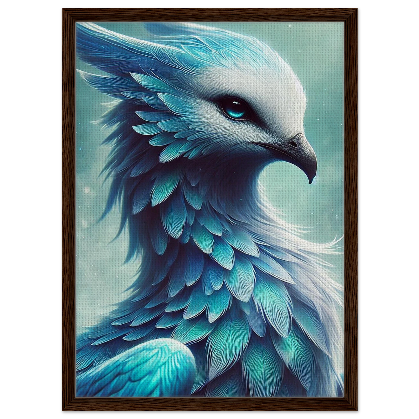 Lass Glacira, die mystische Stimme des Nordens, mit ihrer frostigen Anmut und klaren Ausstrahlung deine Räume bereichern – als eleganter, gerahmter Leinwanddruck. Die strukturierte Leinwandoberfläche bringt jede Nuance ihres lichtgefrorenen Gefieders zur Geltung, während der stilvolle Holzrahmen in Schwarz, Natur oder Dunkelbraun dem Werk eine ruhige Tiefe verleiht.