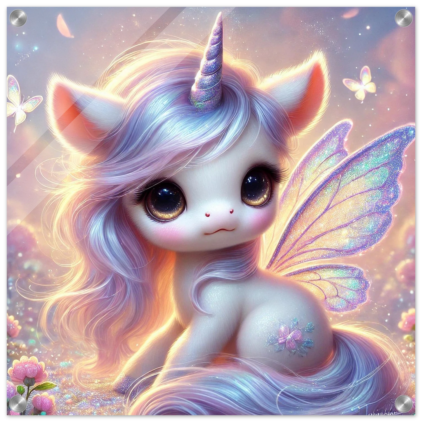 Glitzerflöckchen – Das Feen-Einhorn der Frühlingswiese / Acryldruck