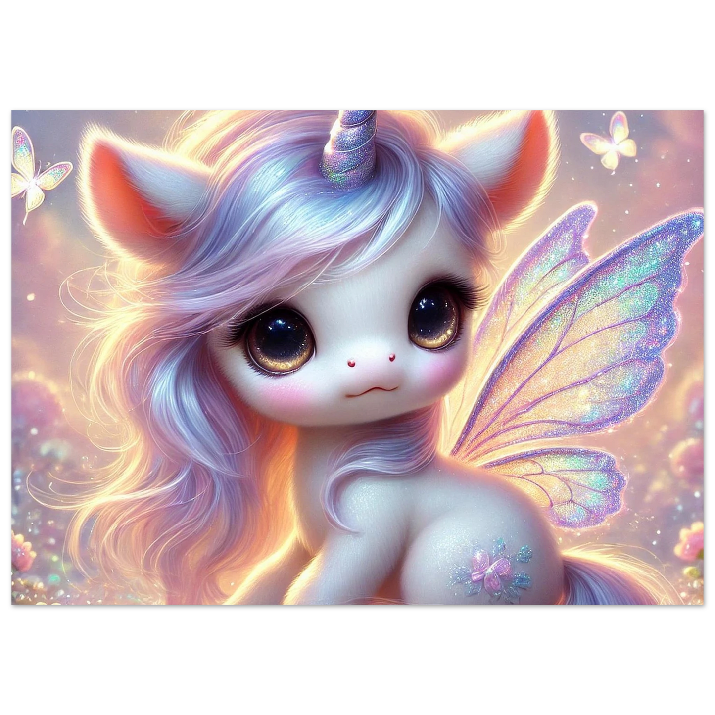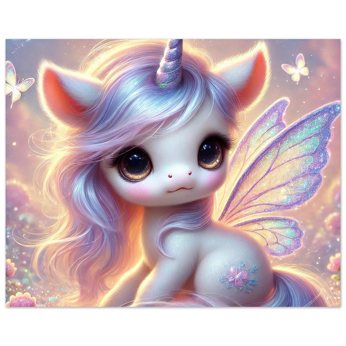 Glitzerflöckchen ist ein magisches Feen-Einhorn, das auf einer Frühlingswiese zwischen Schmetterlingen und Blüten tanzt. Geboren aus einem Kristalltropfen bei Sonnenaufgang, bringt es Licht, Hoffnung und Glitzer in jede Fantasiewelt. Sein sanfter Blick und der funkelnde Schweif machen es zu einem Symbol für Freude und Leichtigkeit.