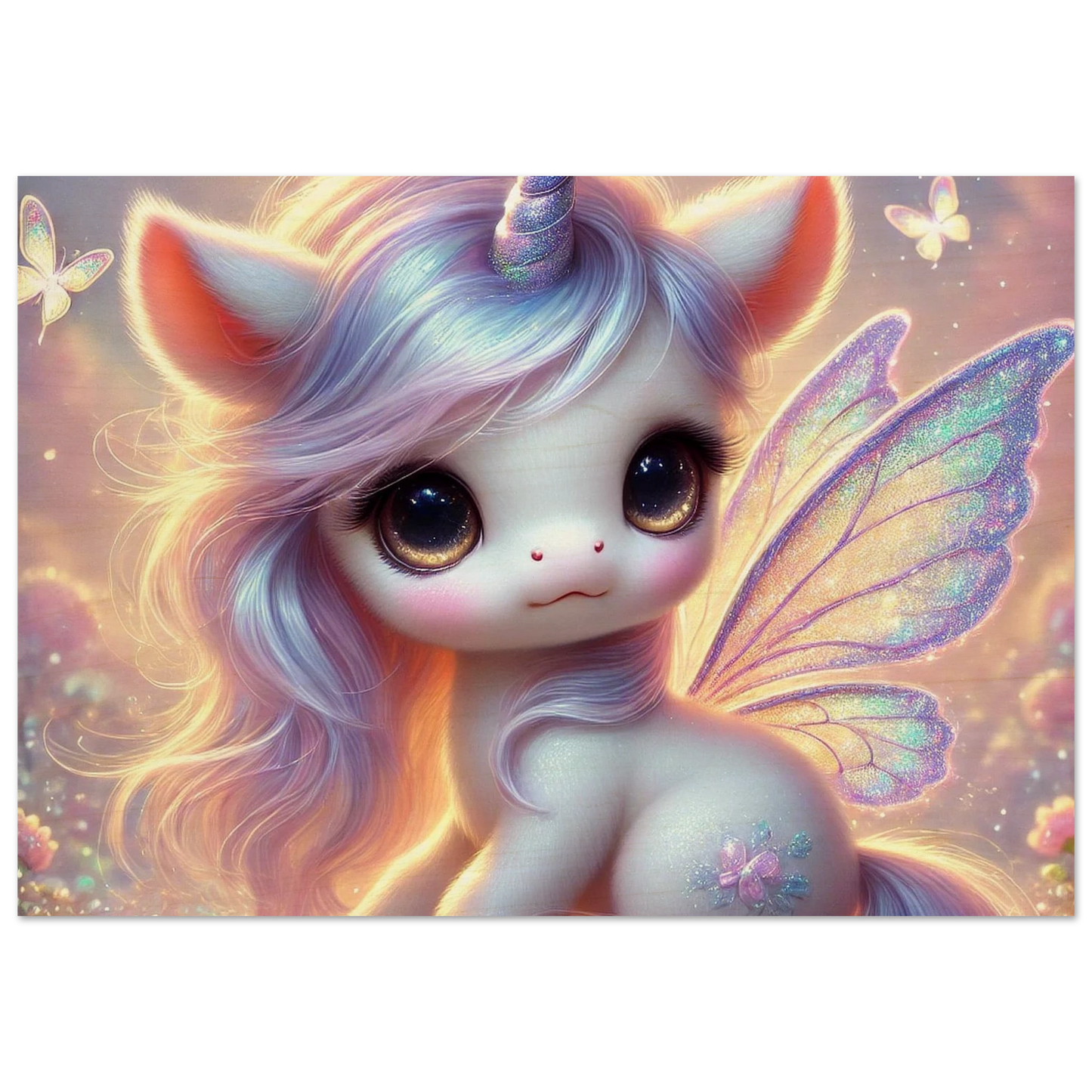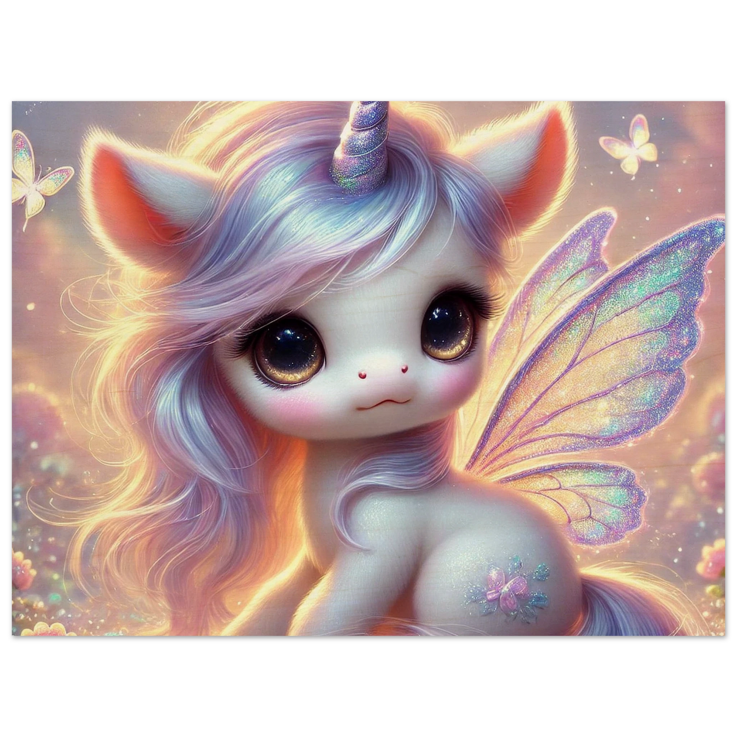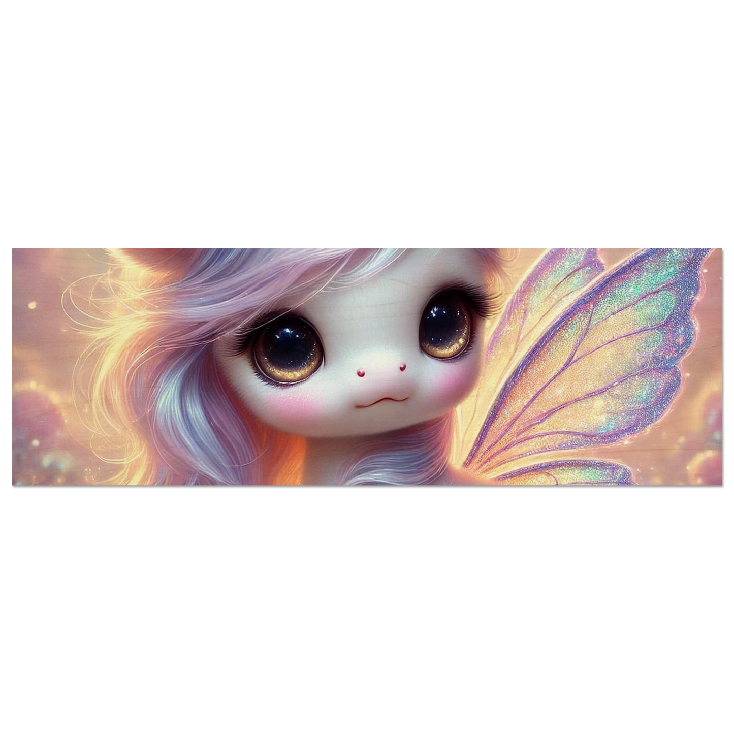 Mit diesem hochwertigen Holzdruck bringst du Glitzerflöckchens zauberhafte Welt und die natürliche Schönheit von Holz in dein Zuhause. Perfekt für Kinderzimmer, kreative Oasen und alle, die Magie lieben.