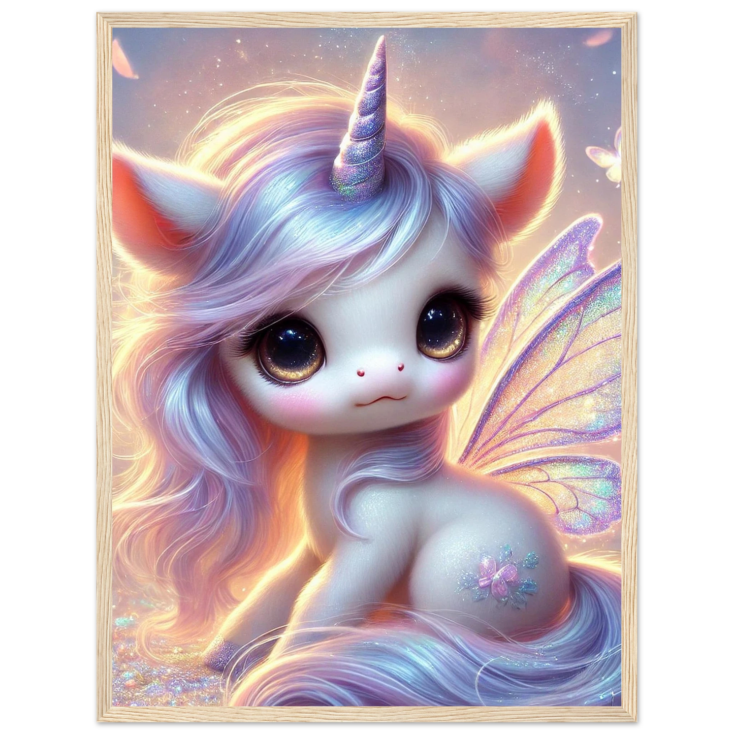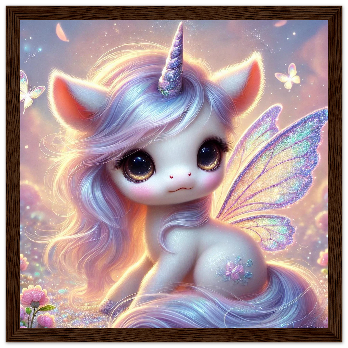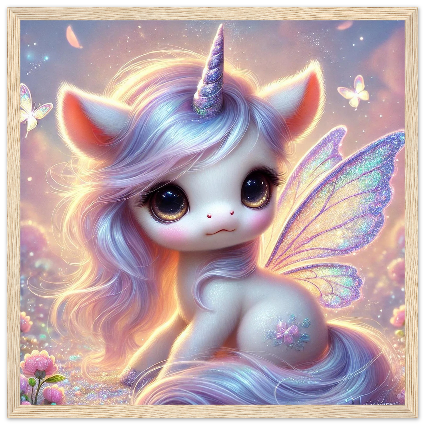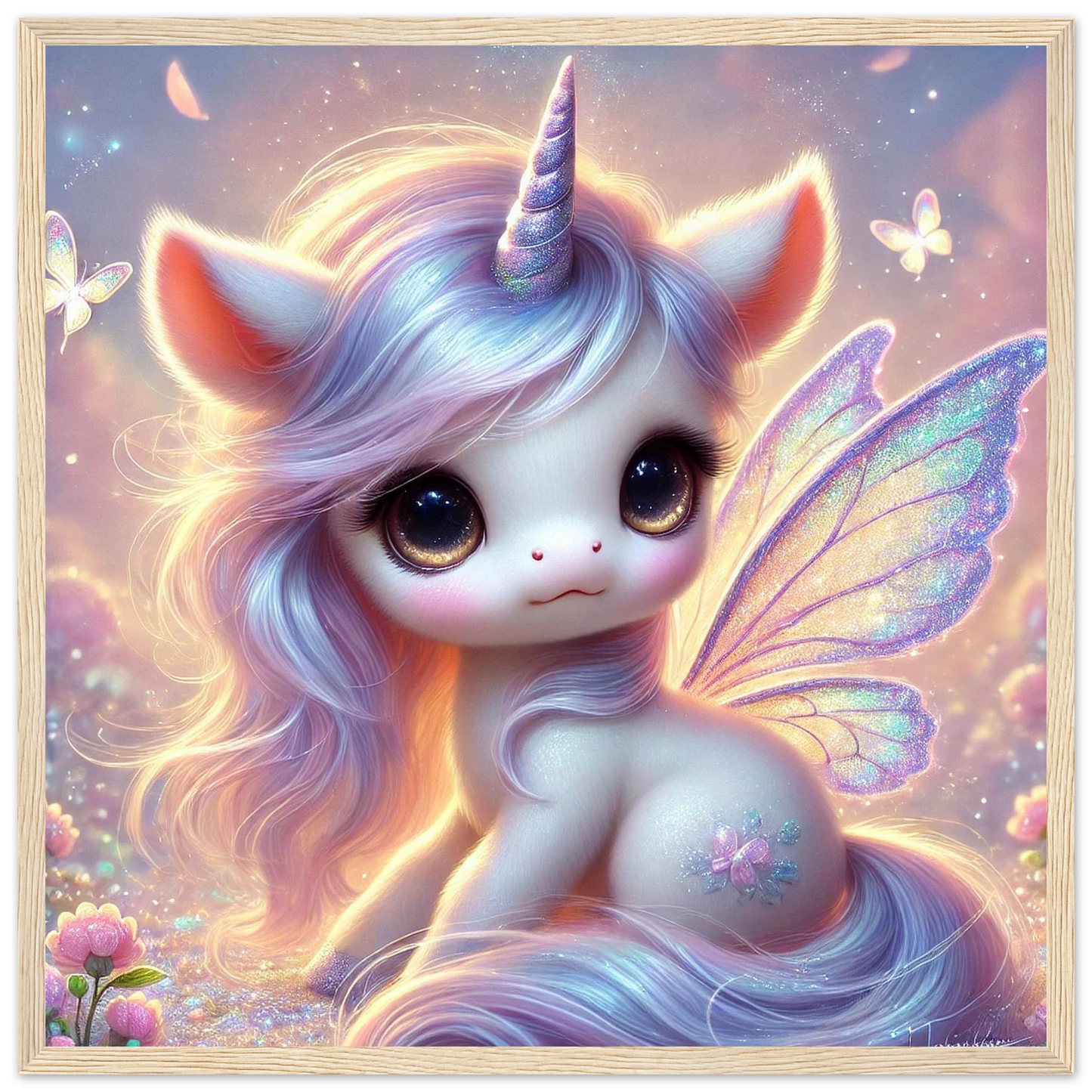 Lass Glitzerflöckchen – das magische Feen-Einhorn der Frühlingswiese – in deinem Zuhause einziehen. Als hochwertiger, holzgerahmter Kunstdruck wird dieses zauberhafte Wesen zum strahlenden Mittelpunkt jedes Raumes.