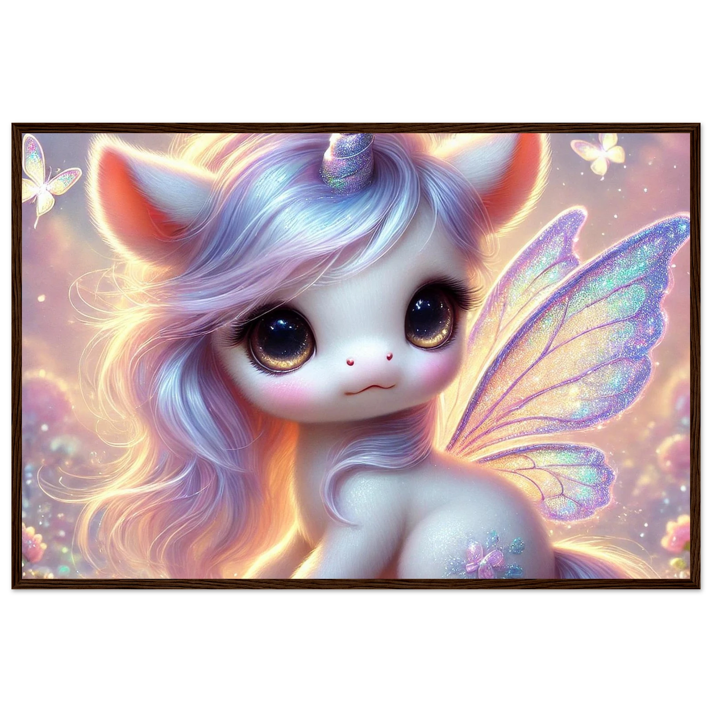 Glitzerflöckchen – Das Feen-Einhorn der Frühlingswiese / Kunstdrucke im Holzrahmen in hell- und dunkelbraun