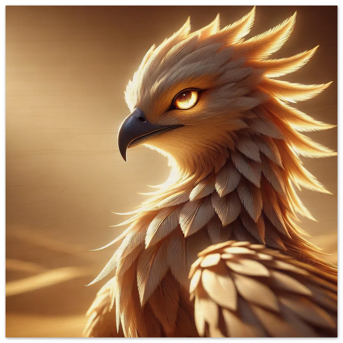 Helior ist der mythische Sonnenvogel, geboren aus dem ersten Sonnenstrahl, der je die Wüste berührte. Mit leuchtendem Gefieder und wachsamem Blick fliegt er über die goldenen Dünen, begleitet Suchende und vertreibt die Schatten der Zweifel. Seine stille Botschaft: Folge deinem inneren Licht, egal wie heiß der Sturm.