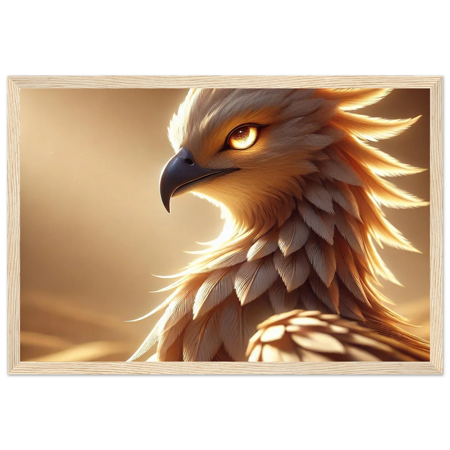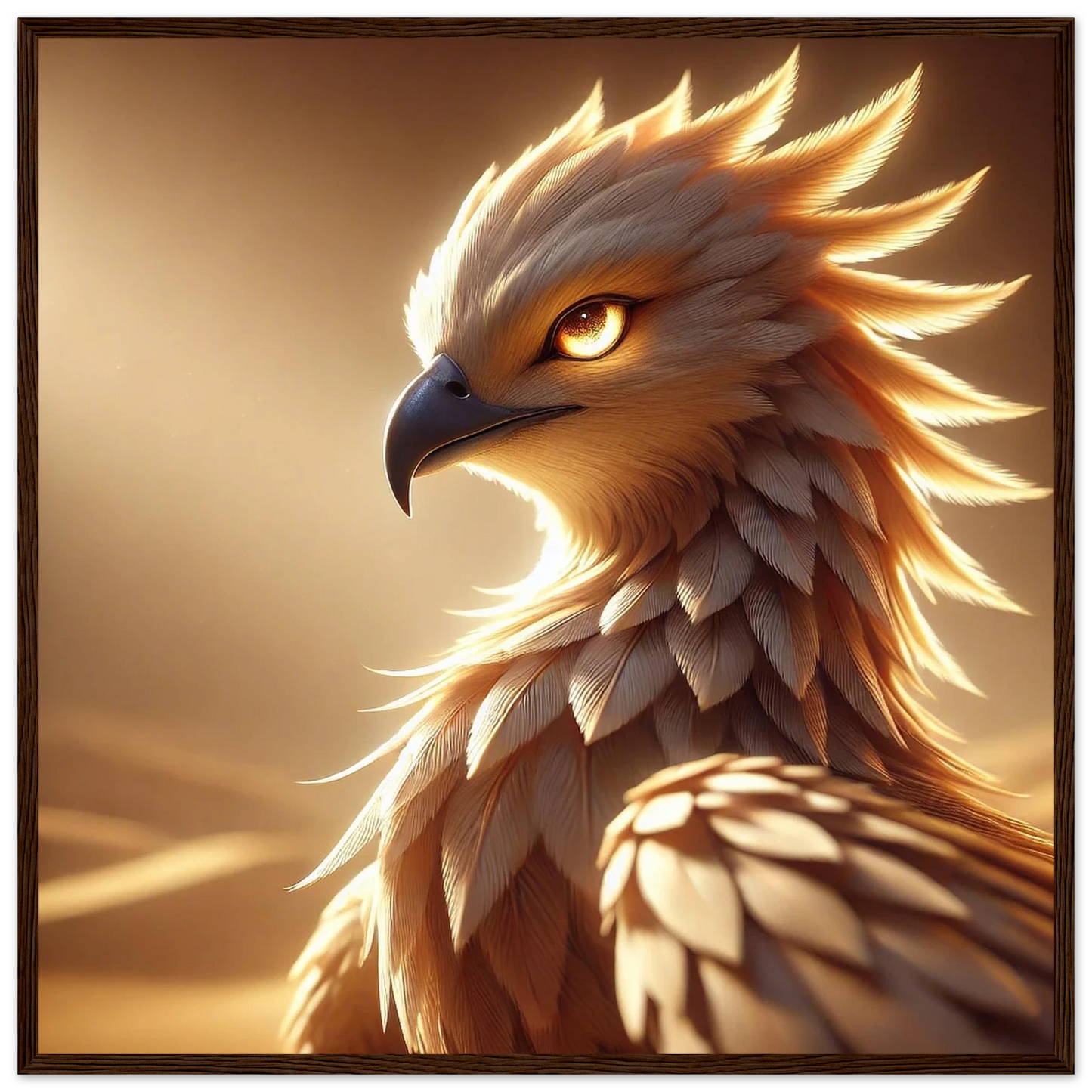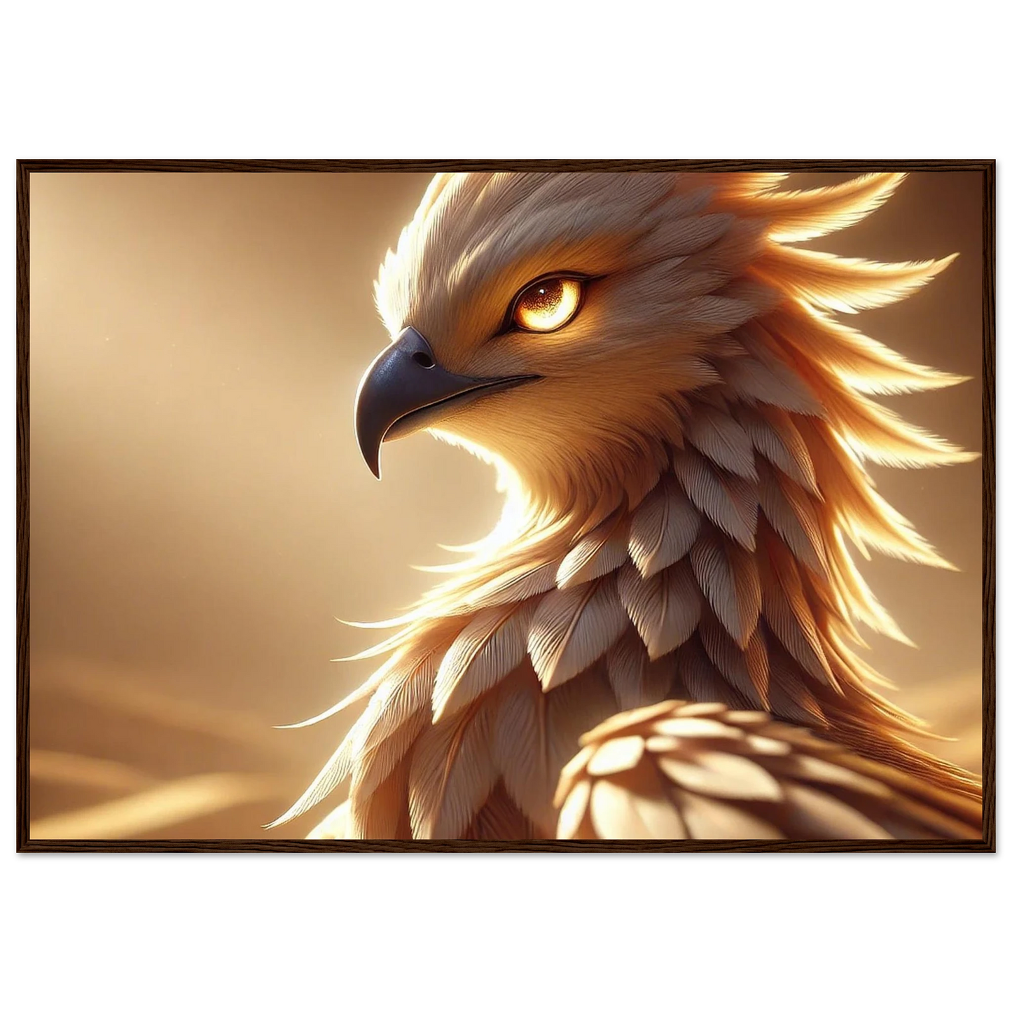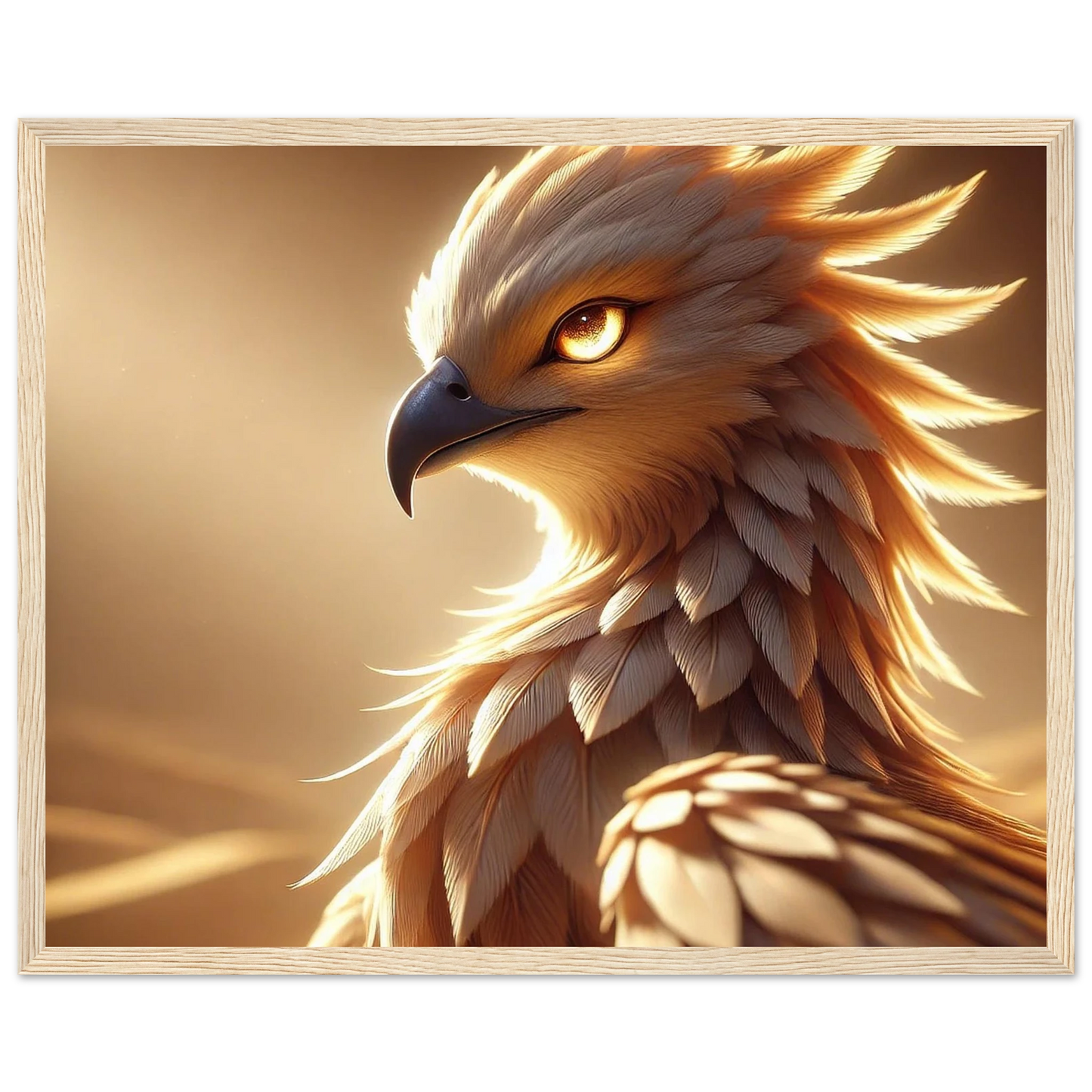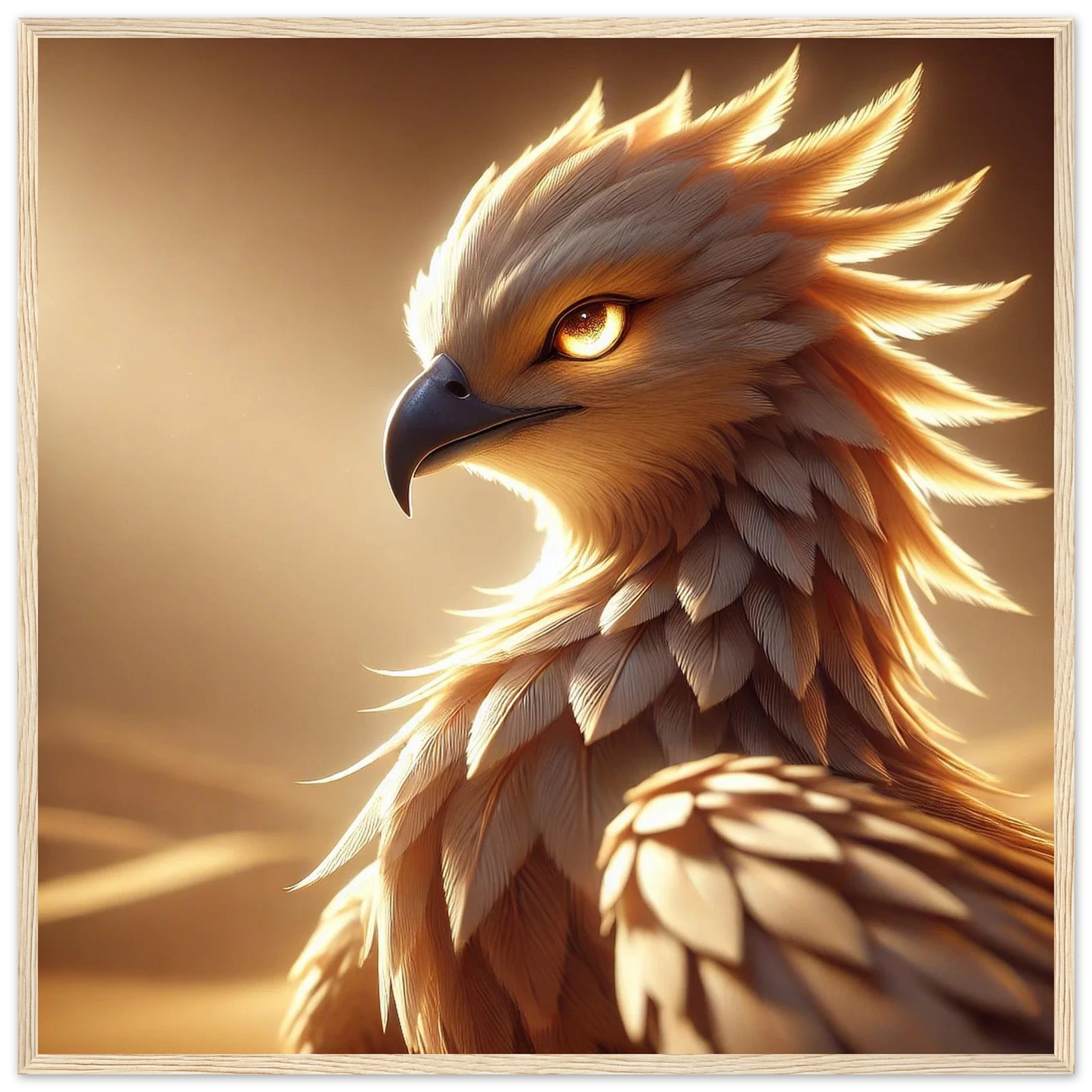 Ein strahlender Sonnenvogel, eingefangen als hochwertiger, holzgerahmter Kunstdruck – bereit, dein Zuhause mit Licht, Mut und Wärme zu erfüllen.