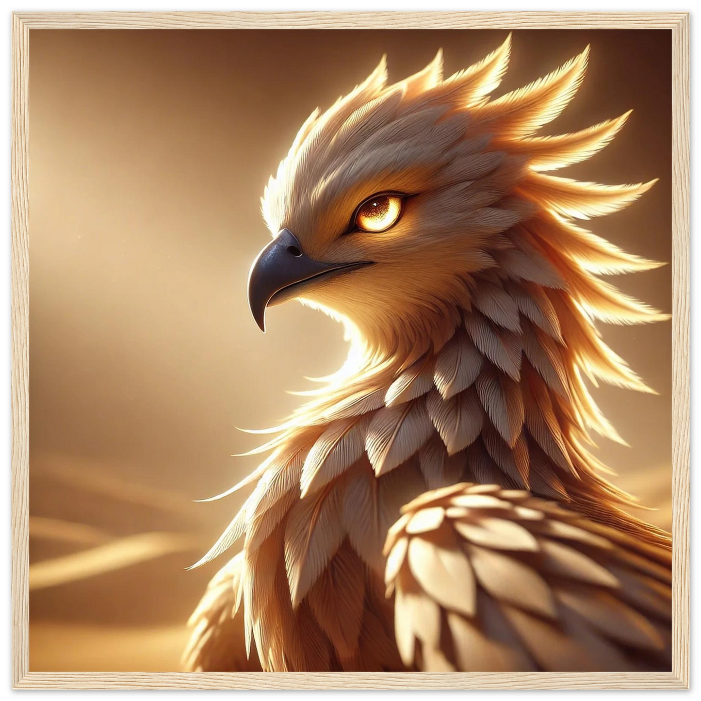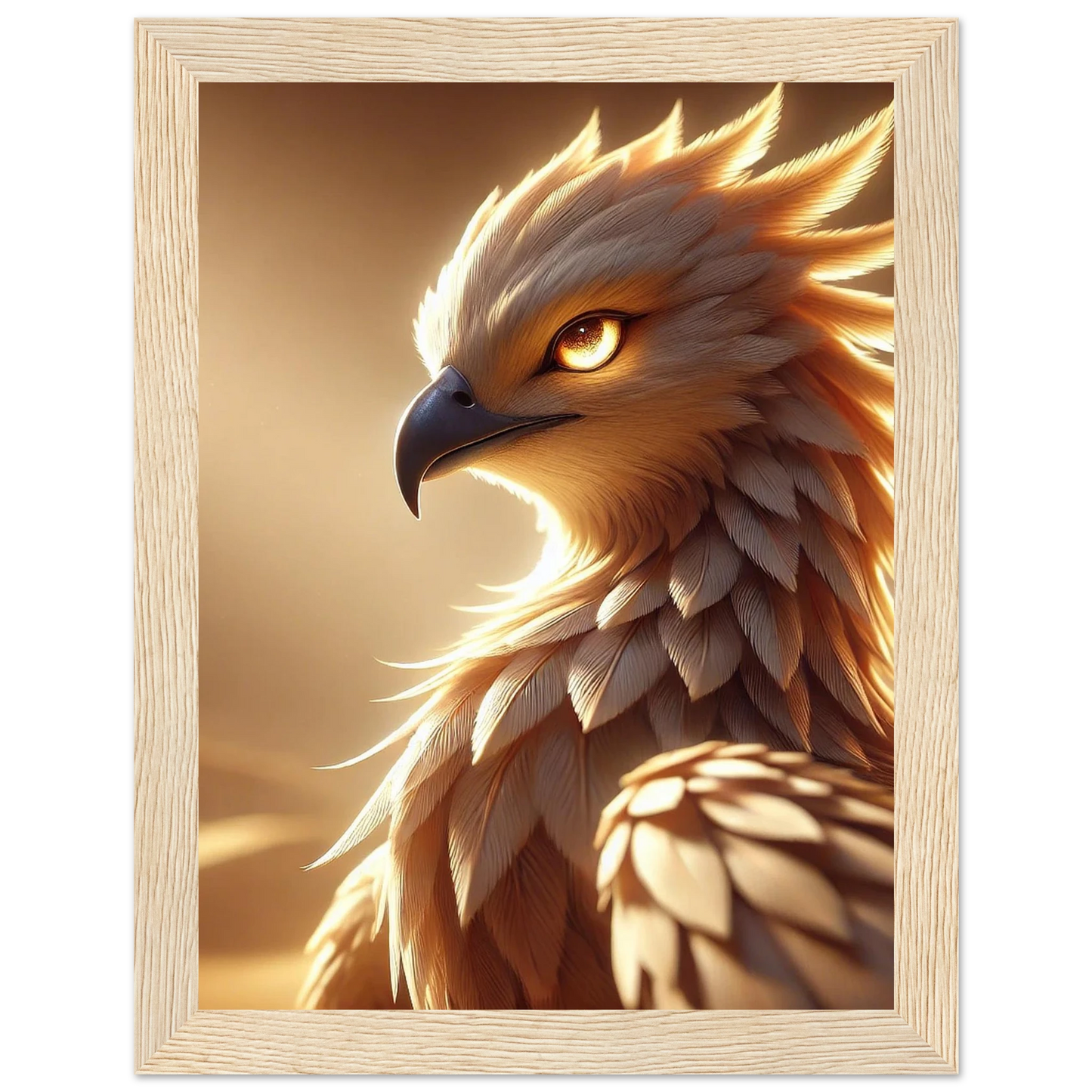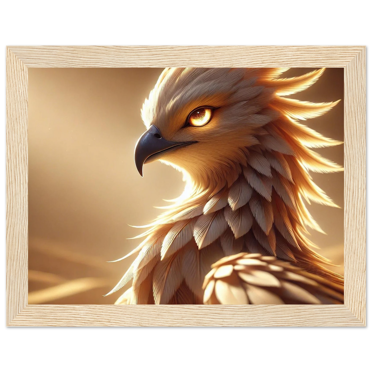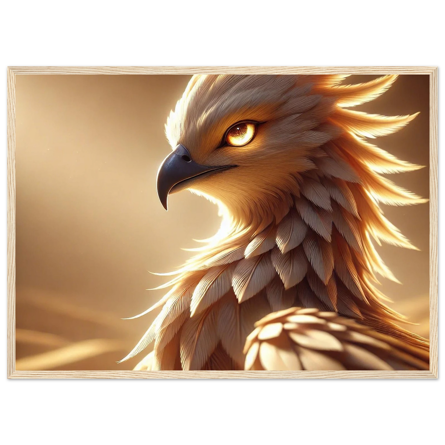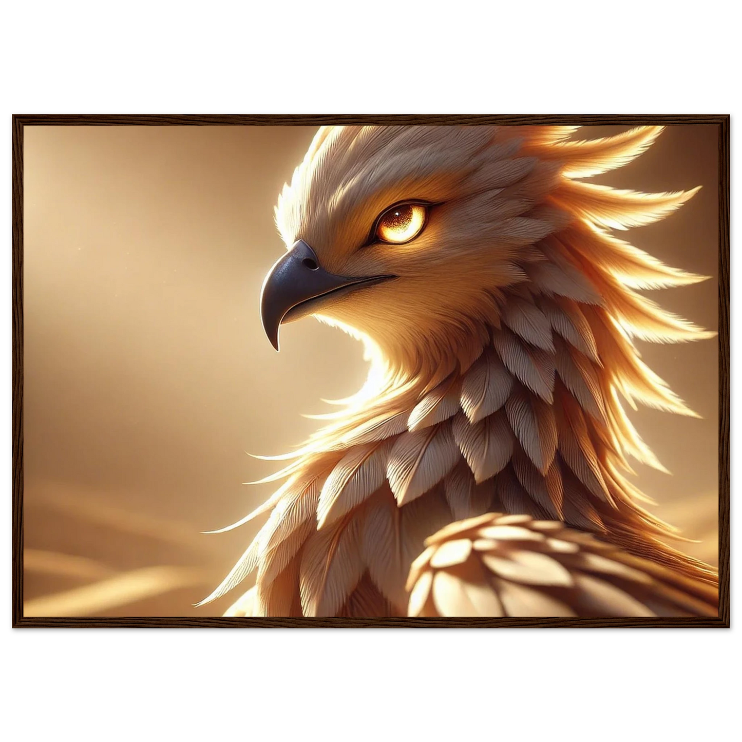 Ein strahlender Sonnenvogel, eingefangen als hochwertiger, holzgerahmter Kunstdruck – bereit, dein Zuhause mit Licht, Mut und Wärme zu erfüllen.