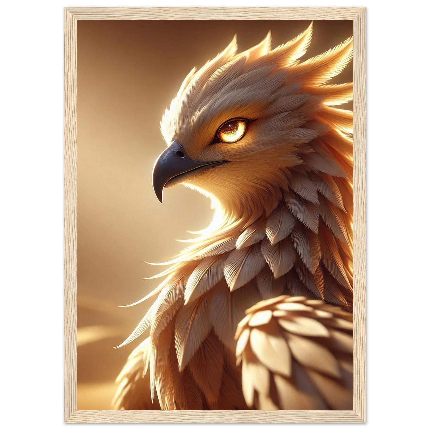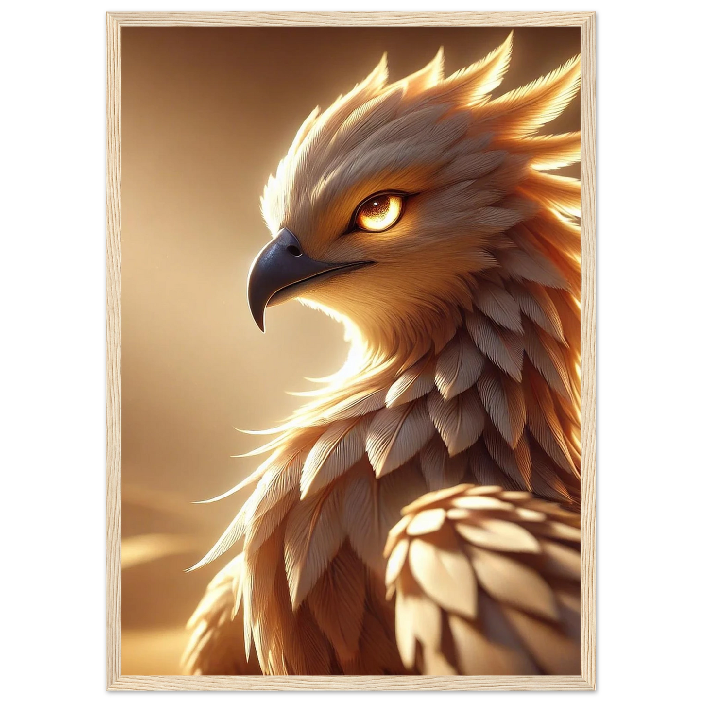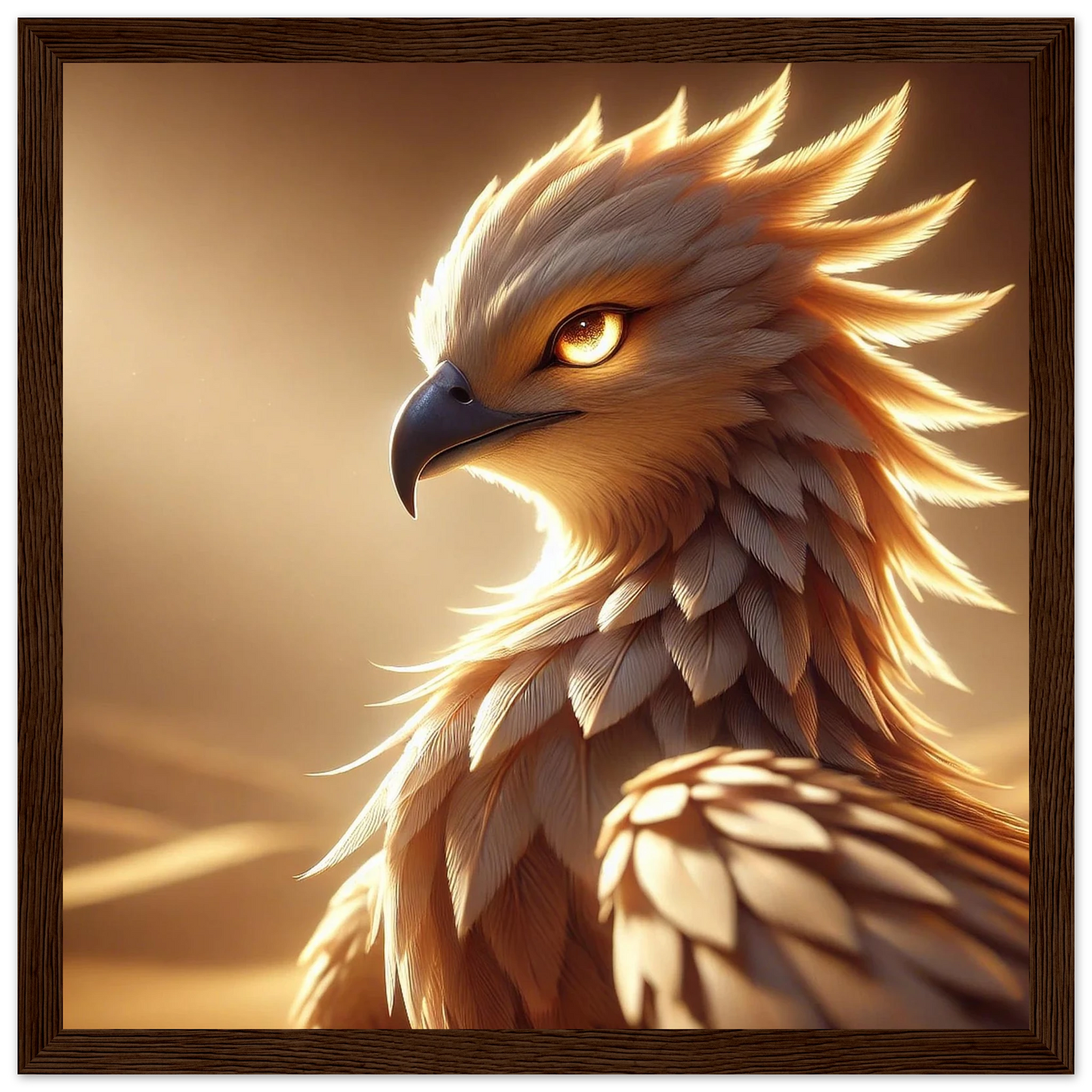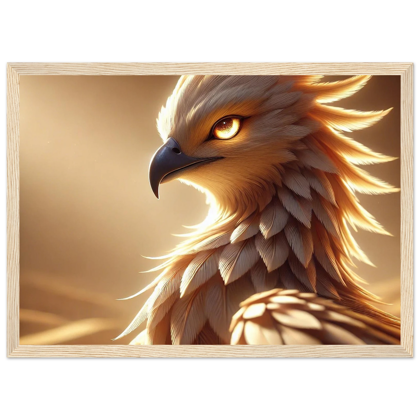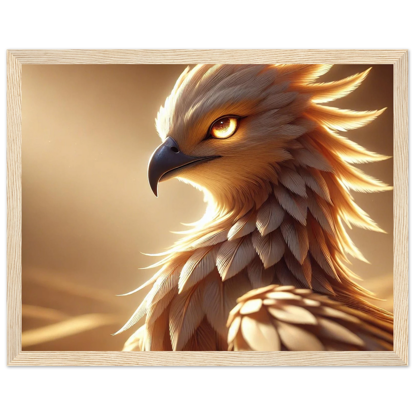 Ein strahlender Sonnenvogel, eingefangen als hochwertiger, holzgerahmter Kunstdruck – bereit, dein Zuhause mit Licht, Mut und Wärme zu erfüllen.