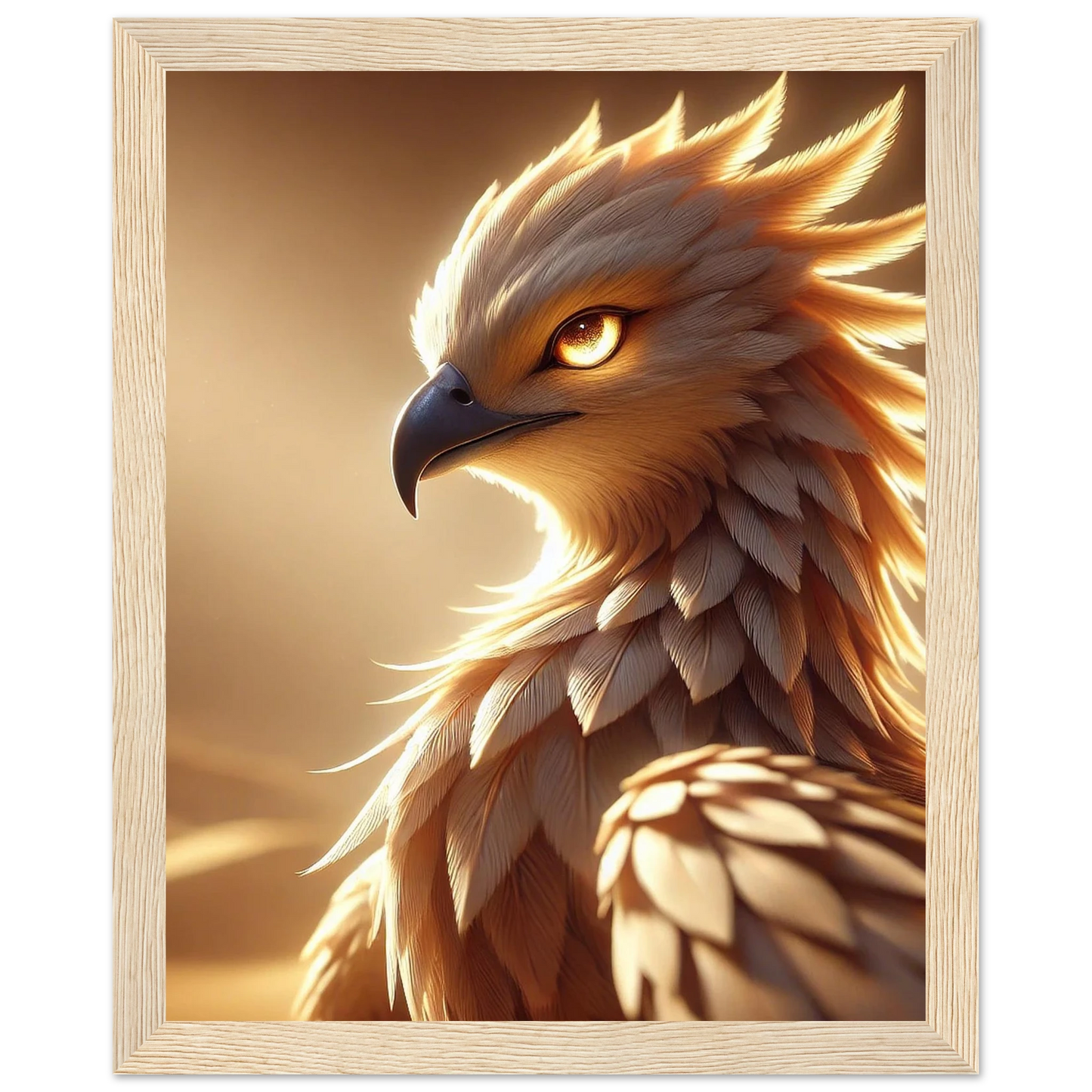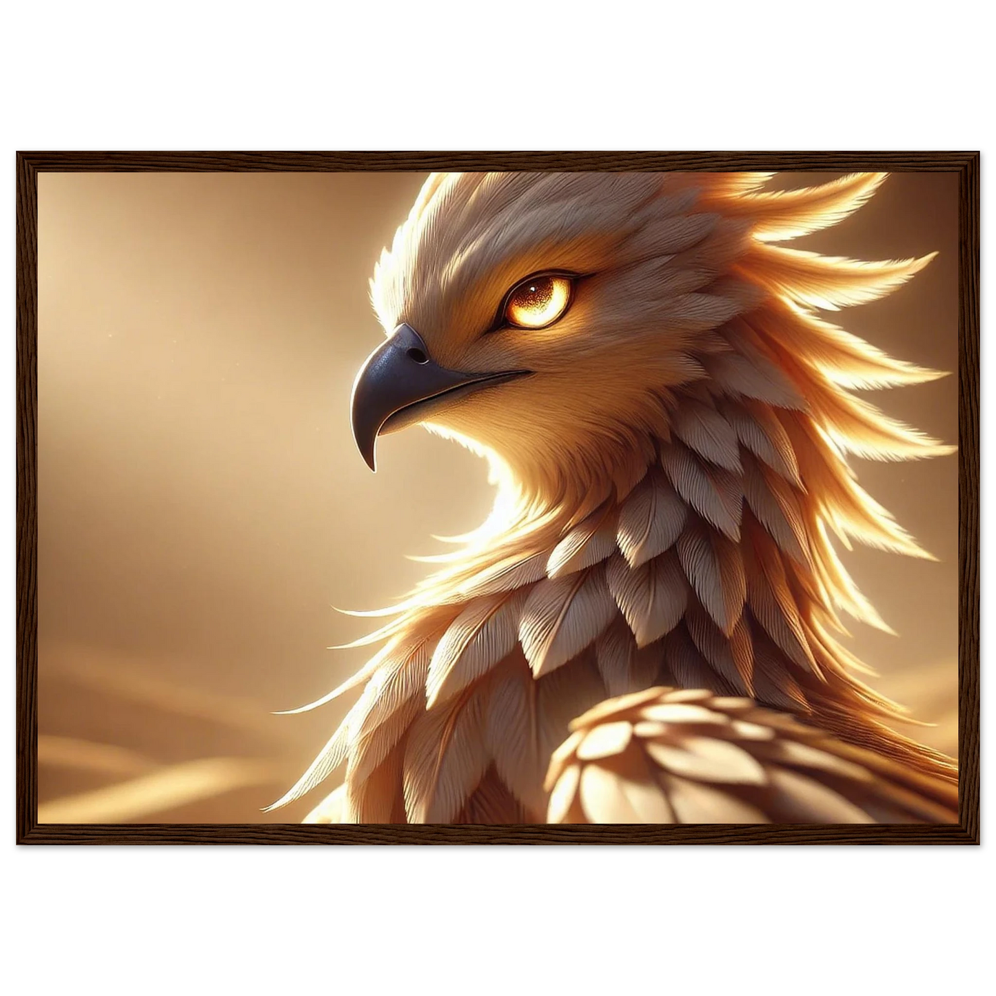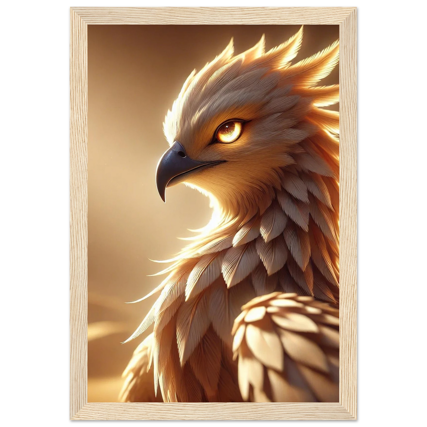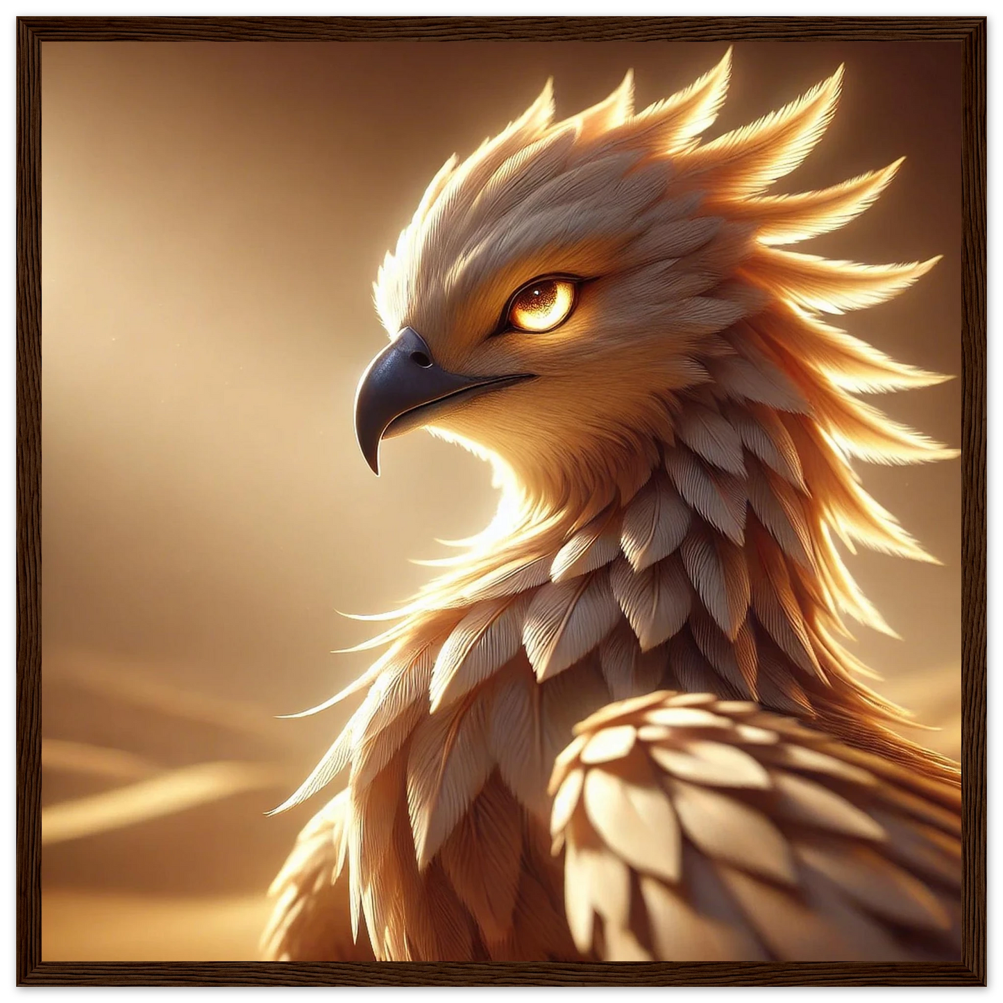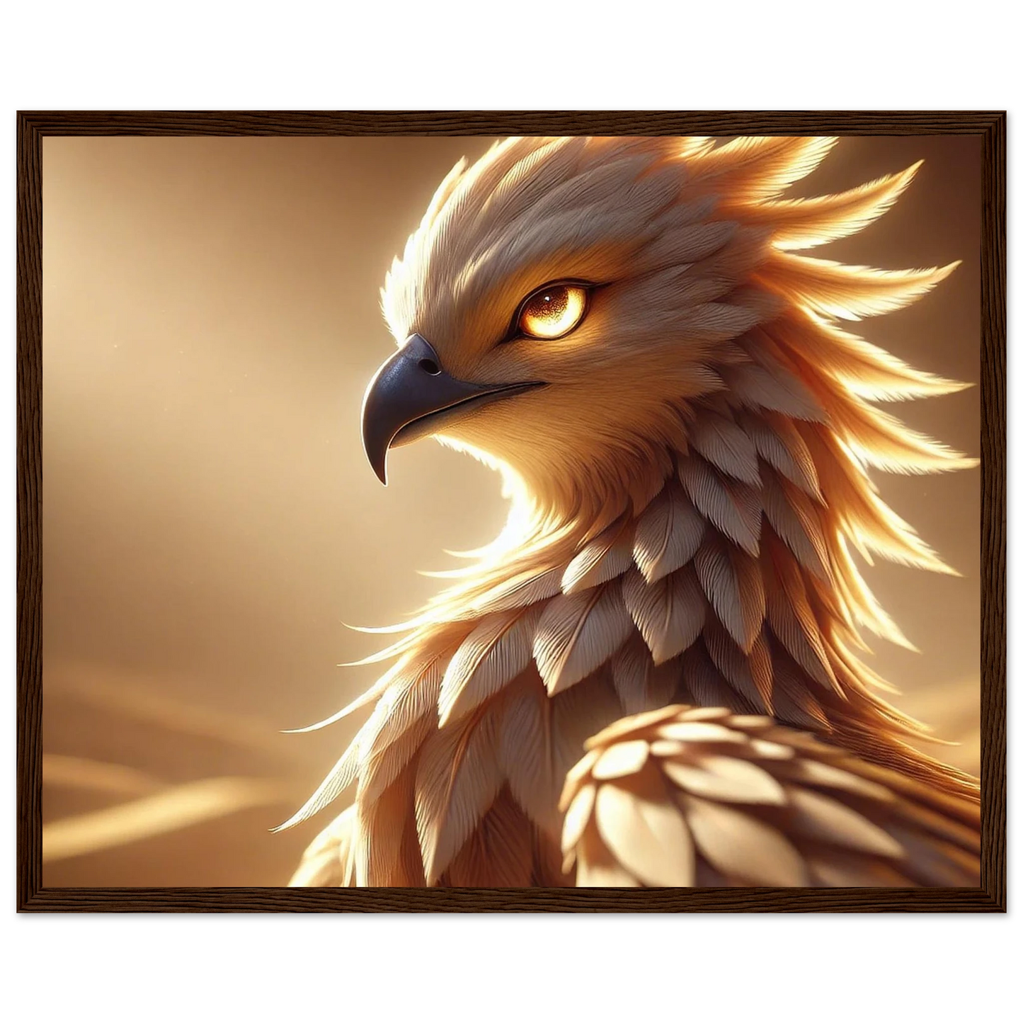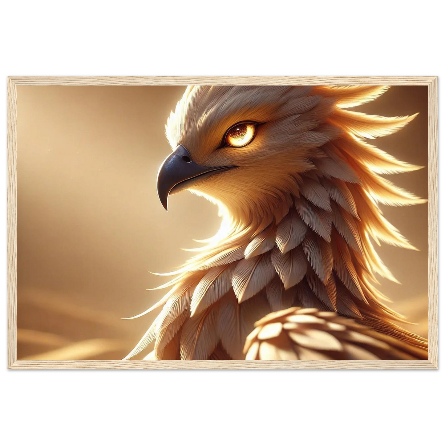 Ein strahlender Sonnenvogel, eingefangen als hochwertiger, holzgerahmter Kunstdruck – bereit, dein Zuhause mit Licht, Mut und Wärme zu erfüllen.