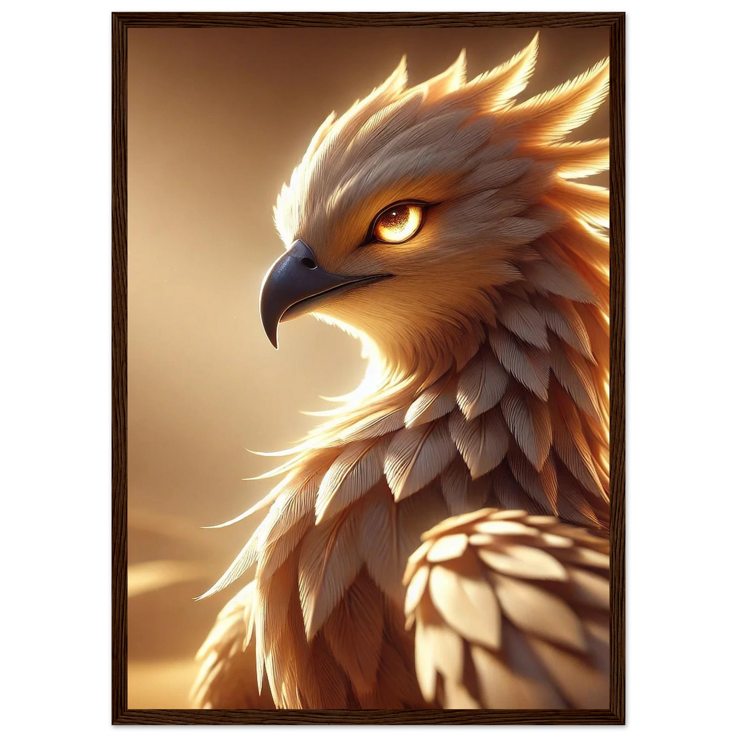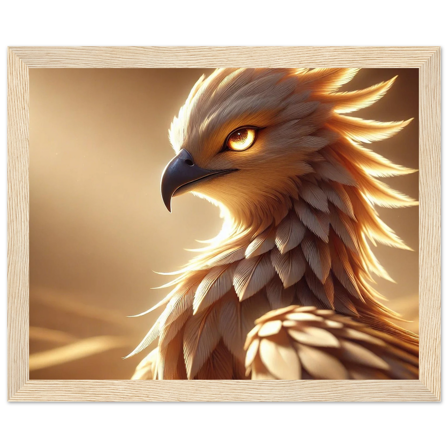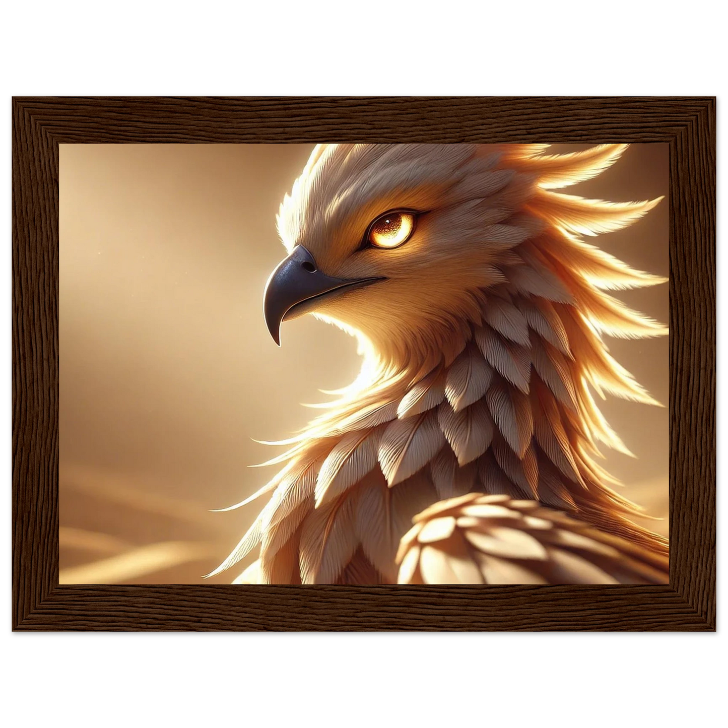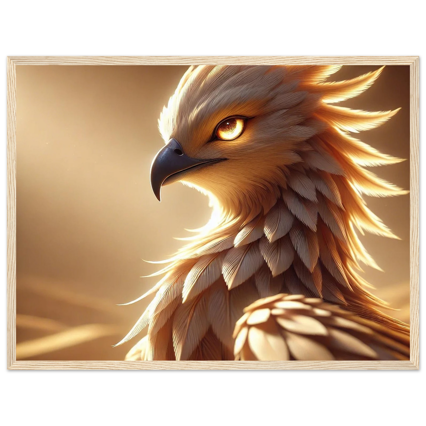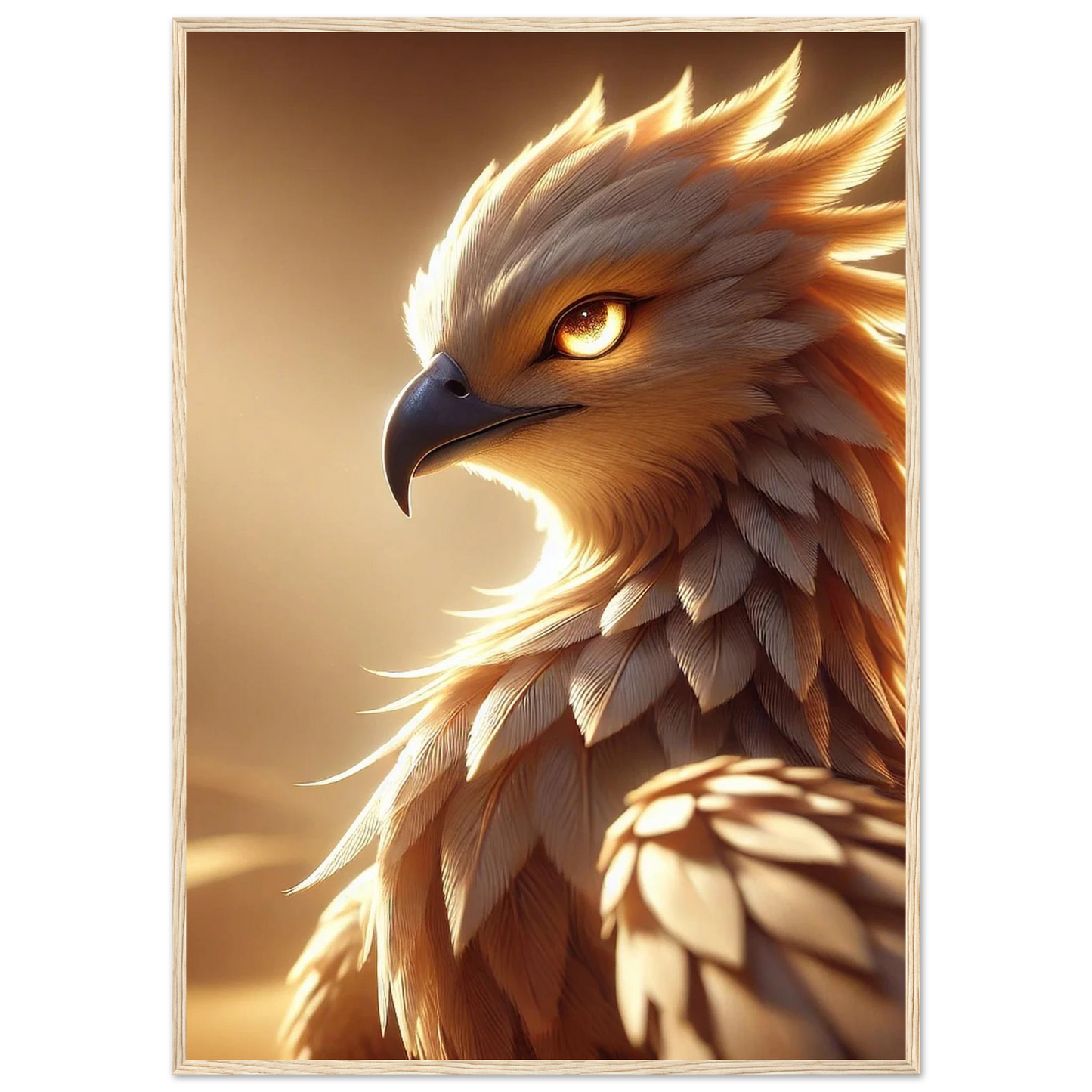 Ein strahlender Sonnenvogel, eingefangen als hochwertiger, holzgerahmter Kunstdruck – bereit, dein Zuhause mit Licht, Mut und Wärme zu erfüllen.