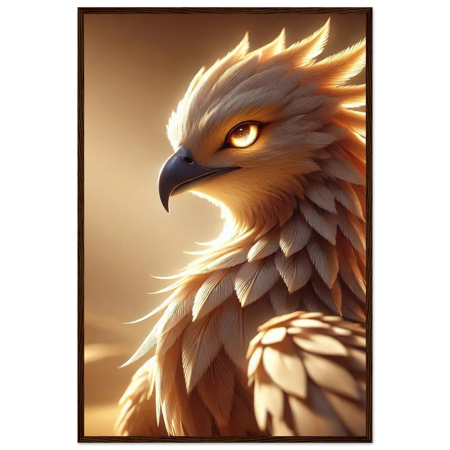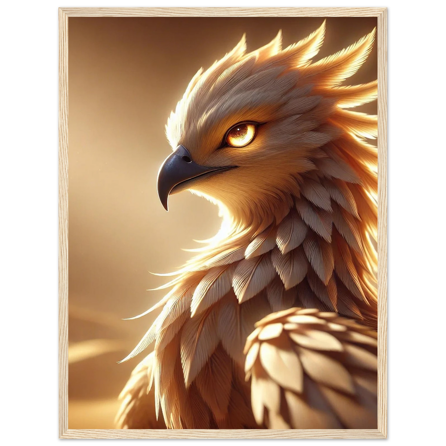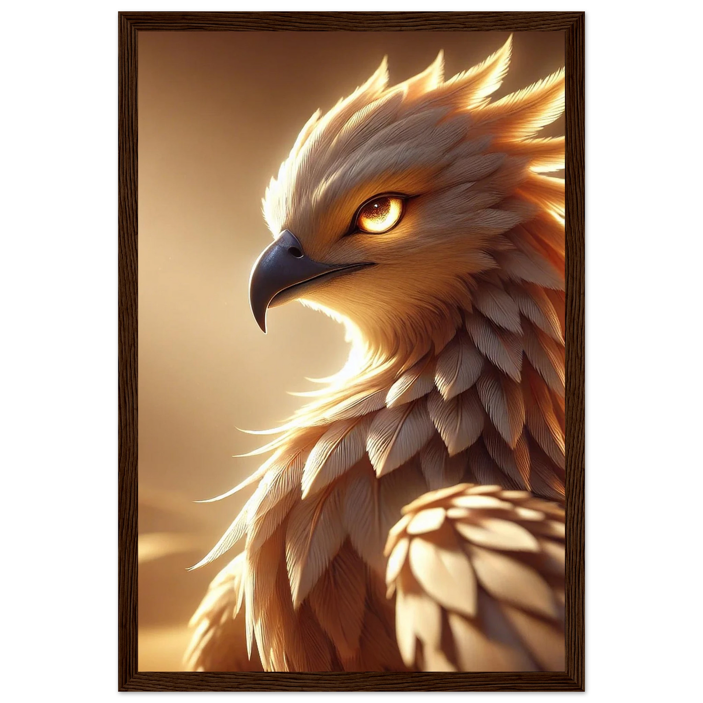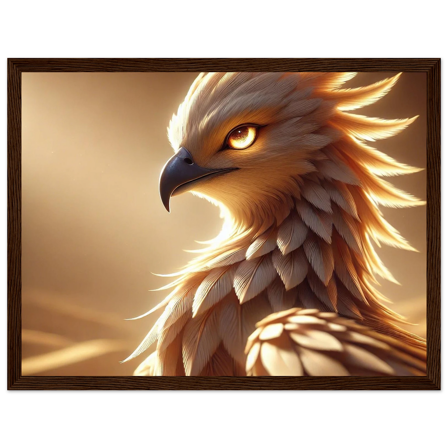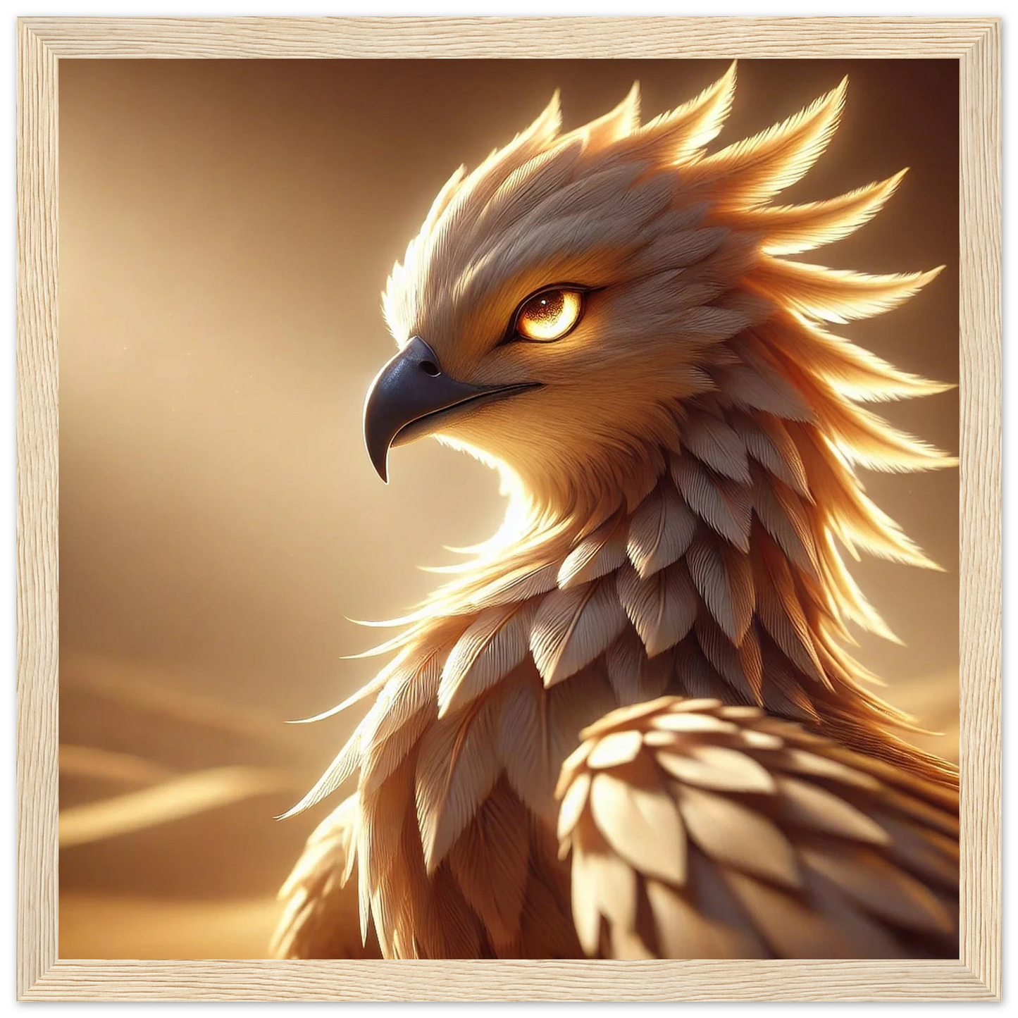 Ein strahlender Sonnenvogel, eingefangen als hochwertiger, holzgerahmter Kunstdruck – bereit, dein Zuhause mit Licht, Mut und Wärme zu erfüllen.
