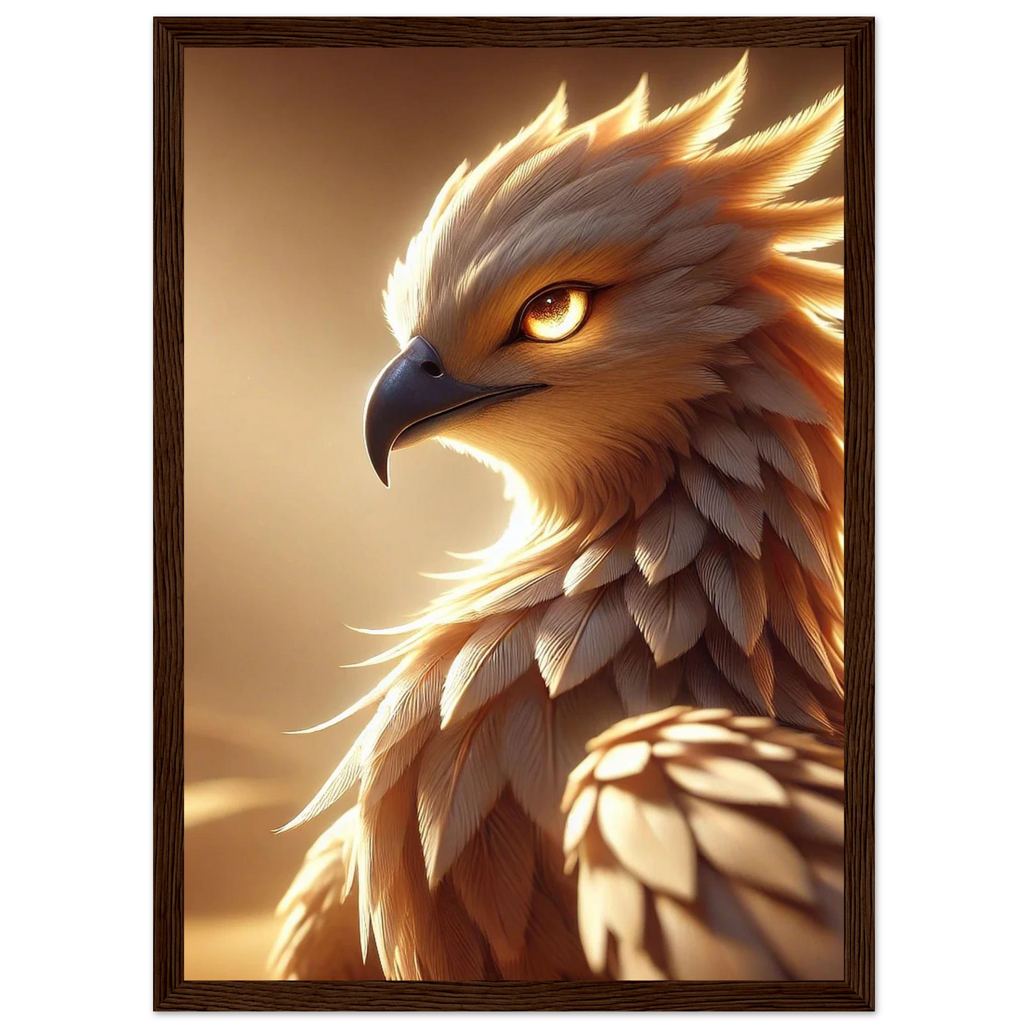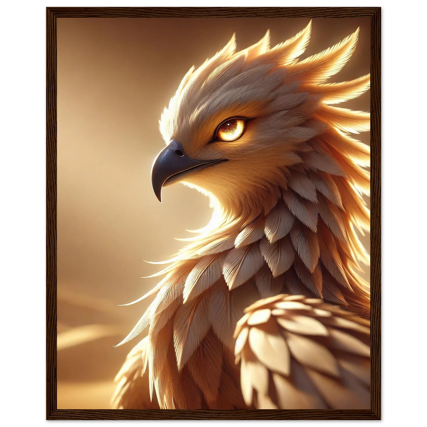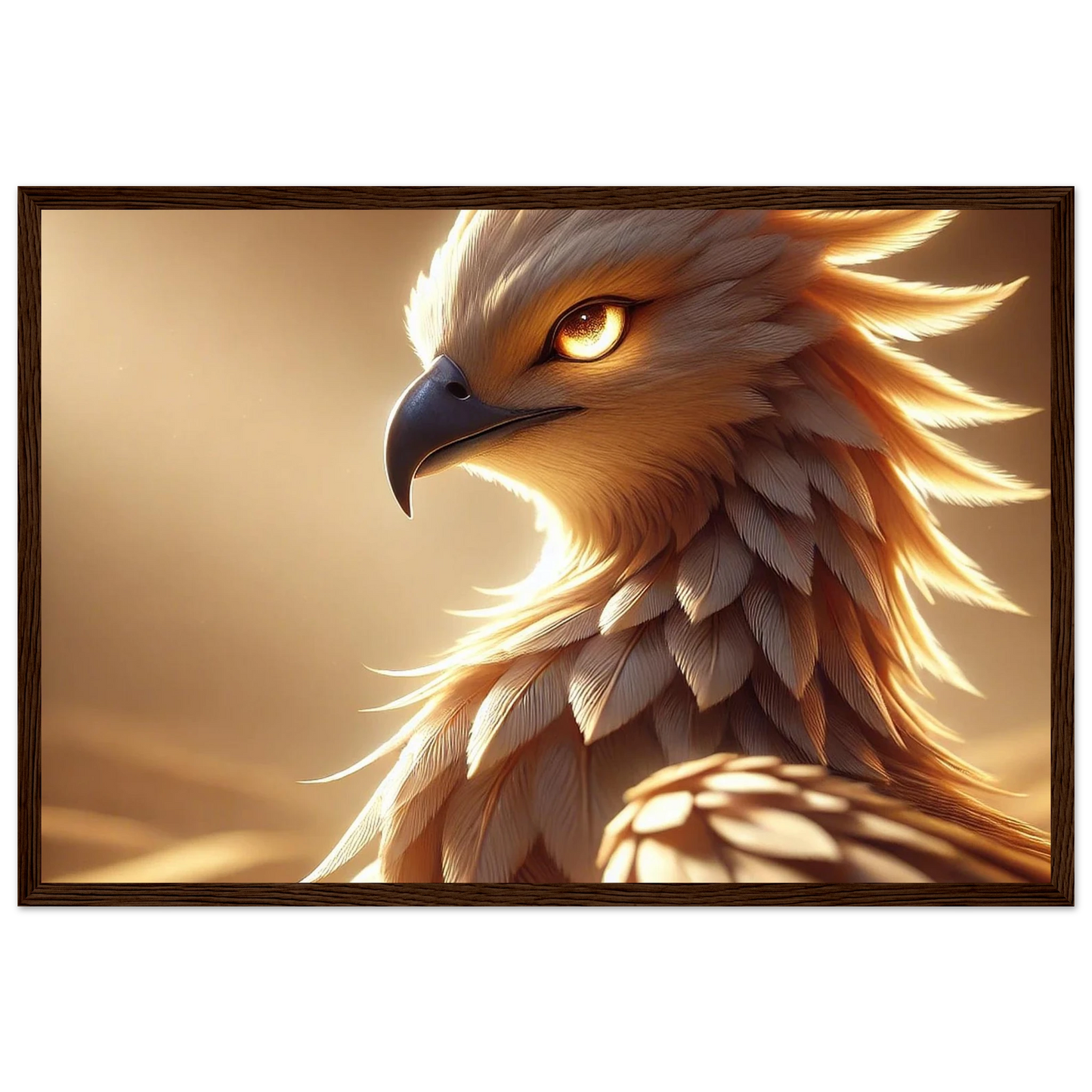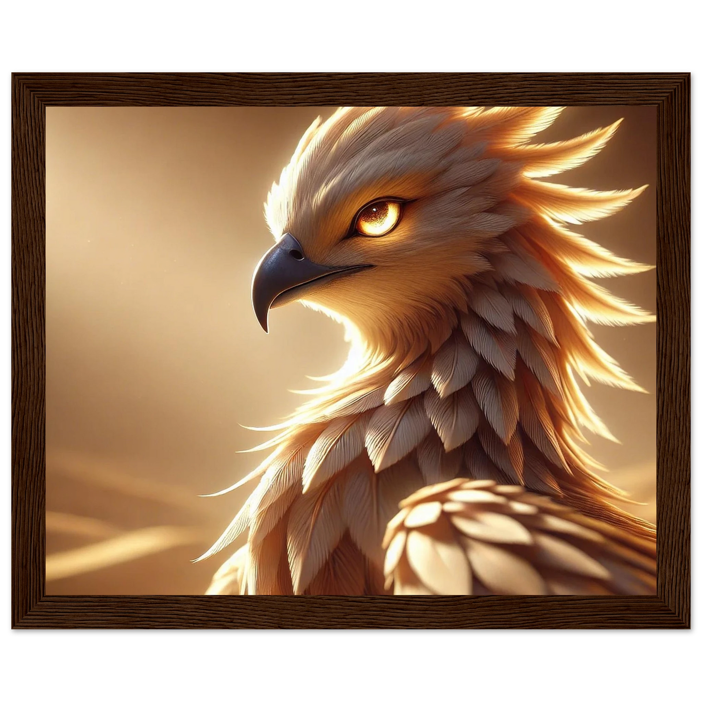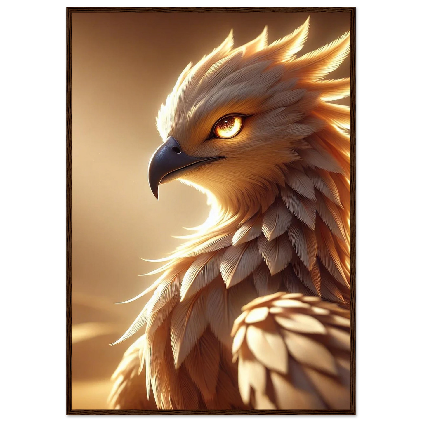 Ein strahlender Sonnenvogel, eingefangen als hochwertiger, holzgerahmter Kunstdruck – bereit, dein Zuhause mit Licht, Mut und Wärme zu erfüllen.